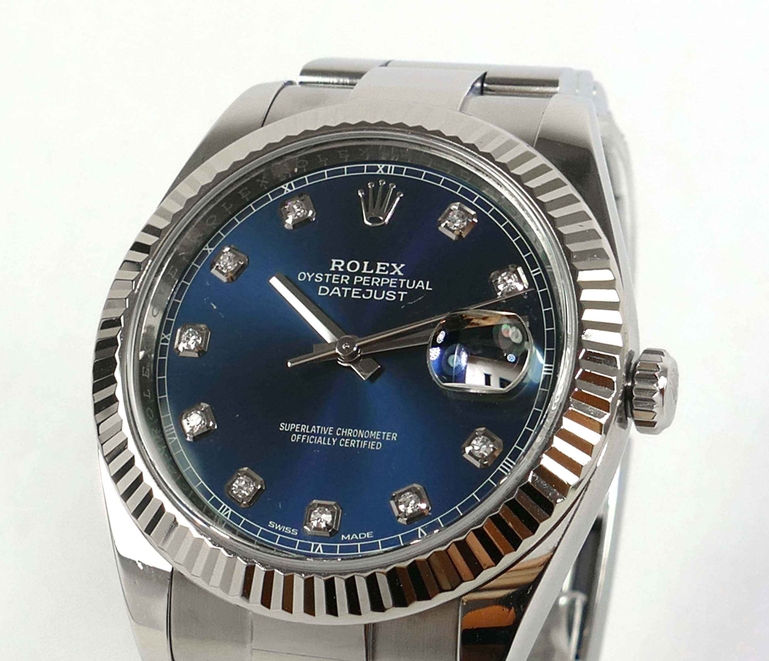Read Morethis watch is in great condition and comes with its complete set of box and papers, the warranty card is dated september 12th 2017. The dial is a factory blue diamond dial as indicated on the card. This watch comes with 11 links total. The crystal has some small nicks around 2pm and 9pm as shown in the photos.