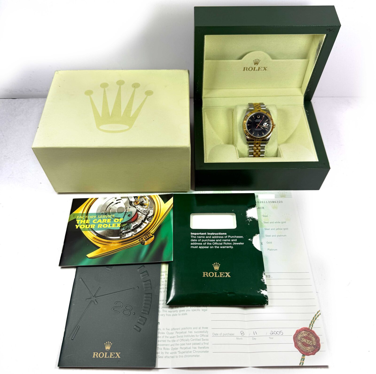 this rolex is in good condition showing signs of wear consistent with preowned watches. This comes with its box, booklets, and warranty paper dated august 11th, 2005 as shown in the pictures attached. This watch is in stock and available to ship immediately!