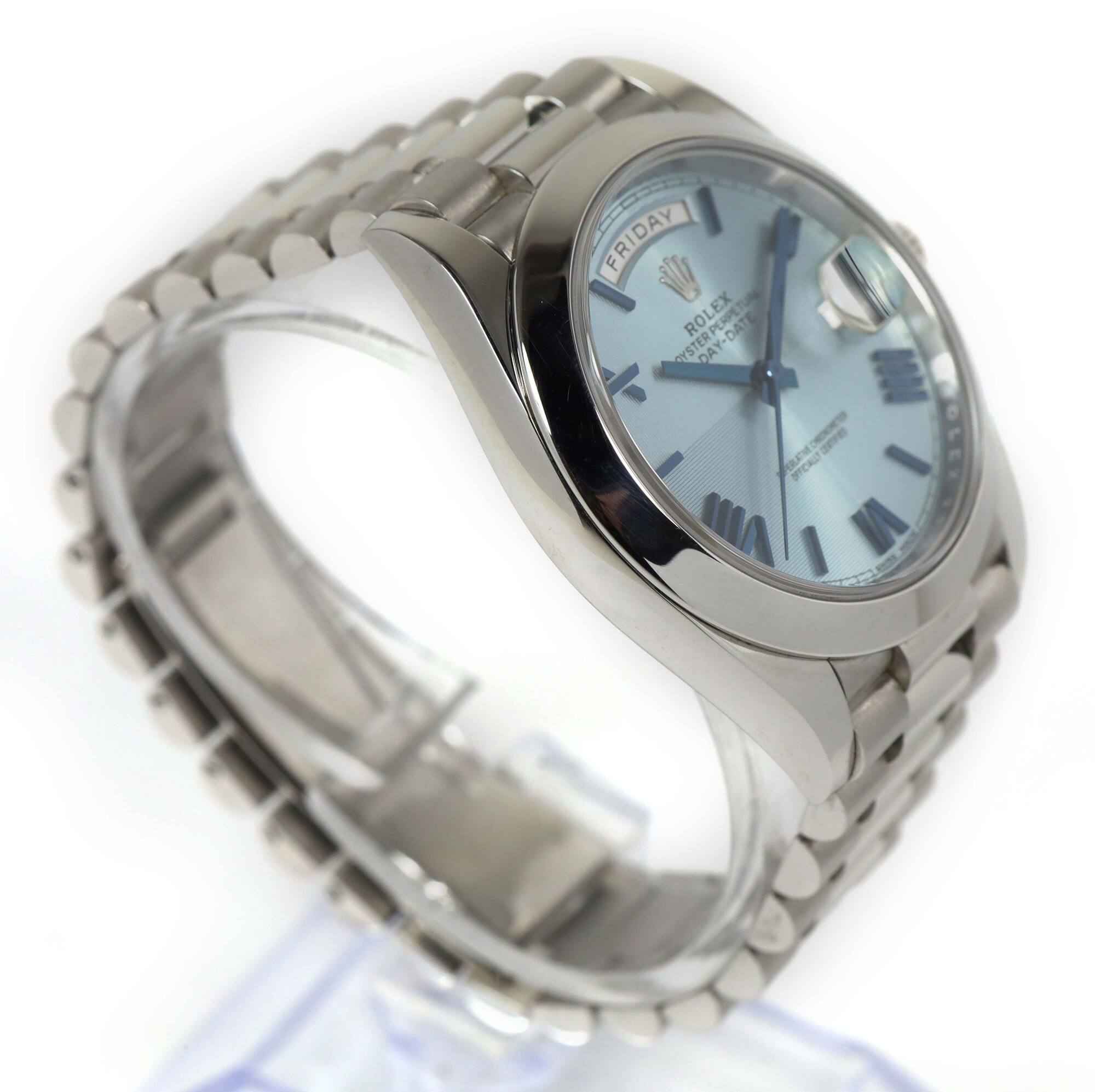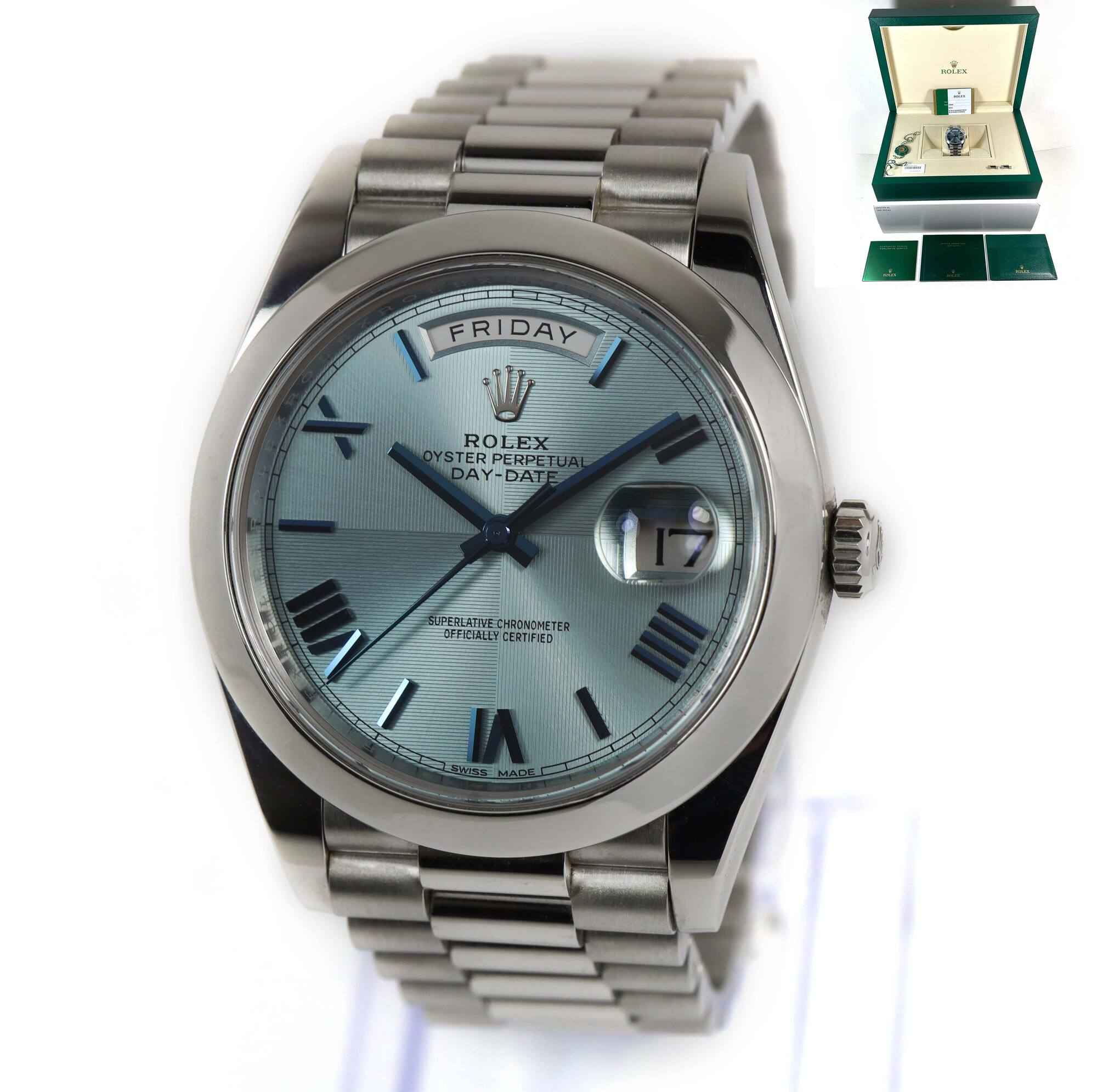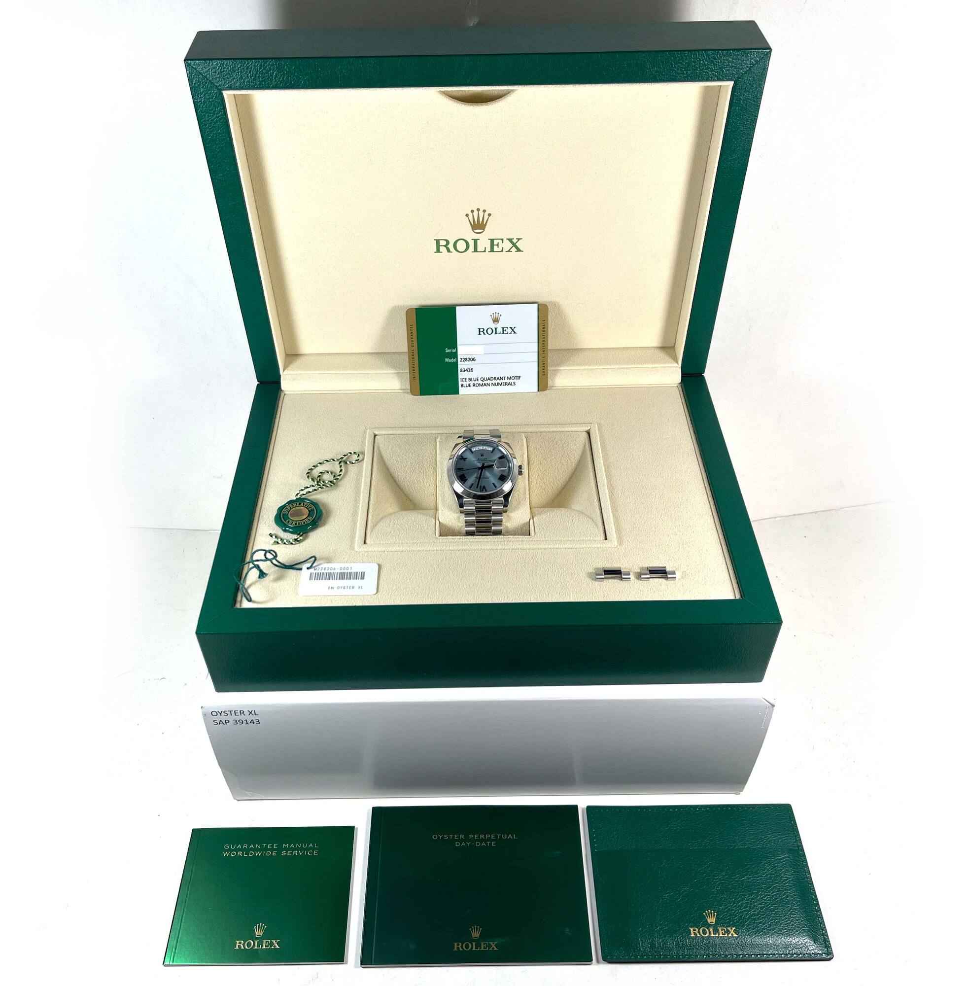 this rolex is in excellent condition and comes with its box, booklets, both hang tags, spare links, and warranty card dated august 17th, 2018. This watch is in stock and available to ship immediately!