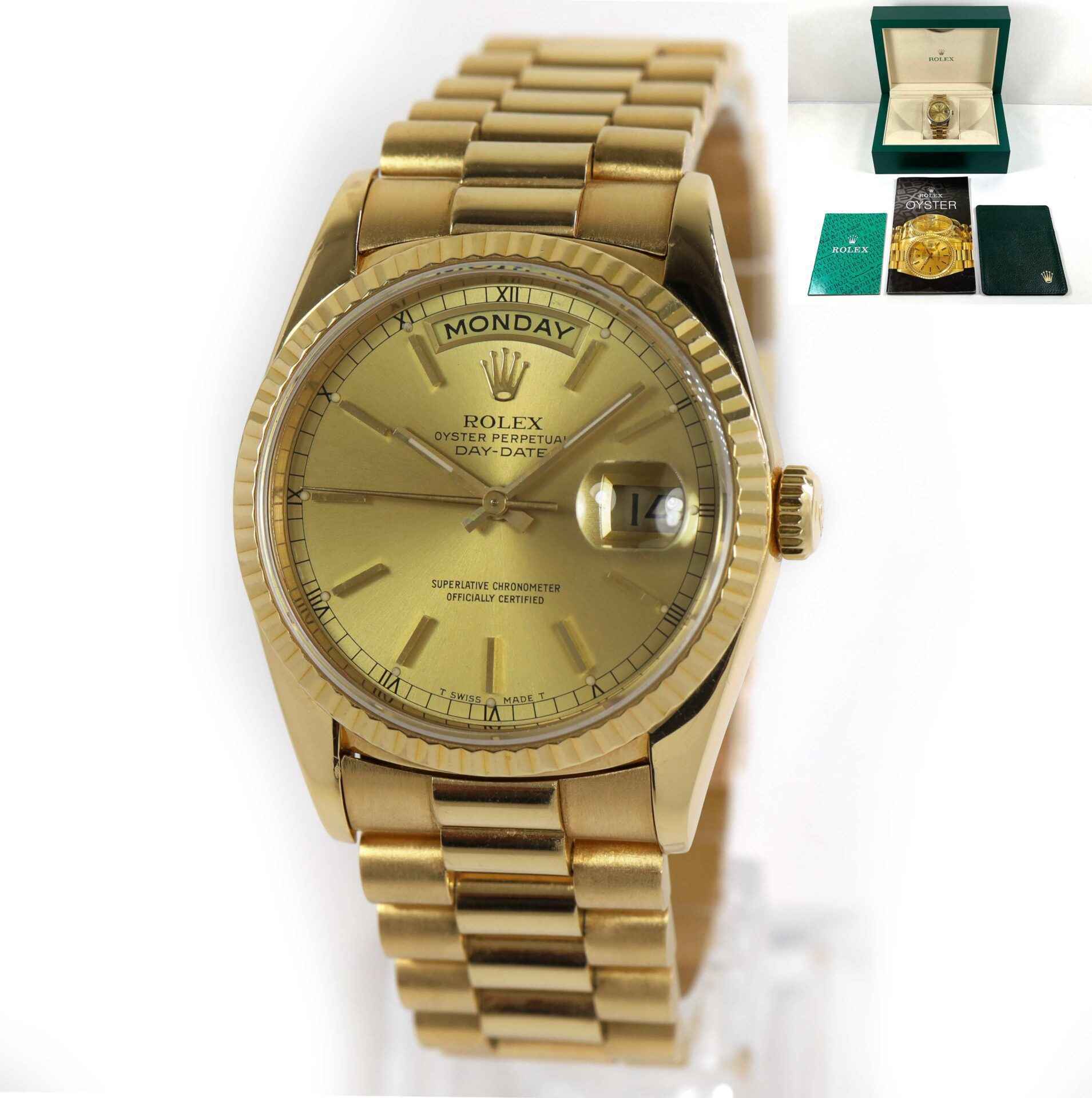 This Rolex Day-Date President 36mm is in excellent condition and comes with its box and papers as shown in the photos attached. This watch has a serial number beginning with E which dates the year of production to approx...