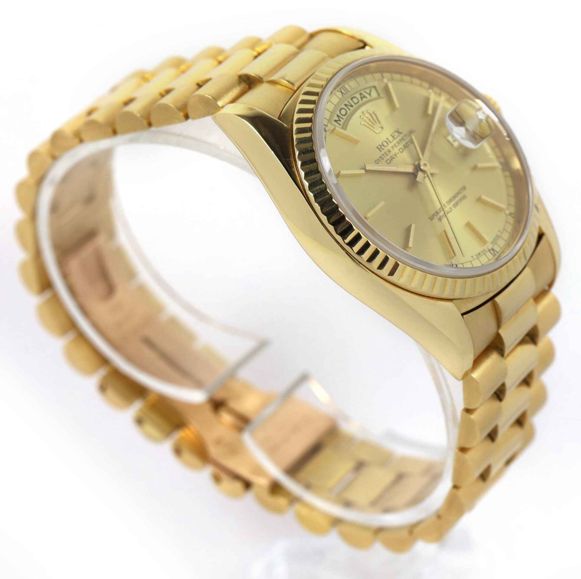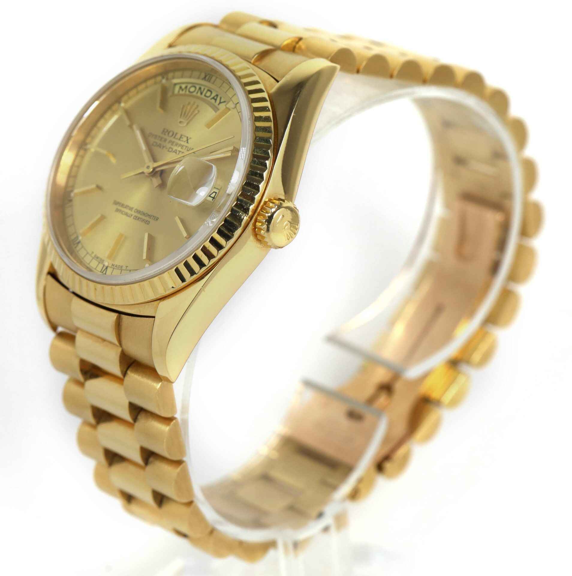 Read Morethis rolex day-date president 36mm is in excellent condition and comes with its box and papers as shown in the photos attached. This watch has a serial number beginning with e which dates the year of production to approximately 1990. The bracelet on this president is tight for its age and still has plenty of life left. This watch is in stock and available to ship immediately!
