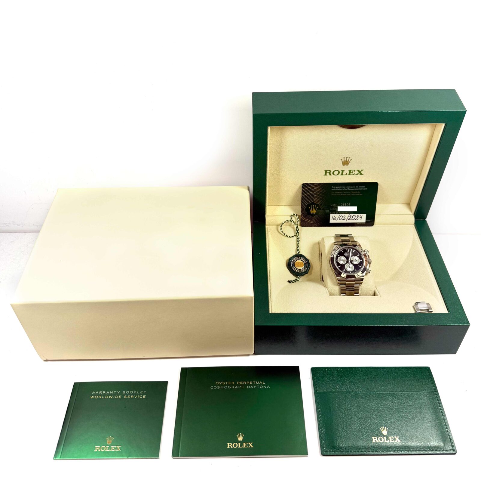 THIS ROLEX IS IN EXCELLENT OVERALL CONDITION WITH THE GREEN CASEBACK STICKER ATTACHED AND COMES WITH ITS BOX, BOOKLETS, SPARE LINK, GREEN HANG TAG, AND WARRANTY CARD DATED FEBRUARY 16TH, 2024 AS SHOWN IN THE PICTURES ATTACHED.