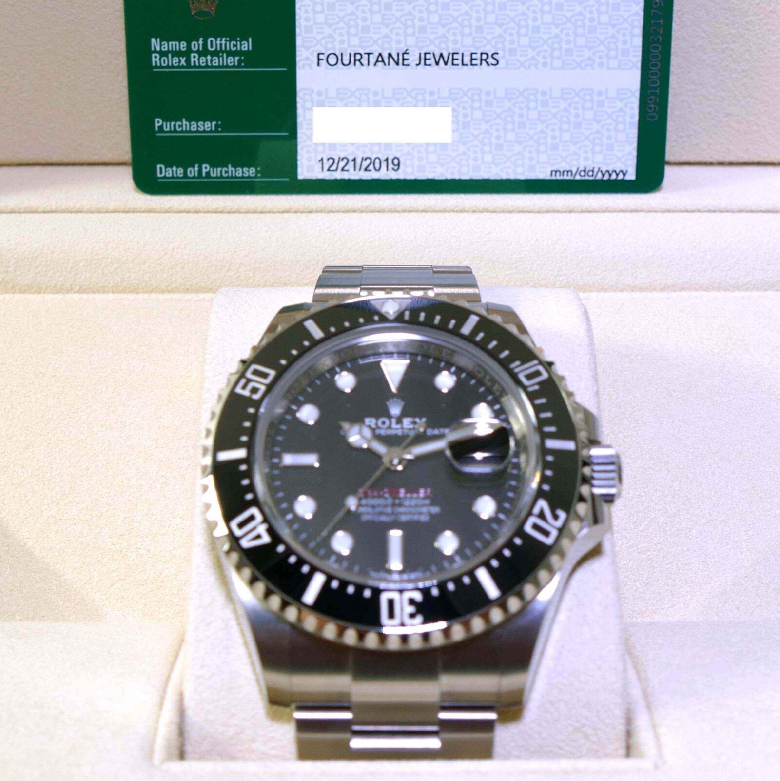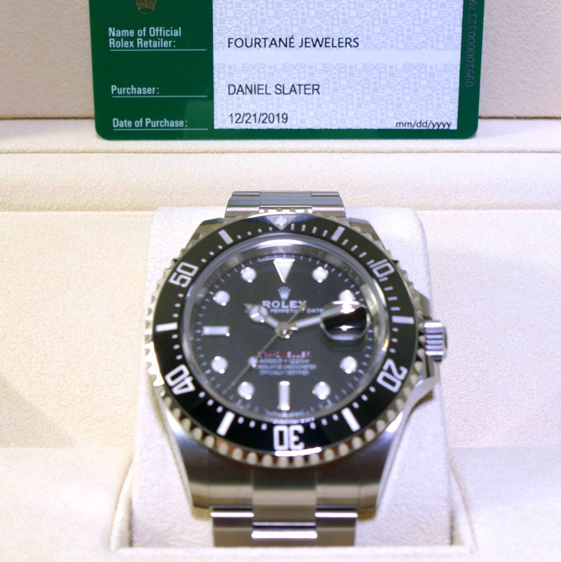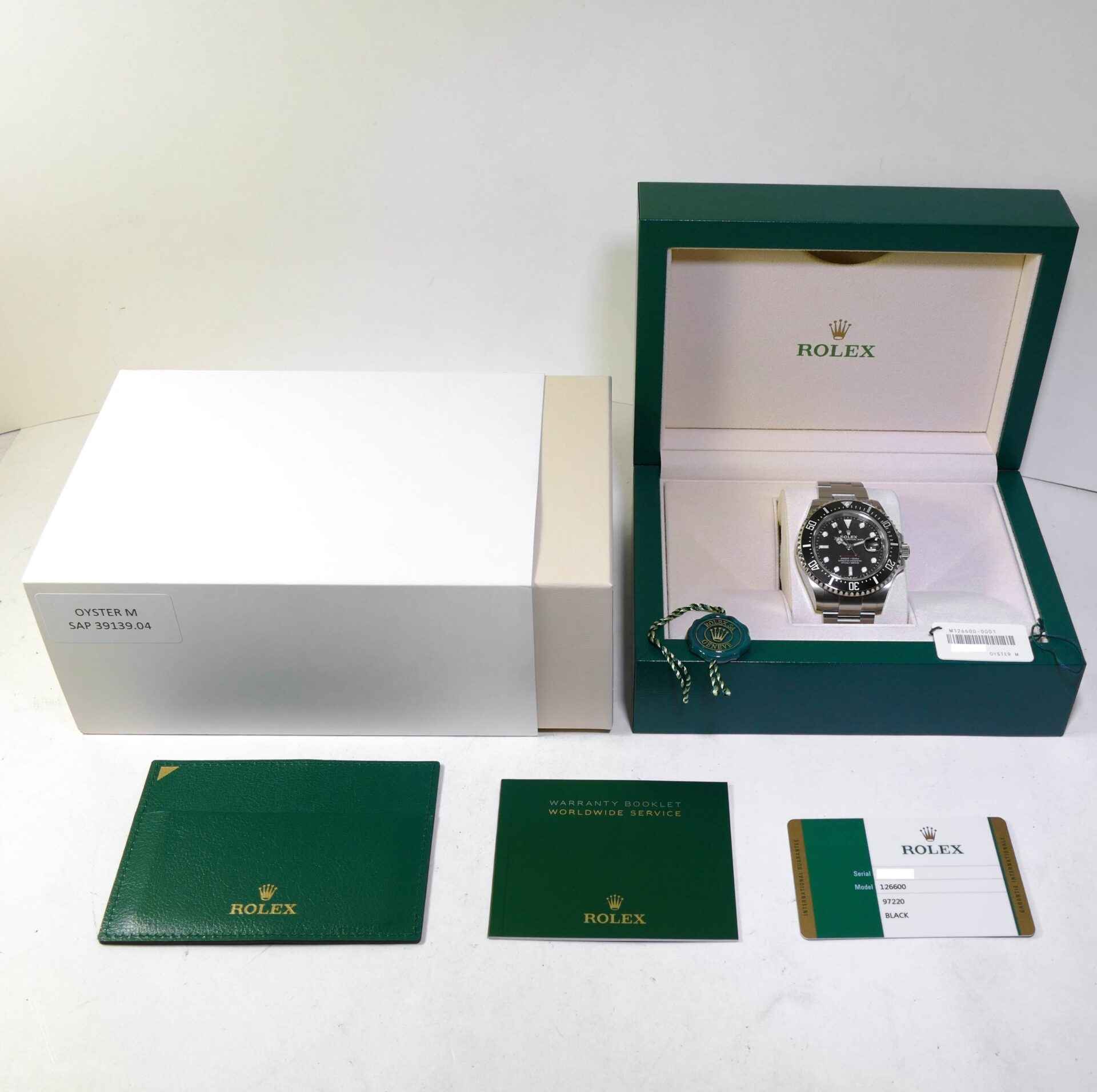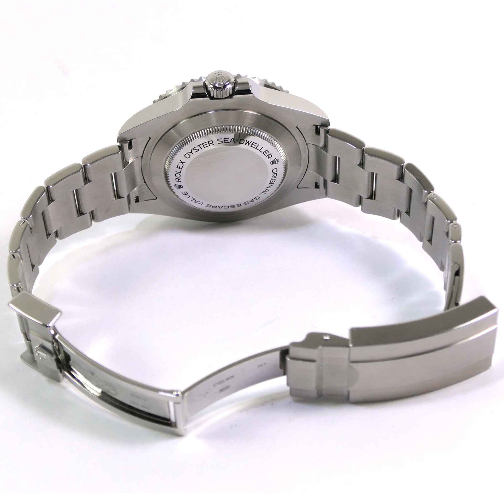 this rolex sea-dweller is in excellent condition and comes with its original box, papers, hang tags, and warranty card dated december 21st, 2019. this is the 50th anniversary edition for the rolex sea-dweller which features a larger case, cyclops lens, and a design like the original.