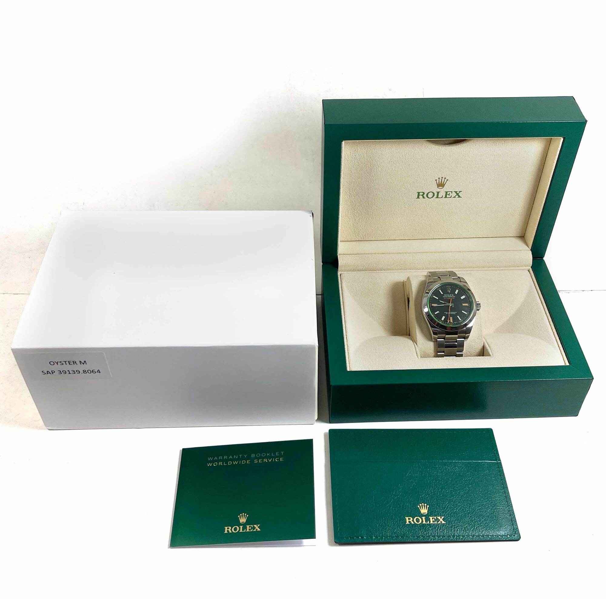 this rolex milgauss is in good overall condition showing signs of wear consistent with preowned watches. This comes with its box and booklets only and is in stock and available to ship immediately!
