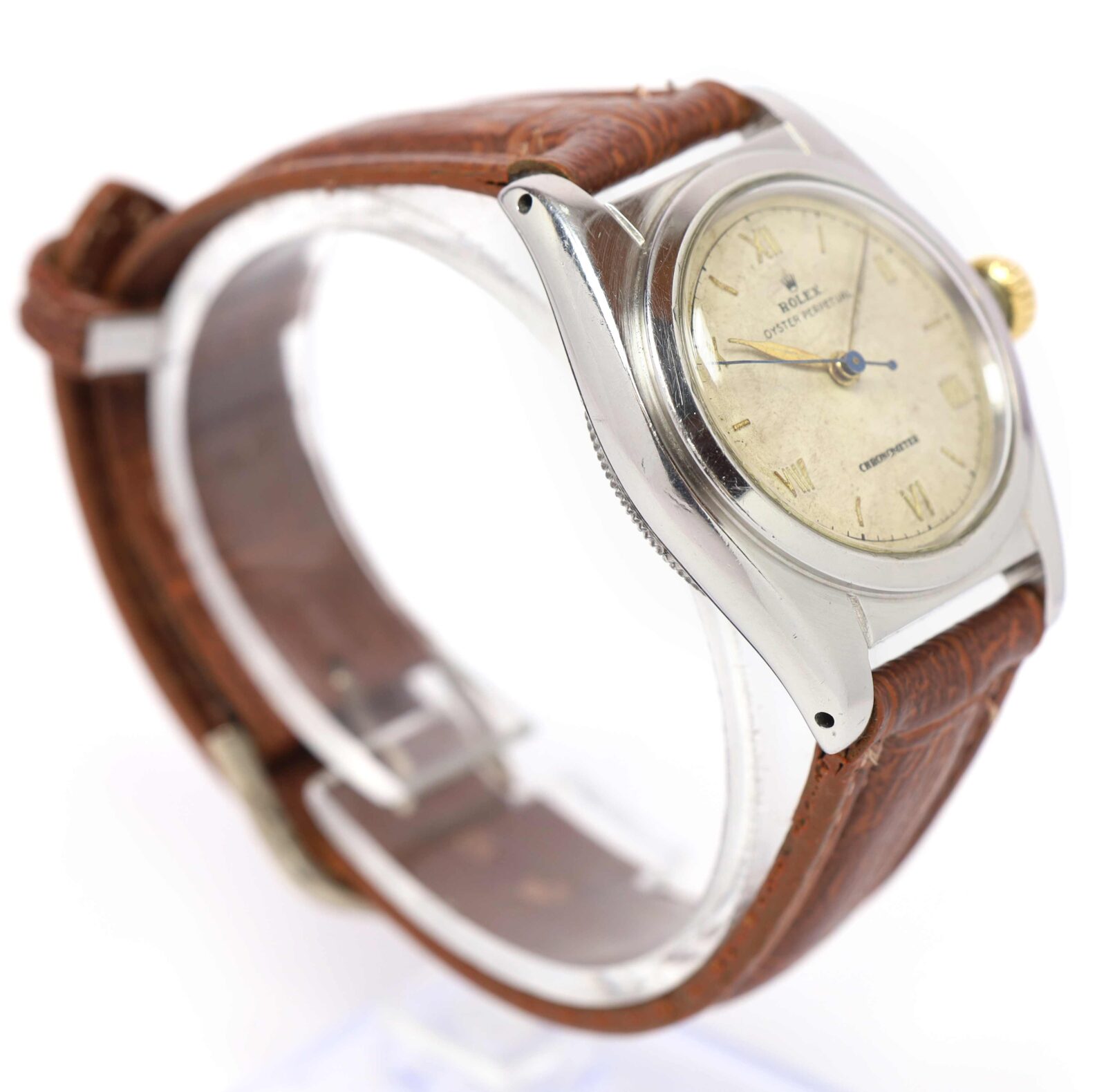 THIS ROLEX IS IN GOOD OVERALL CONDITION FOR THE AGE OF THE WATCH SHOWING SOME SIGNS OF SURFACE WEAR CONSISTENT WITH PREOWNED WATCHES. THIS ROLEX HAS A SERIAL NUMBER BEGINNING WITH 39 WHICH DATES THE YEAR OF PRODUCTION TO BE APPROXIMATELY 1958/1959. THIS COM...