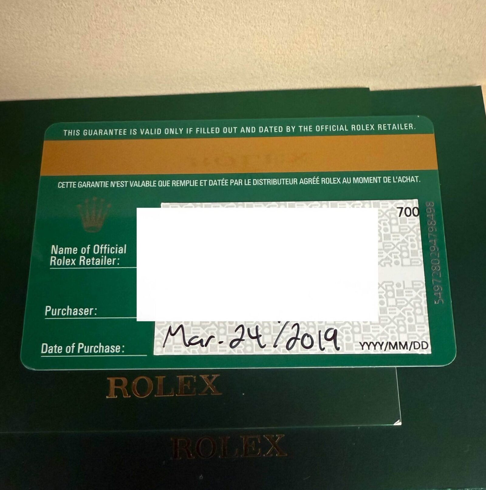 this rolex is in excellent overall condition and comes with its box, booklets, hang tags, and warranty card dated march 24th, 2019 as shown in the pictures attached. This watch is in stock and available to ship immediately!
