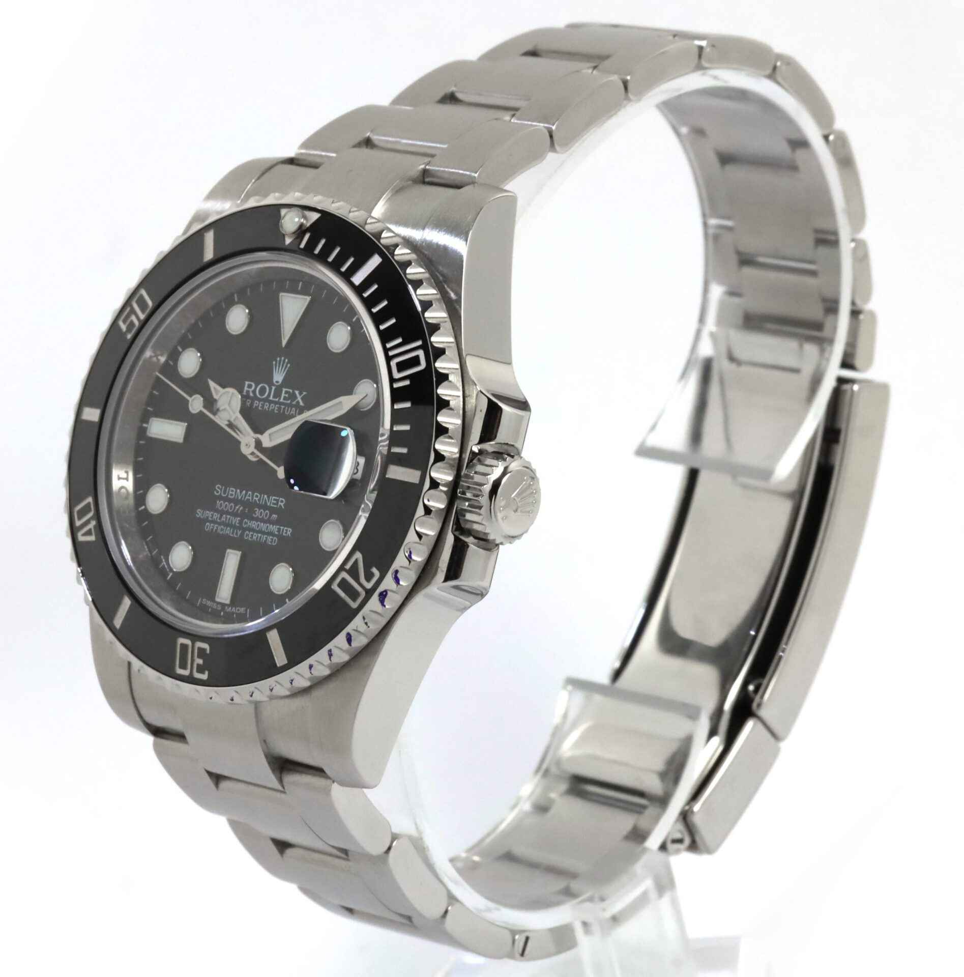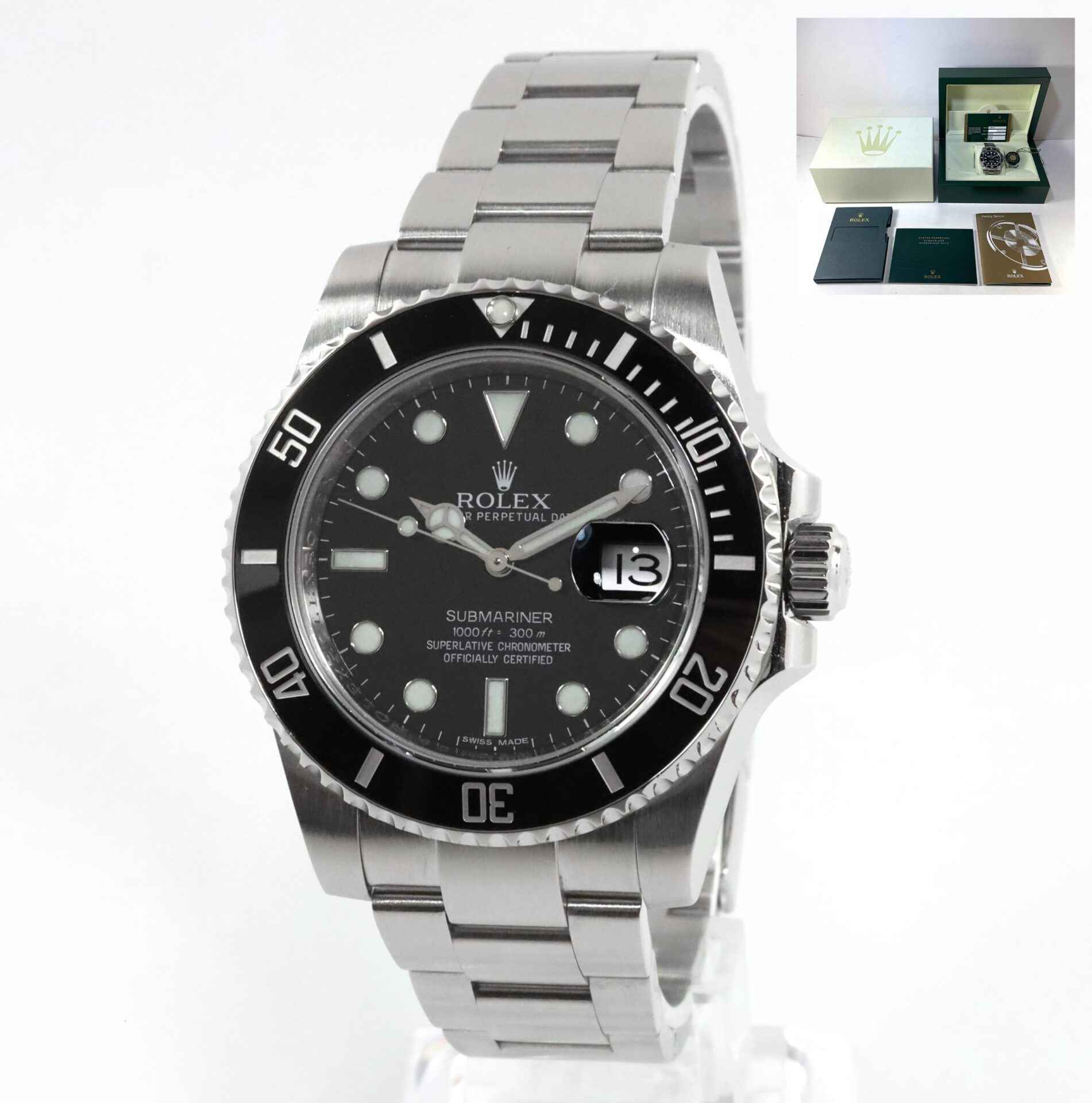 this rolex submariner is in excellent condition and comes with box, papers, hang tag, and warranty card dated august 30th, 2013. This watch is in stock and available to ship immediately!
