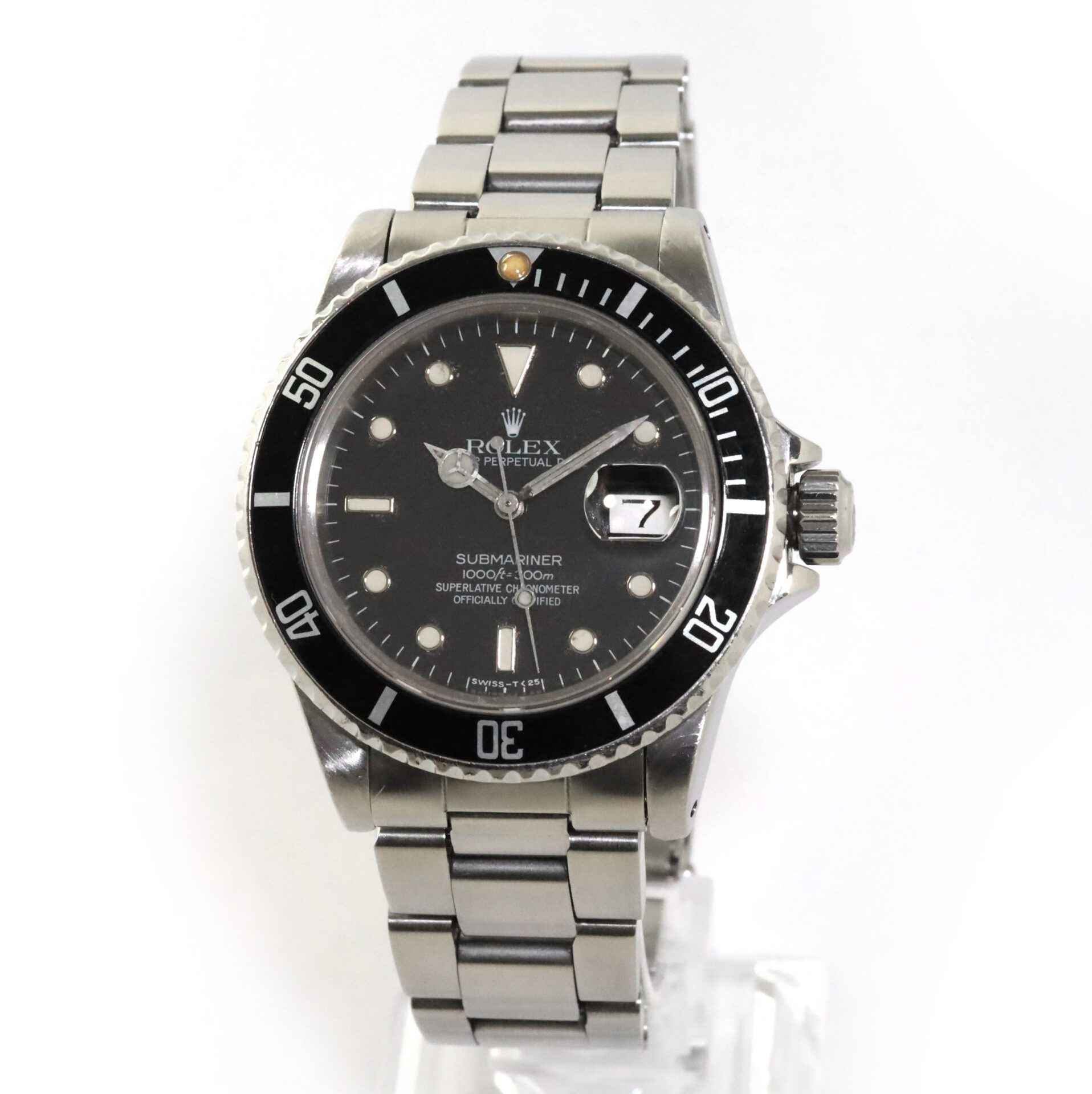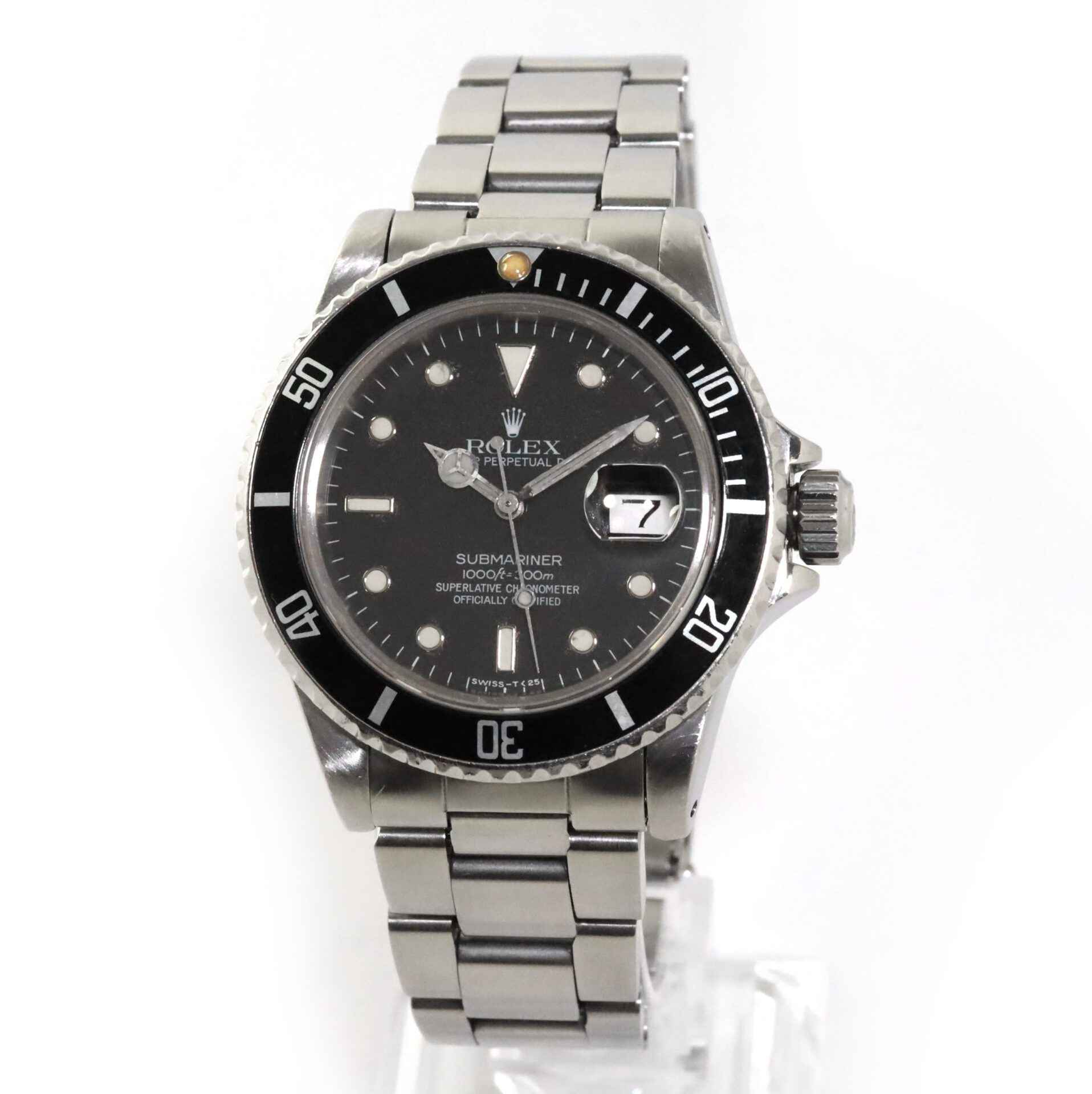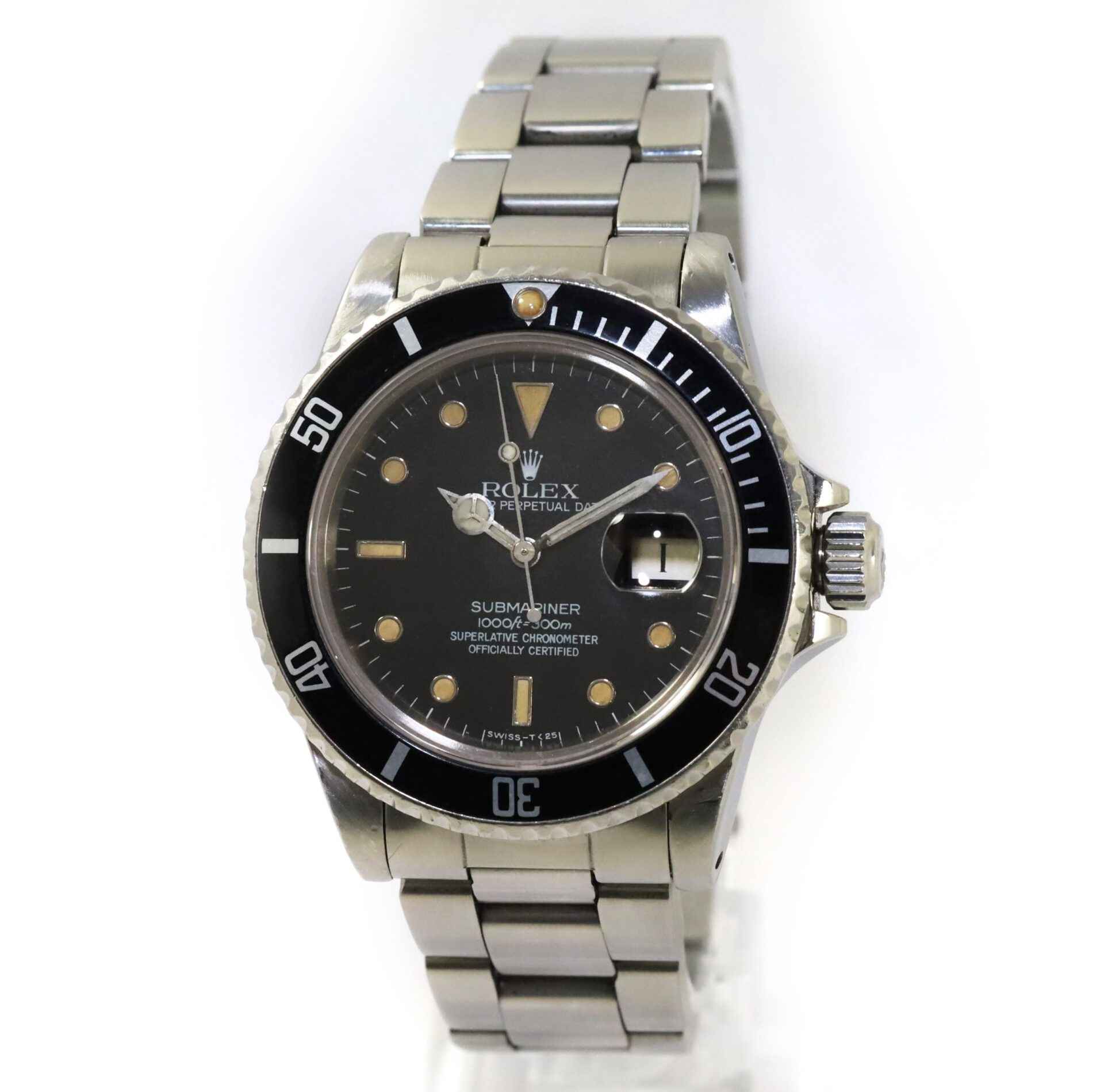 Read Morethis rolex submariner is in good condition for its age and is functioning properly. This watch has a serial number beginning with 87 which dates the year of production to be approximately 1985. This rolex comes as watch only and is in stock and available to ship immediately!