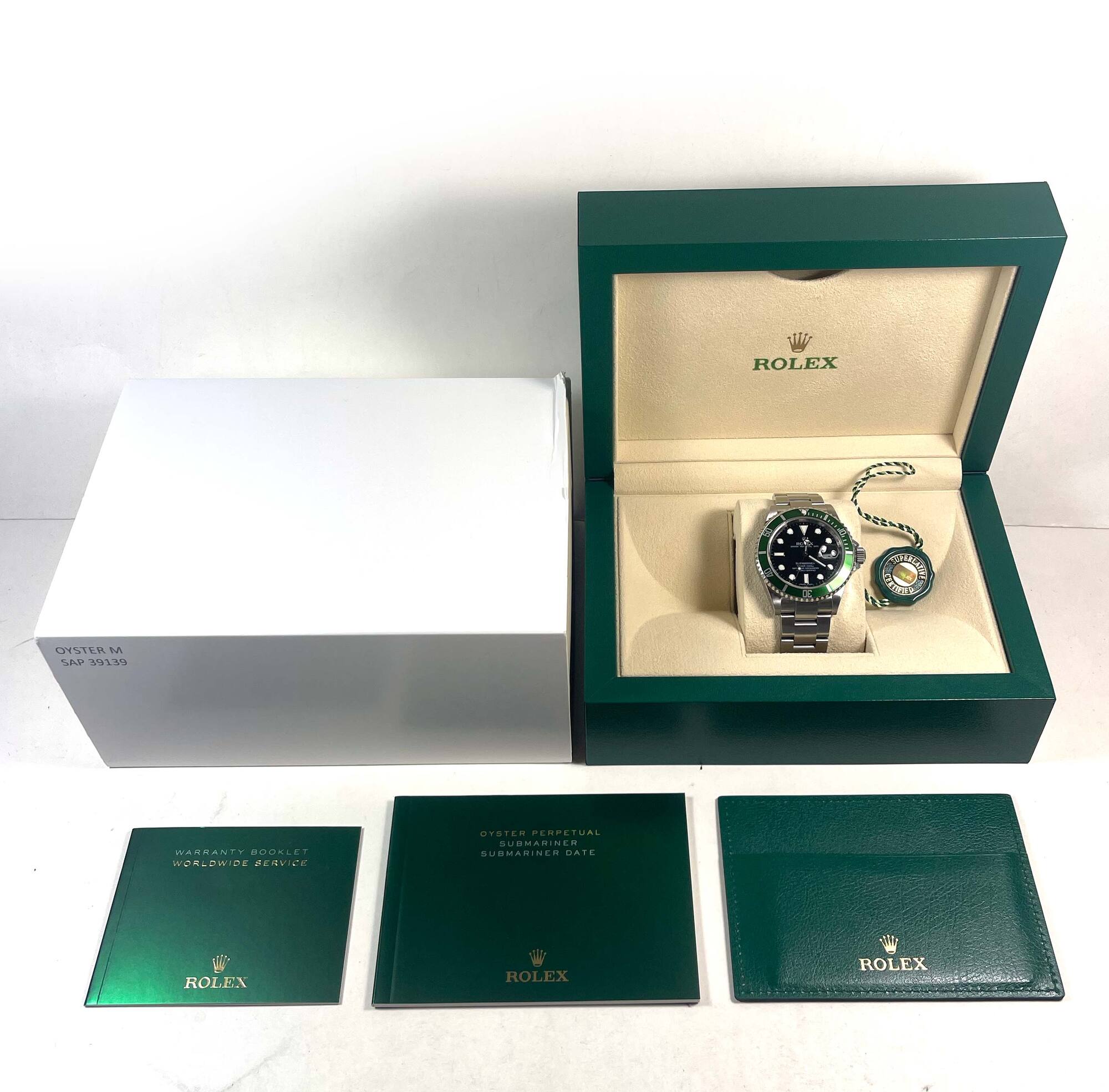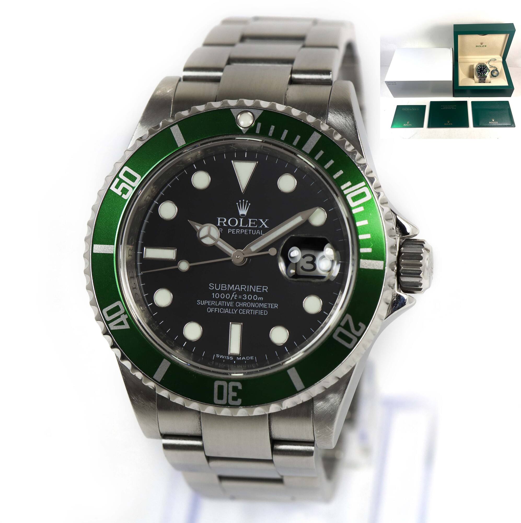 THIS ROLEX IS IN VERY GOOD OVERALL CONDITION SHOWING SOME MINIR SIGNS OF WEAR ON THE CASE AND BRACELET AS SHOWN IN THE PICTURES ATTACHED. THIS WATCH COMES WITH ITS BOX, BOOKLETS, AND GREEN HANG TAG ONLY. THE SERIAL NUMBER FOR THIS SUBMARINER BEGINS WITH V W...