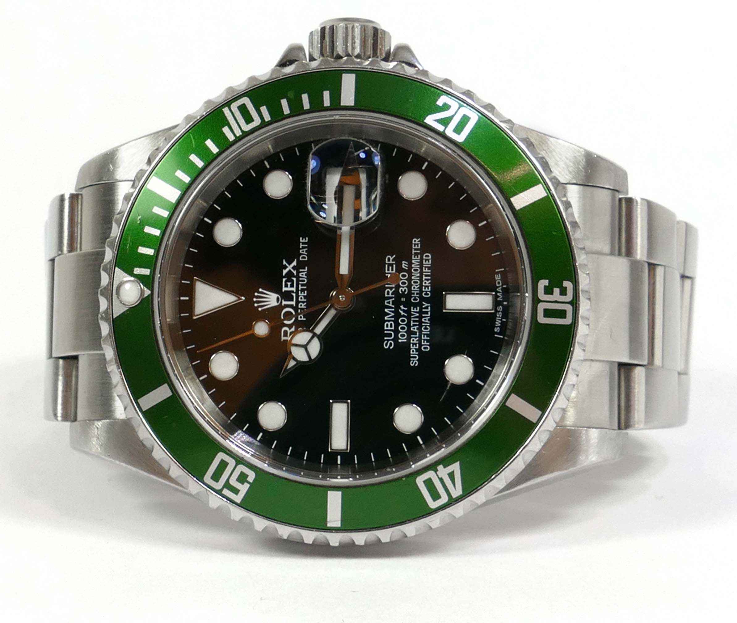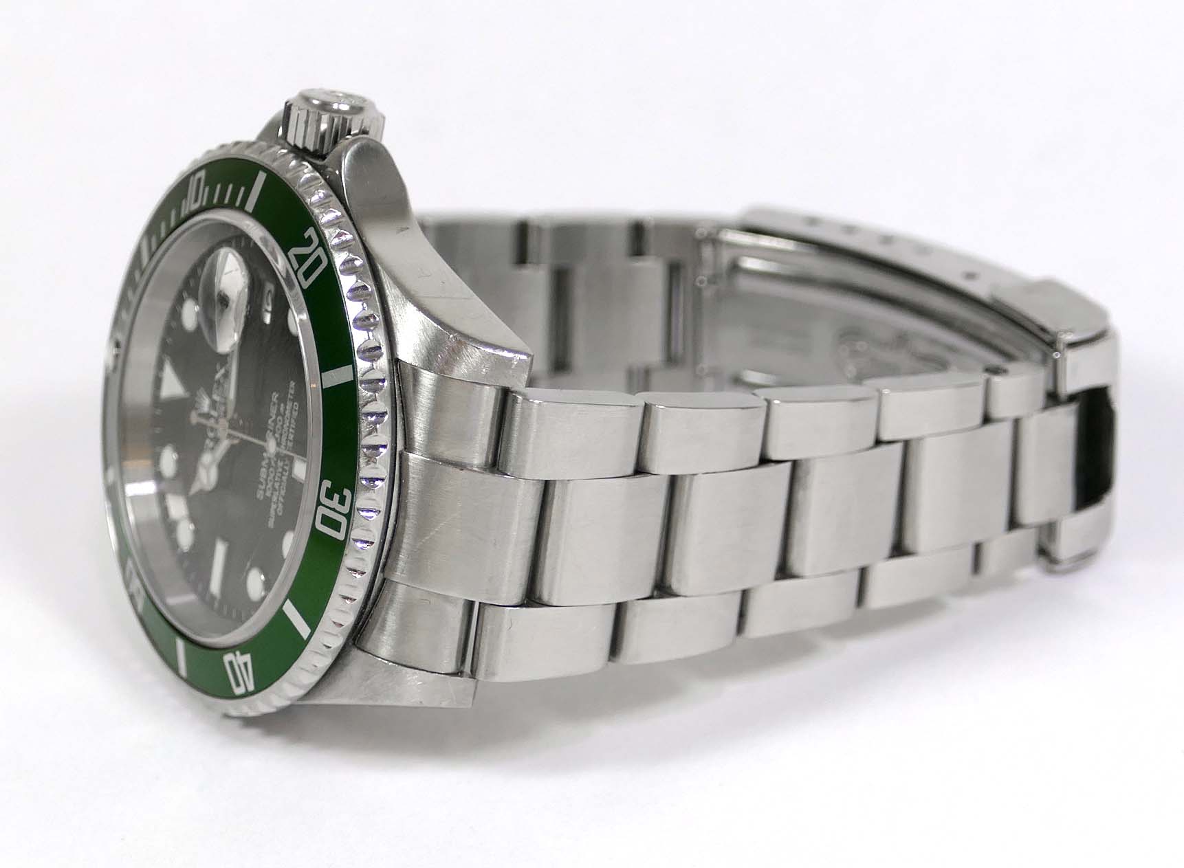Read Morethis watch is in great overall condition, is functioning accurately, and 100% original. It comes with its original box and booklets, however no warranty certificate. All original 12 links are included on the bracelet. The crystal has a small scratch above the 7pm marker, and the bezel shows some wear from normal use. The watch is unpolished and shows wear on the case and bracelet, we can polish it upon request however many buyers prefer it in its current condition.