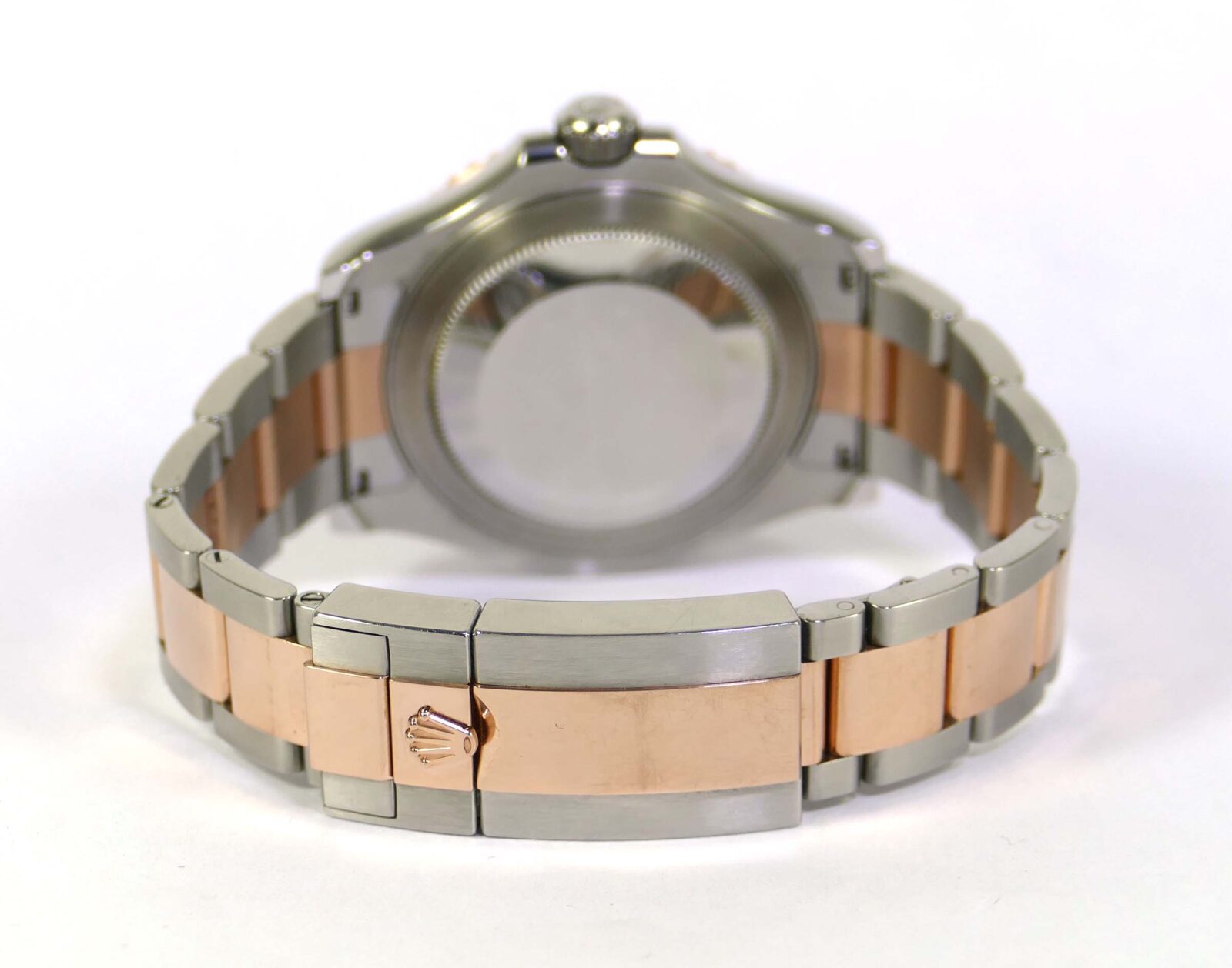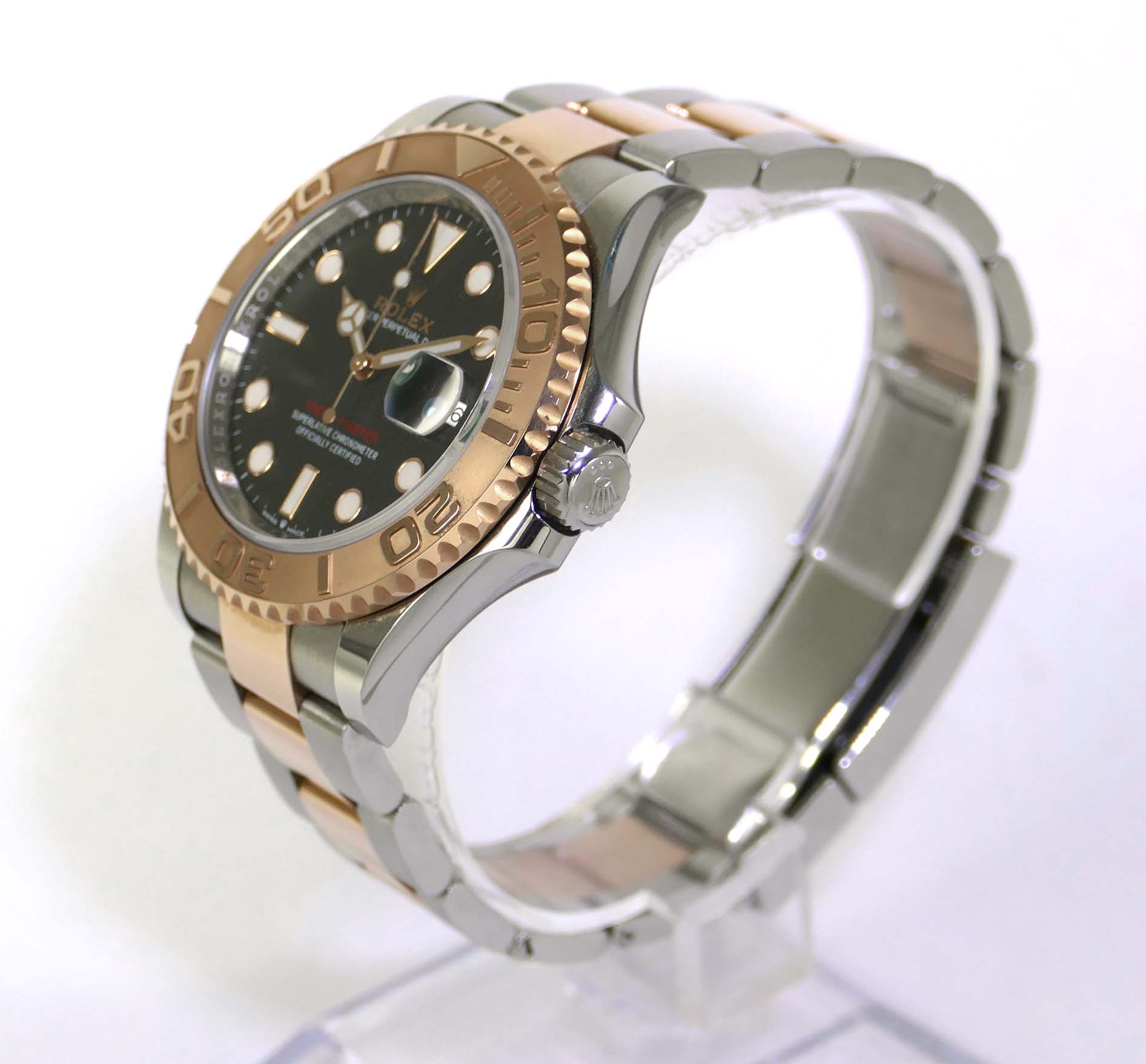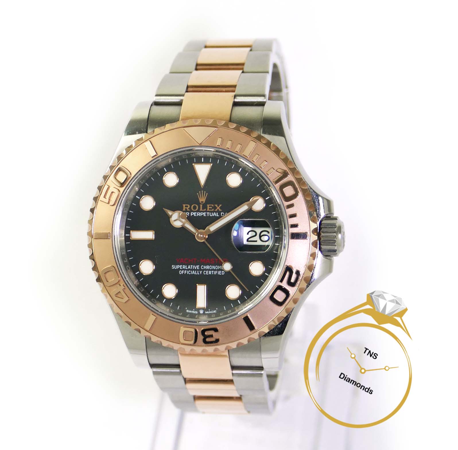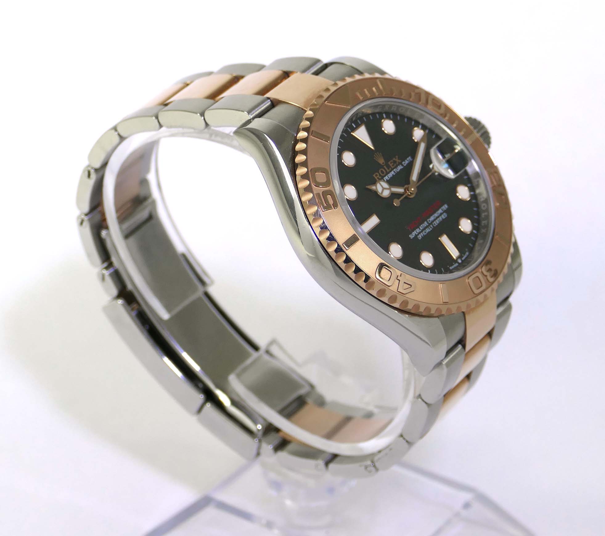 the dial is matte black, “yacht-master” is written in red, and rolex is written in gold. It is a very cool and unique color combination!