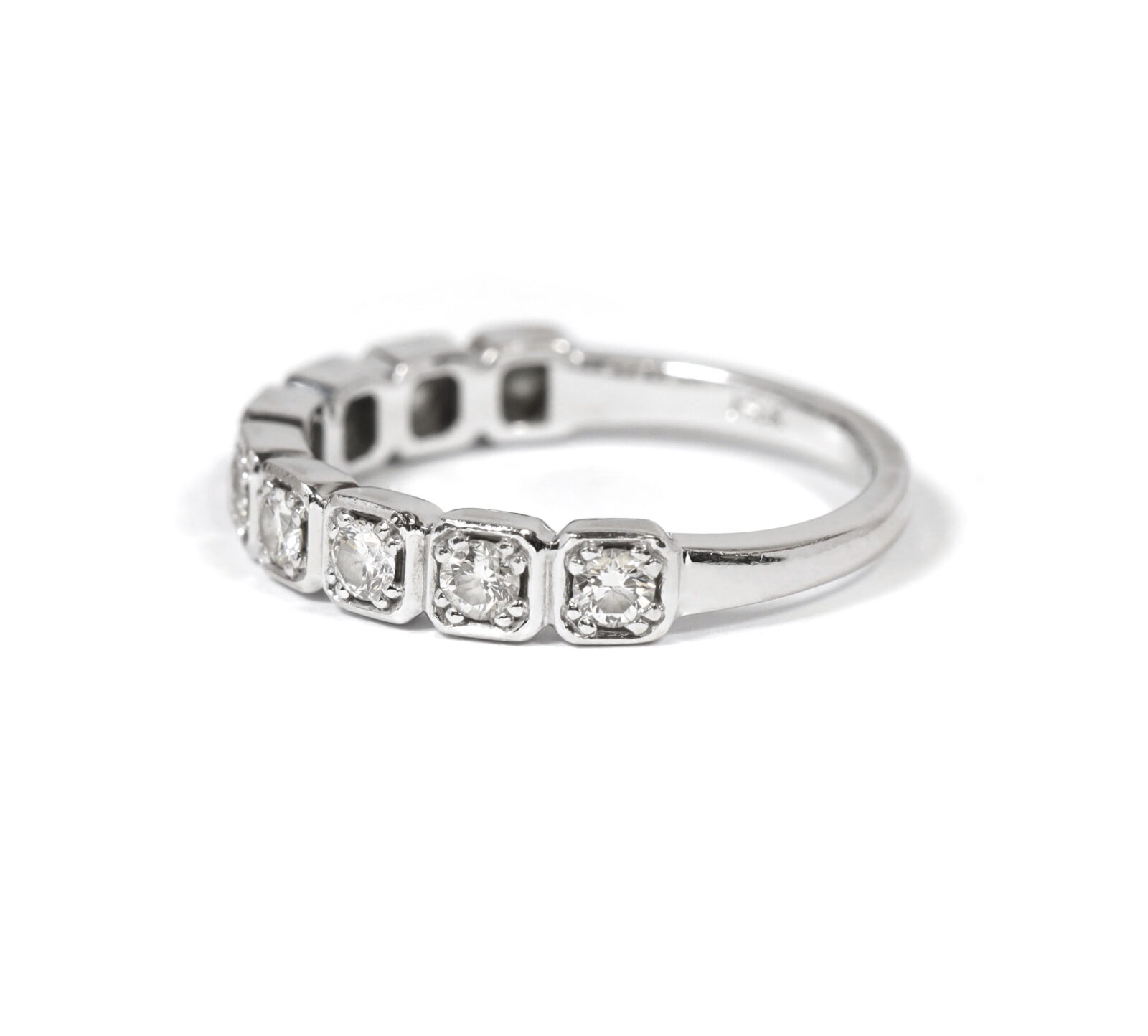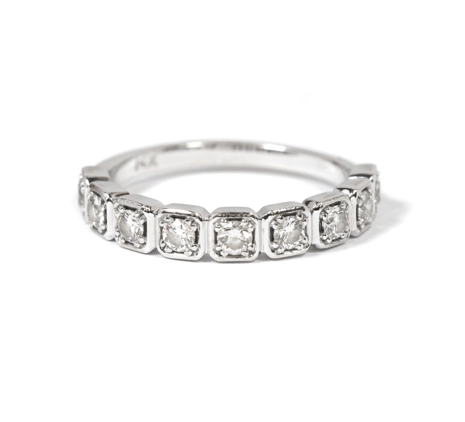 metal: 14k white gold width: 3.6mm size: 6.75 gemstone: diamond carat weight: approximately 0.45 carat color: i clarity: si1/si2 cut: round