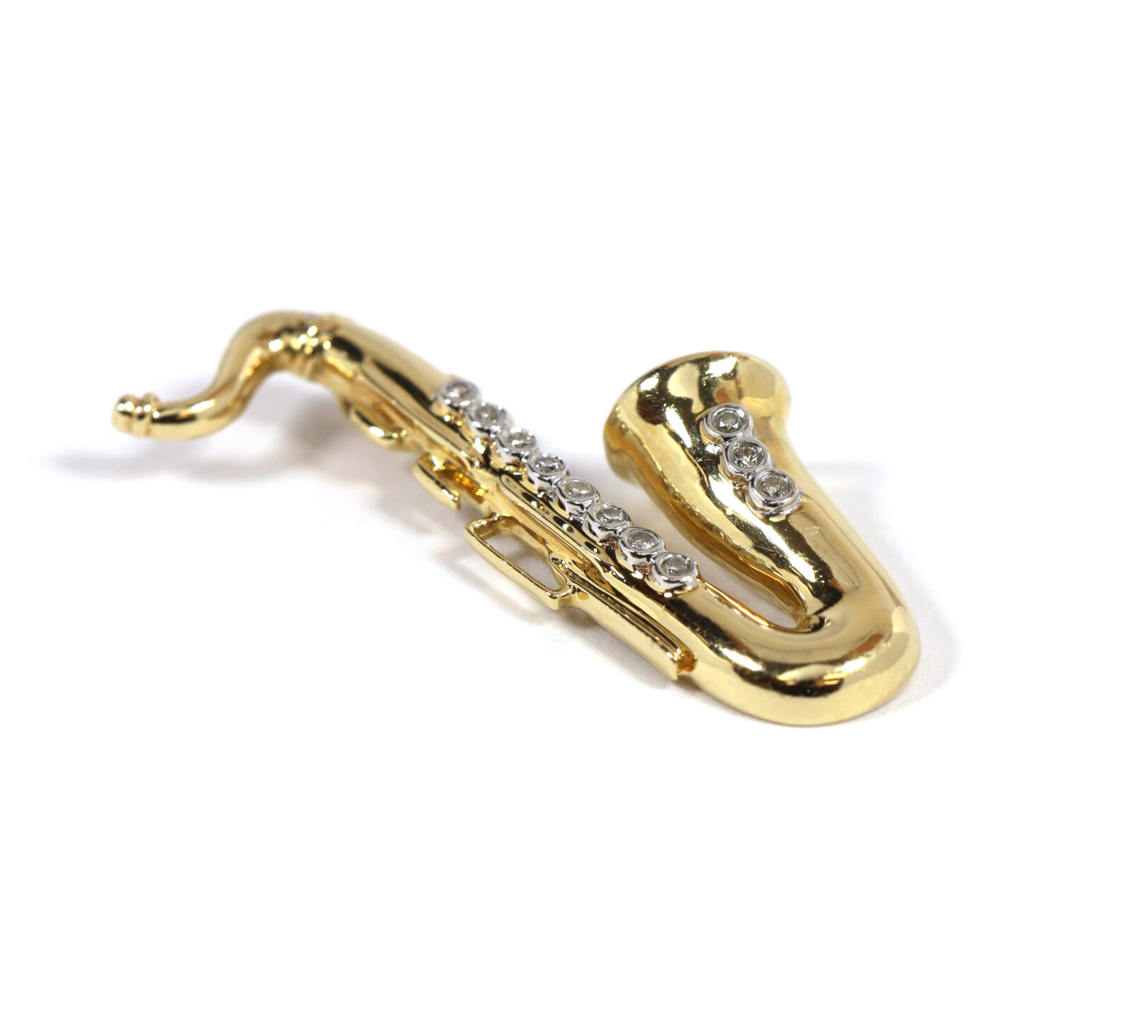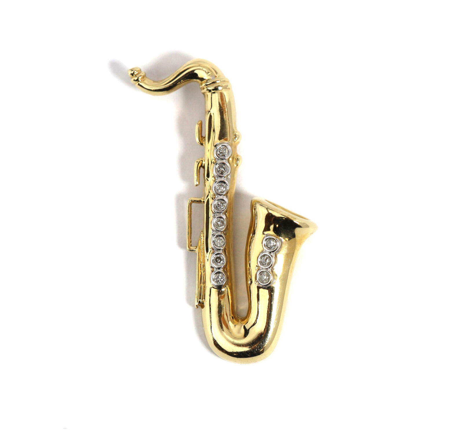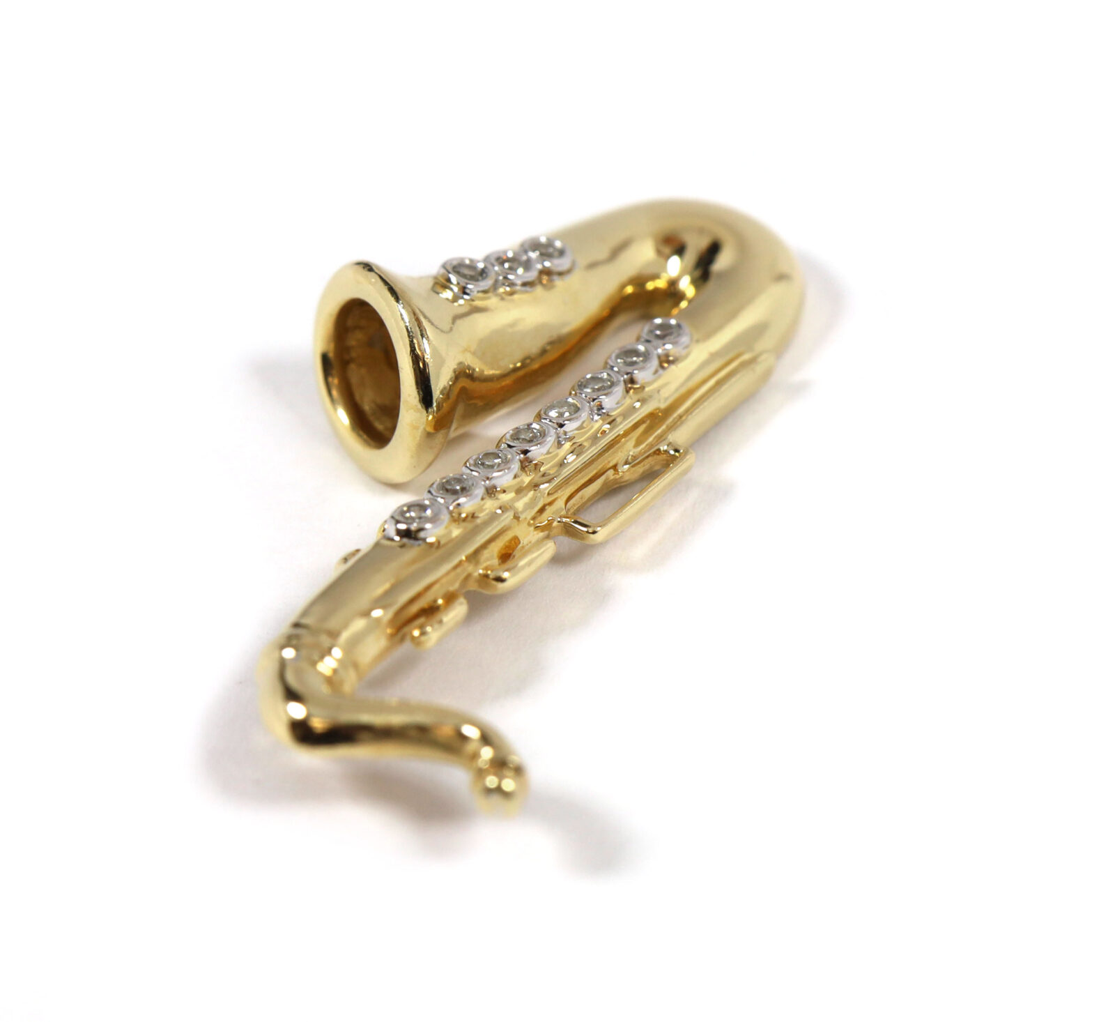metal: 10k yellow and white gold pendant measurements: 38 x 24 mm gemstone: diamond carat weight total: 0.22 carat cut: round clarity: si1 color: f