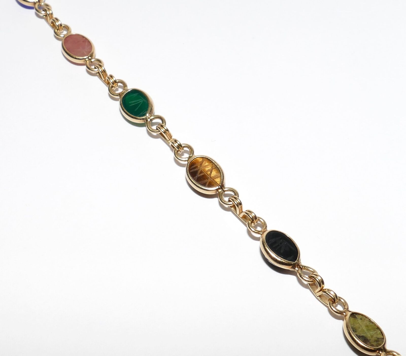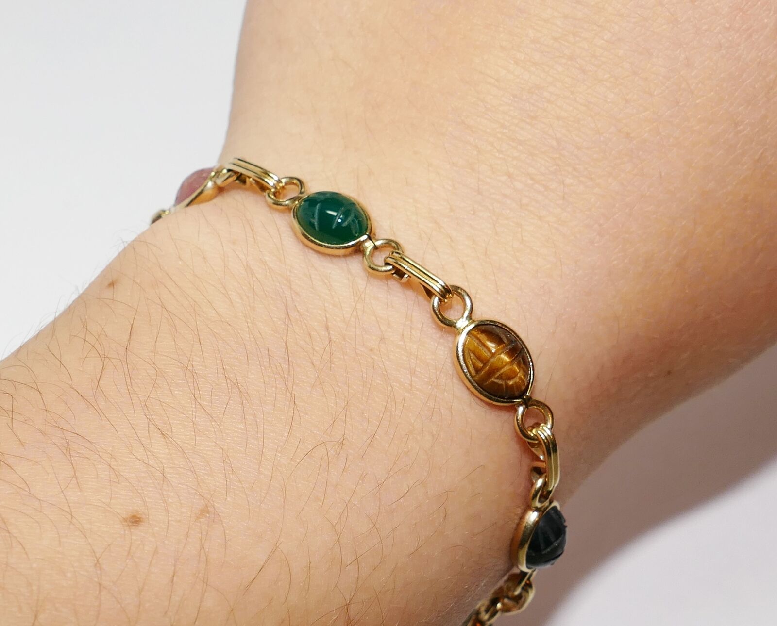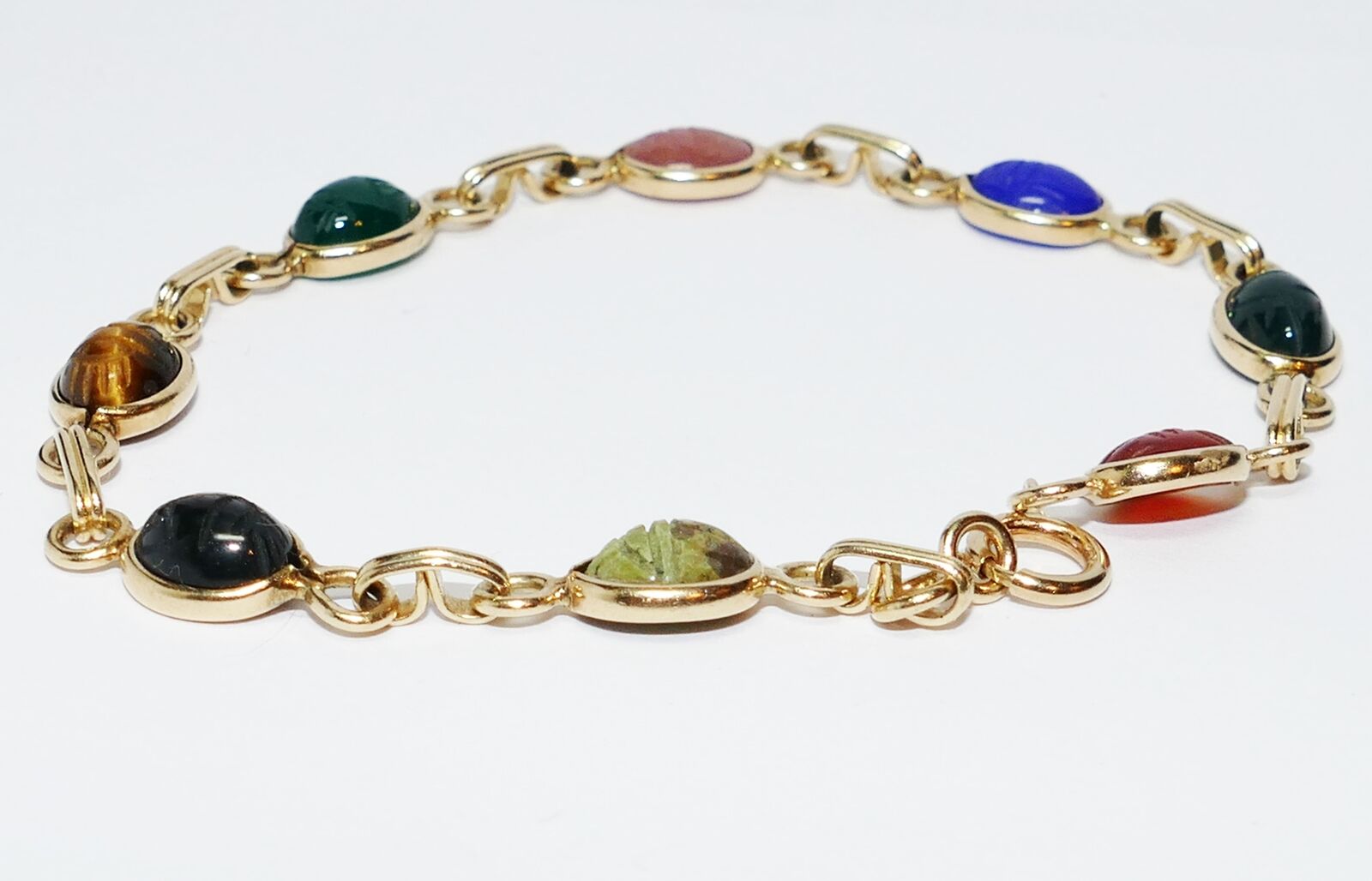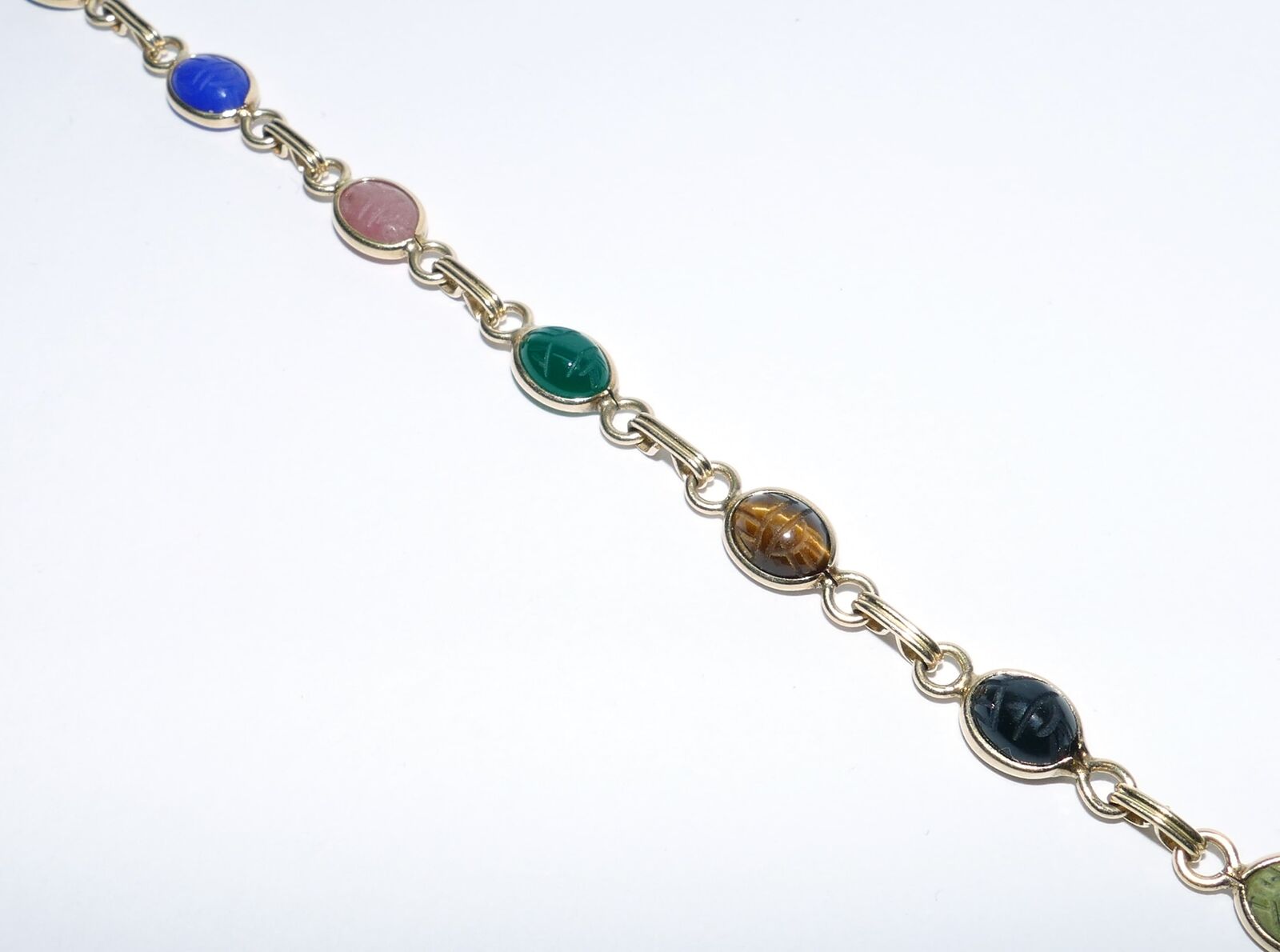 Scarab Bracelet – Multi-Colored Stone – 14k Yellow Gold – 6.7 Grams