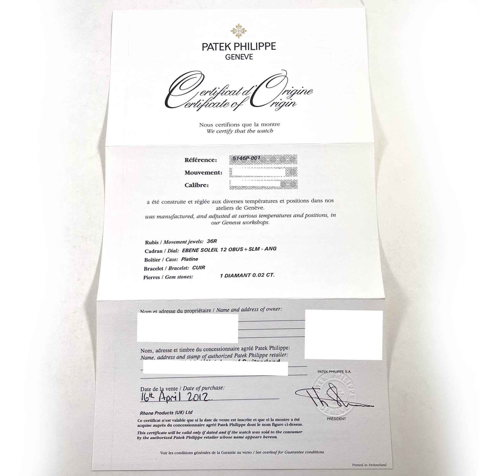 This Patek Philippe is new and comes sealed in its original packaging as shown in the photos attached. This watch also comes with its box, papers, Patek tool, hang tag, and warranty papers dated April 16th, 2012. This wat...