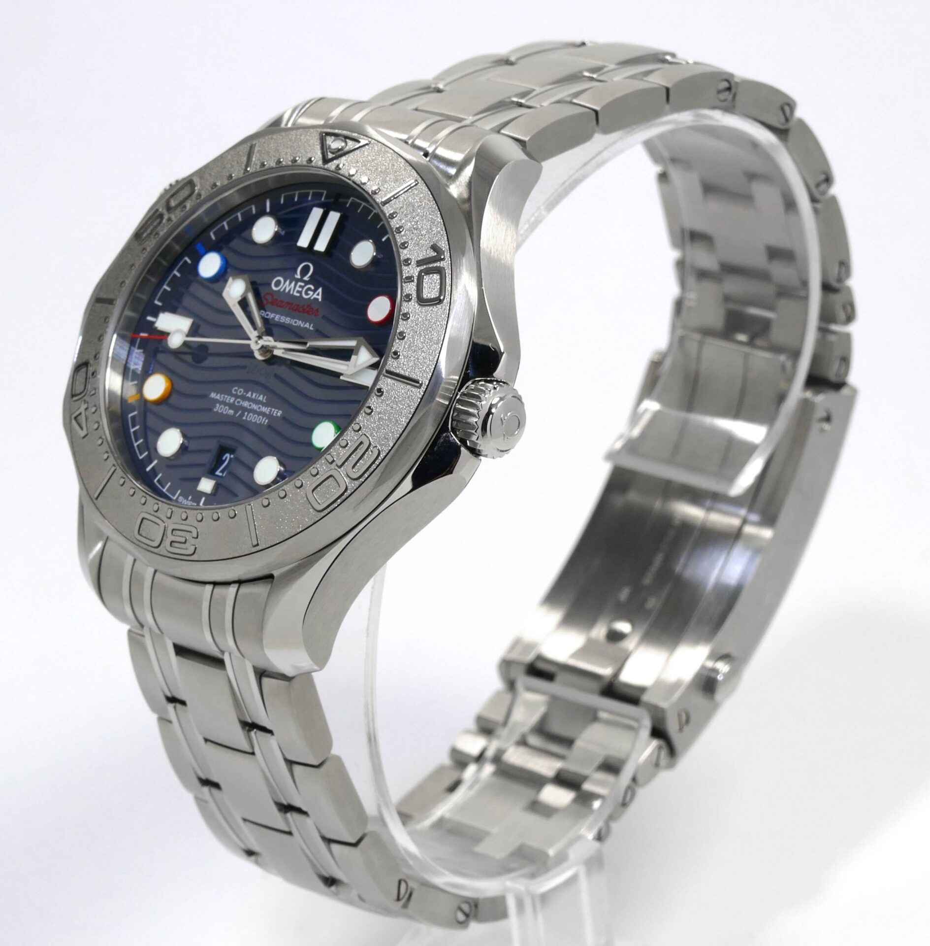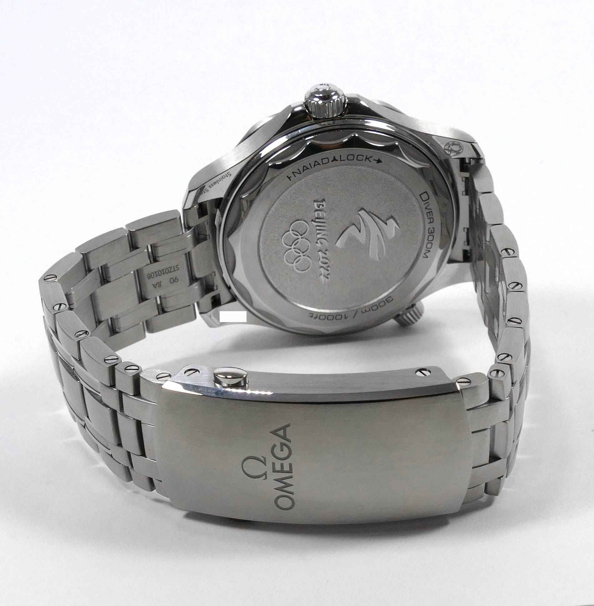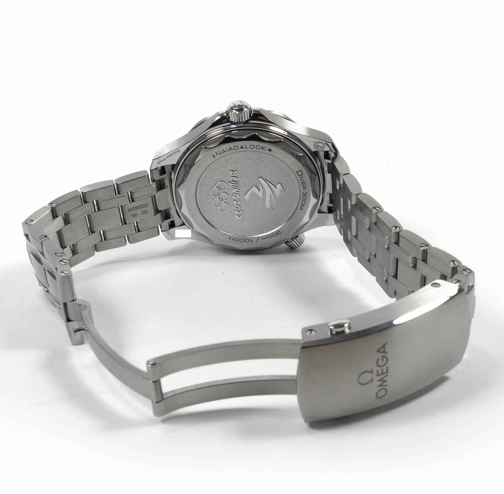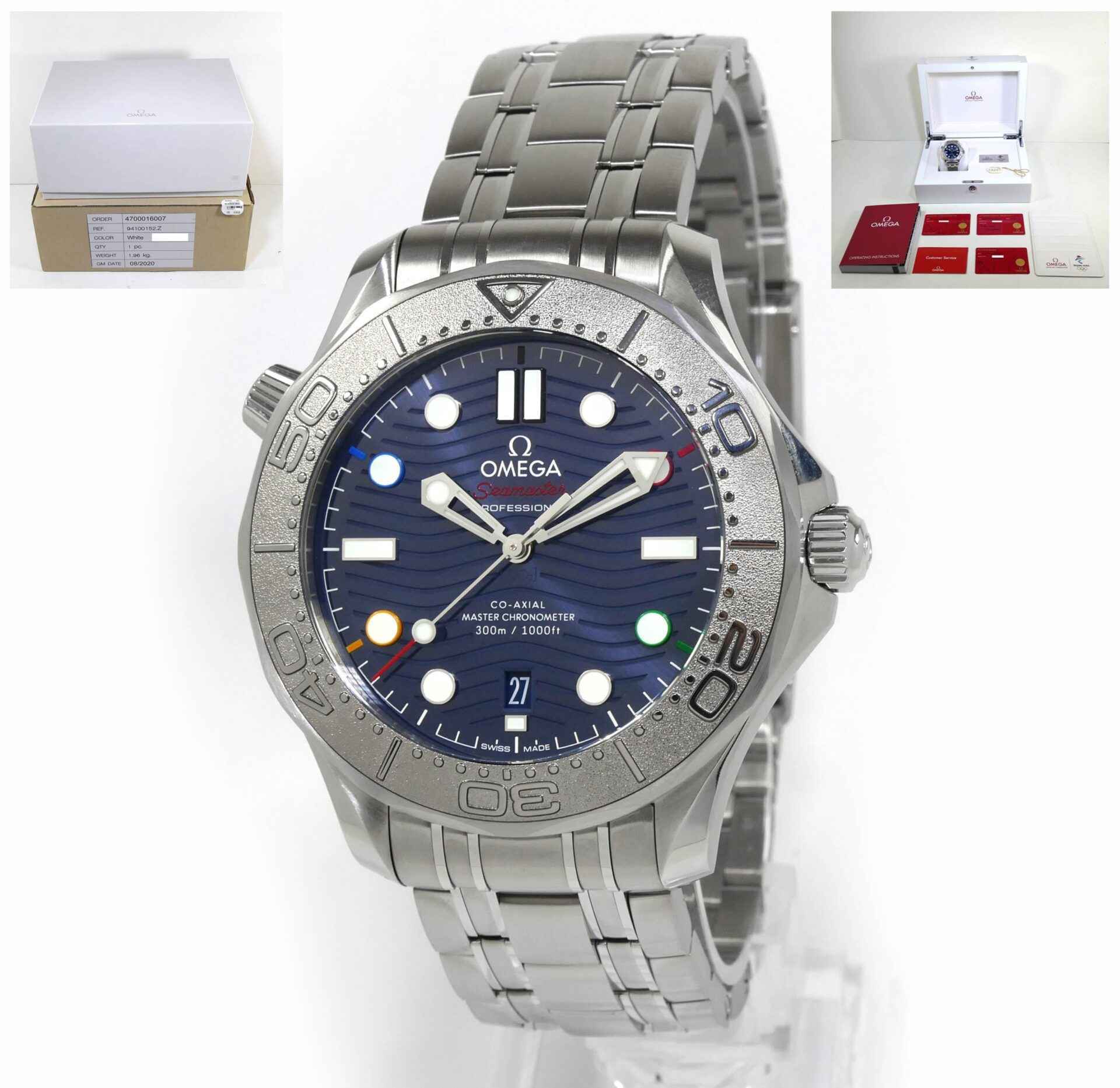 this omega seamster is new and comes with box, papers, hang tag, and warranty card dated september 10th, 2021. This watch is part of a limited edition produced from omega for the upcoming 2022 winter olympics. This watch is in stock and available to ship immediately!