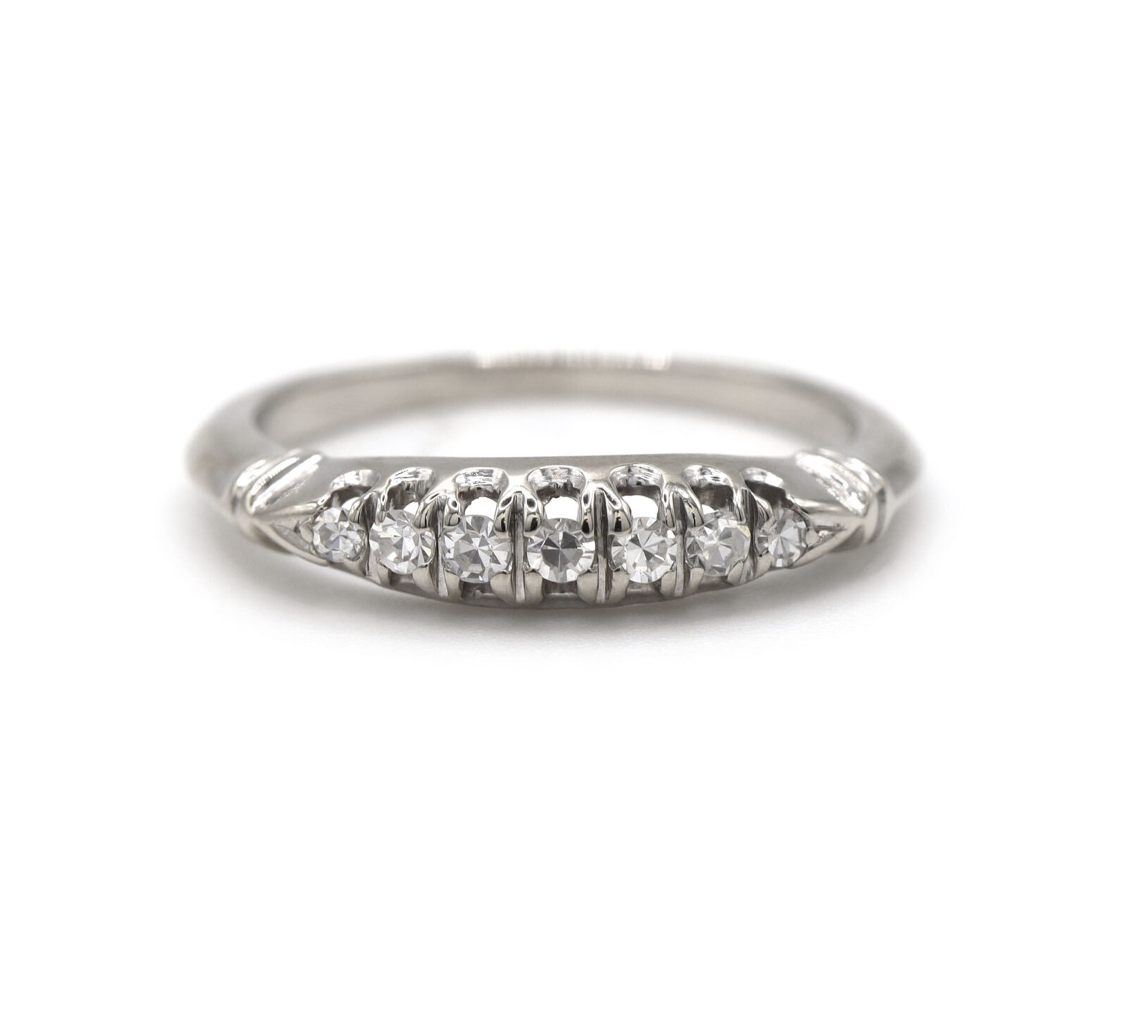 Single Cut Diamond Row 14K White Gold Wedding Stacking Band Ring