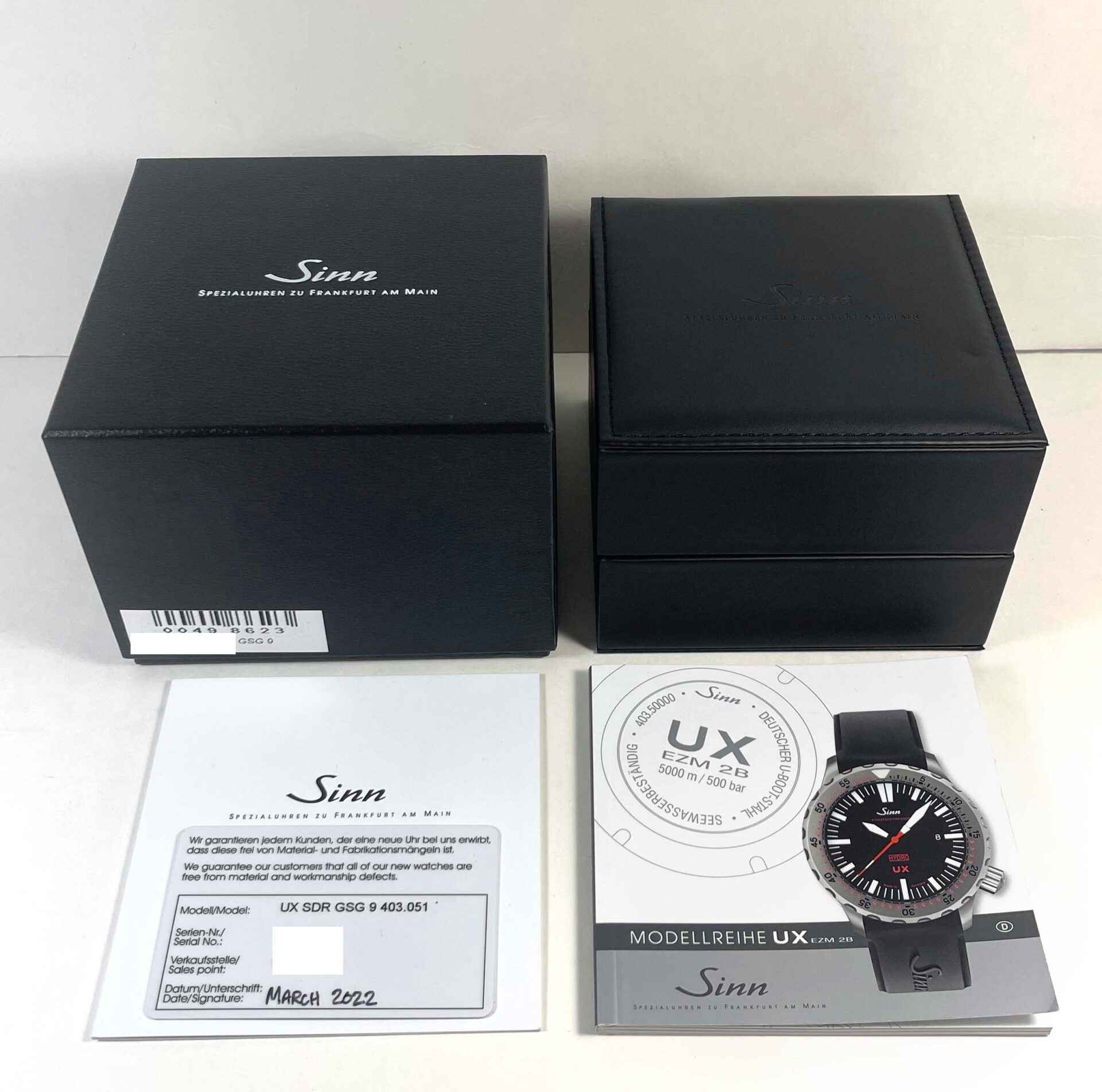 this sinn watch is in excellent condition and comes with its box, booklet, sinn tool, and warranty card dated march, 2022 as shown in the pictures attached. This watch is in stock and available to ship immediately!