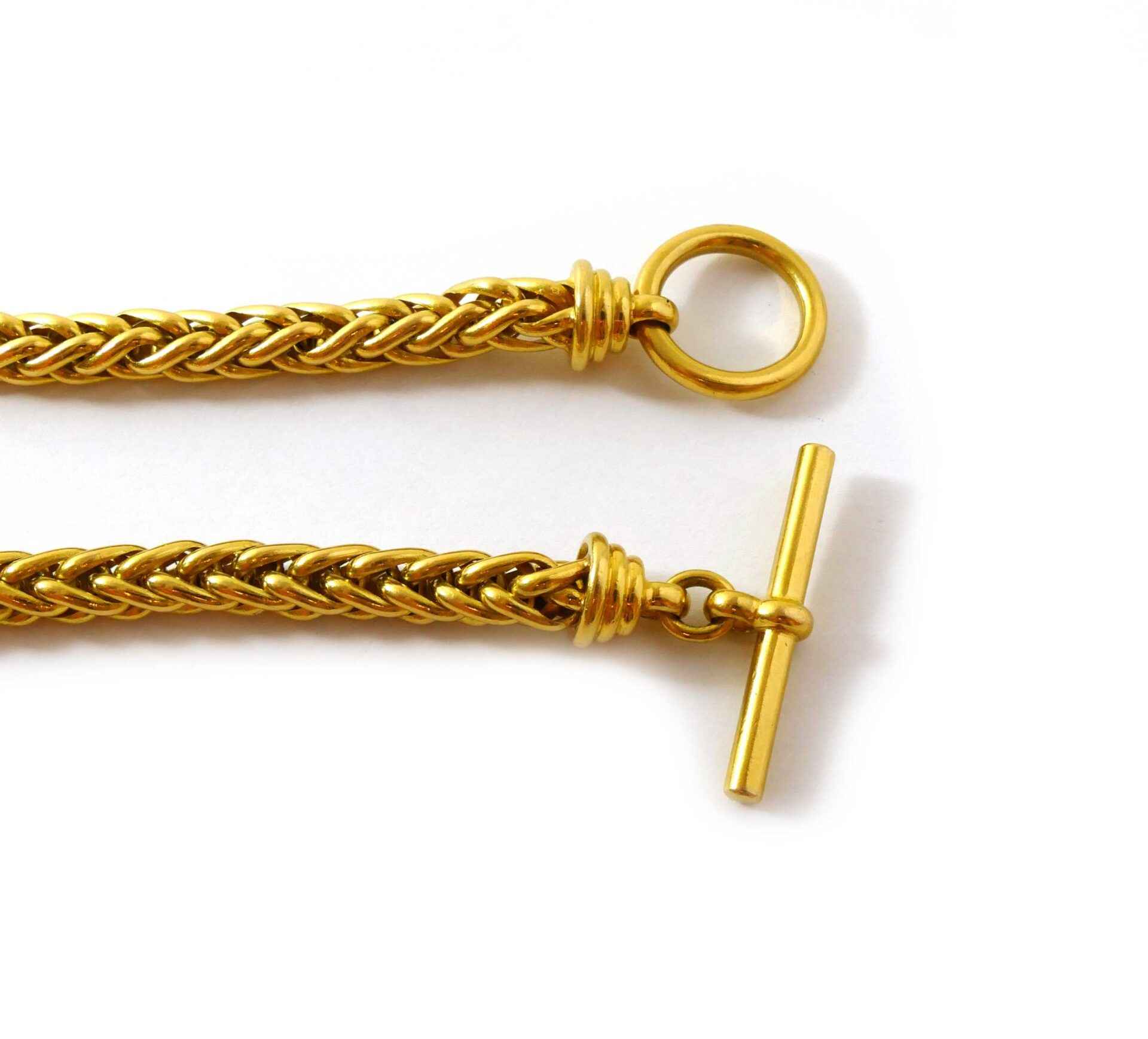 Product Description: This solid 18k yellow gold Franco link chain bracelet is 8.25 inches, and 6mm wide. This bracelet weighs 56.2 grams, and has a toggle clasp to ensure safety and security on the neck. ...