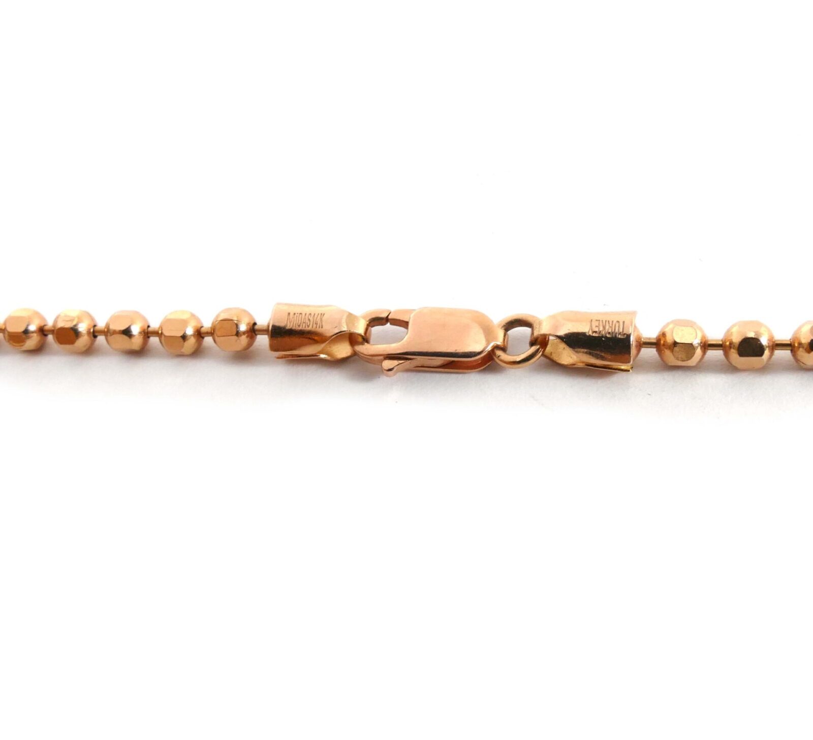 This is a solid 14k rose gold ball/bead chain, made in Turkey. It is 26 inches long, 3.5mm wide and weighs 27 grams. Material: 14k Rose...