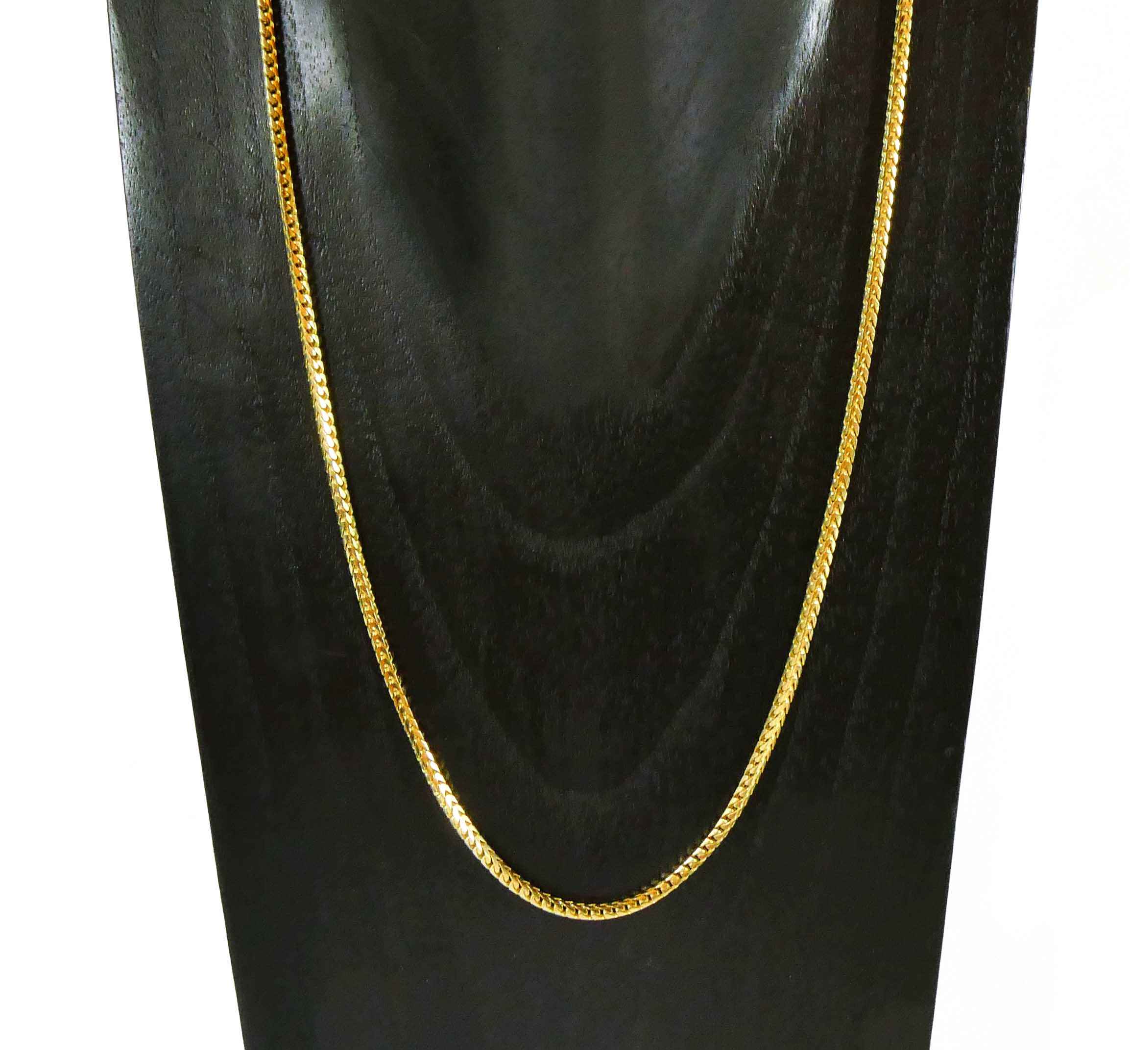 franco chains are a staple look that is suitable for any gender and style. This solid 10k yellow gold rope chain is 30 inches long, 2.2mm wide and weighs a total of 23.45 grams.