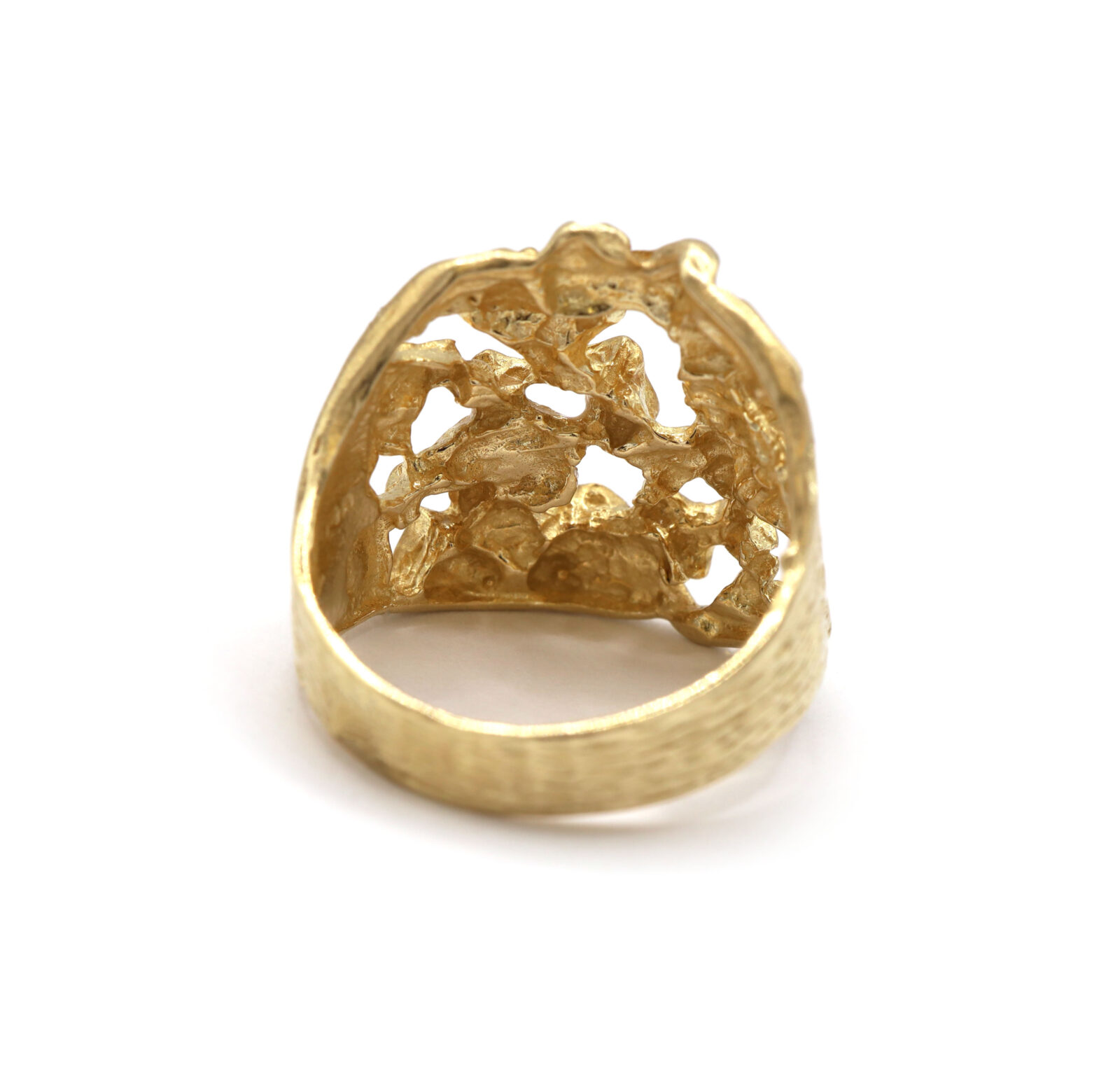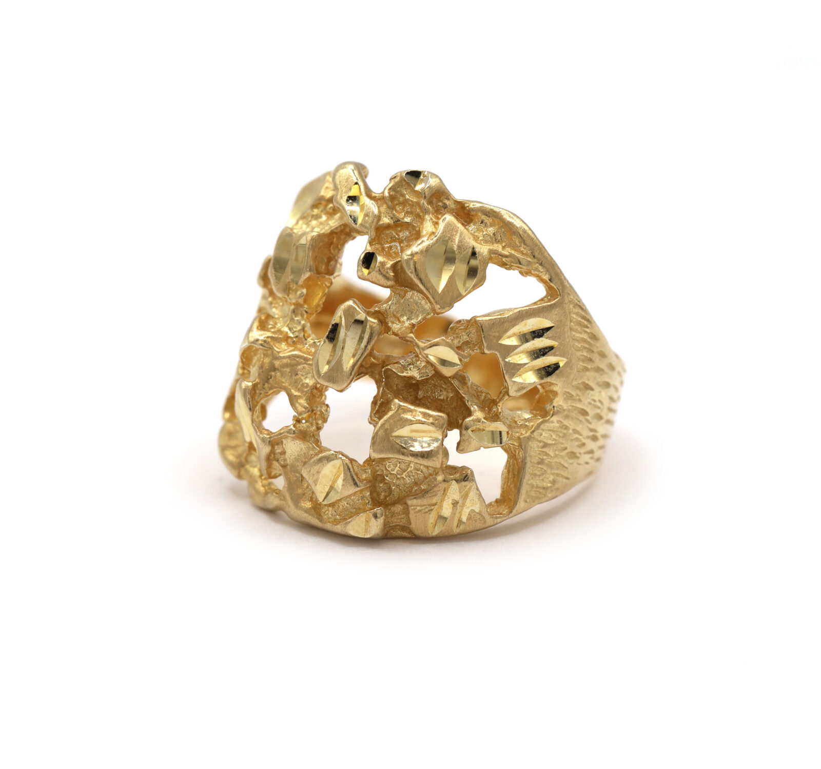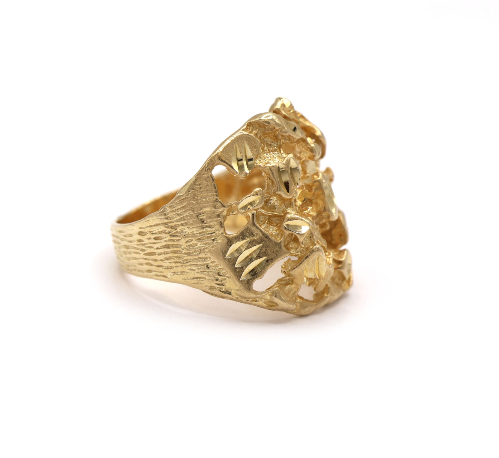 Solid Gold Nugget 14K Yellow Gold Diamond Cut Detailed Statement Men’s Ring