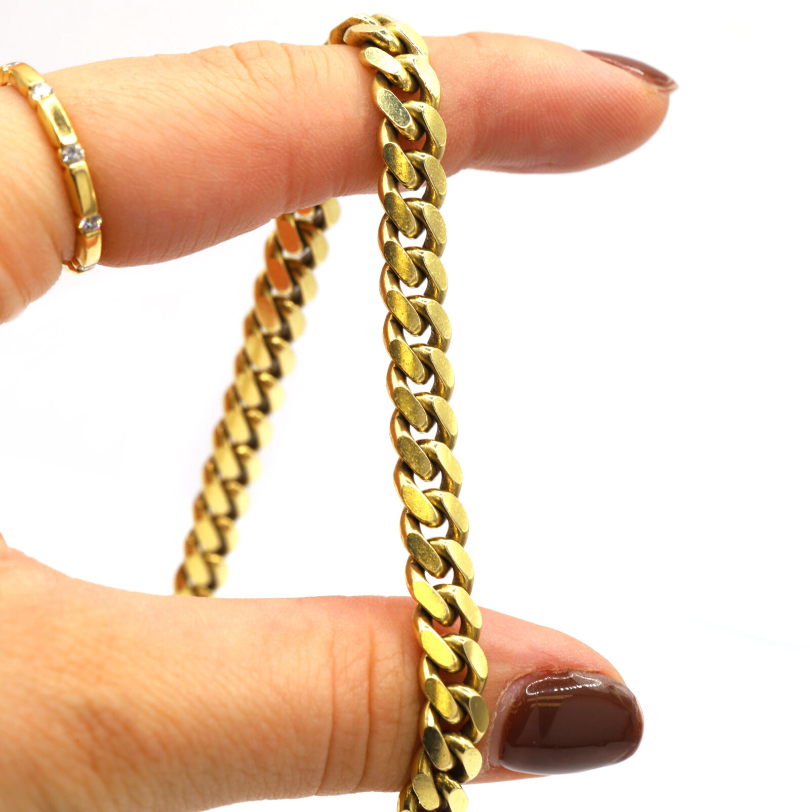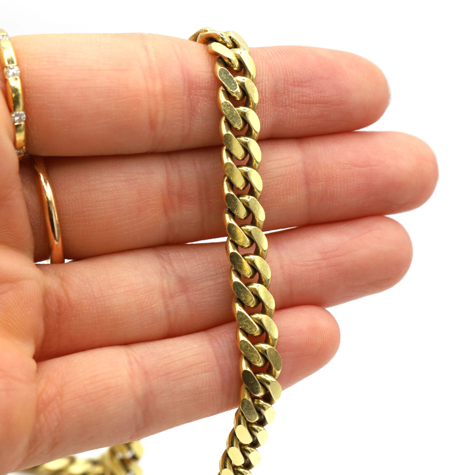 Material: 14k Yellow Gold Type: Cuban Length: 26.5 Inches Width: 7mm Weight: 97 Grams