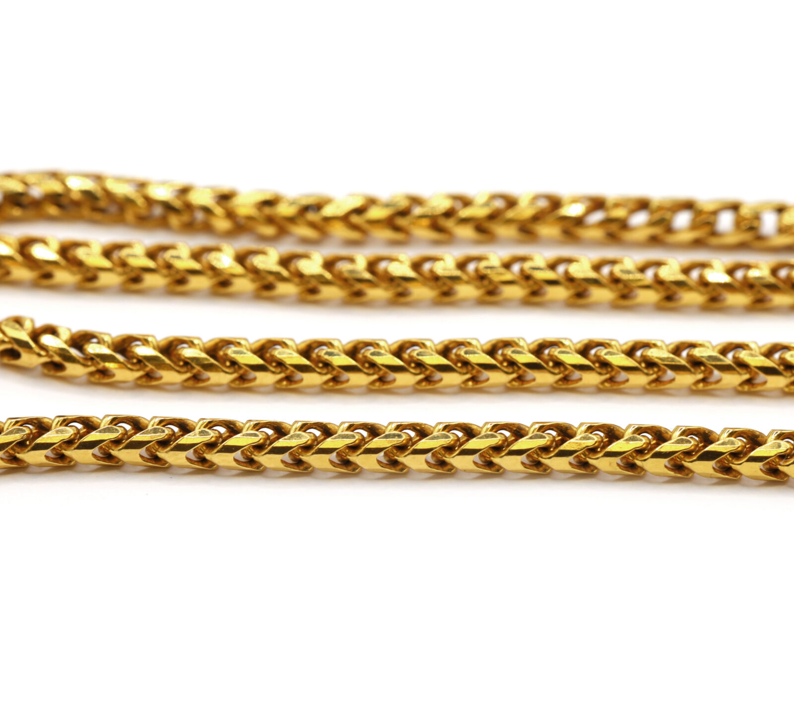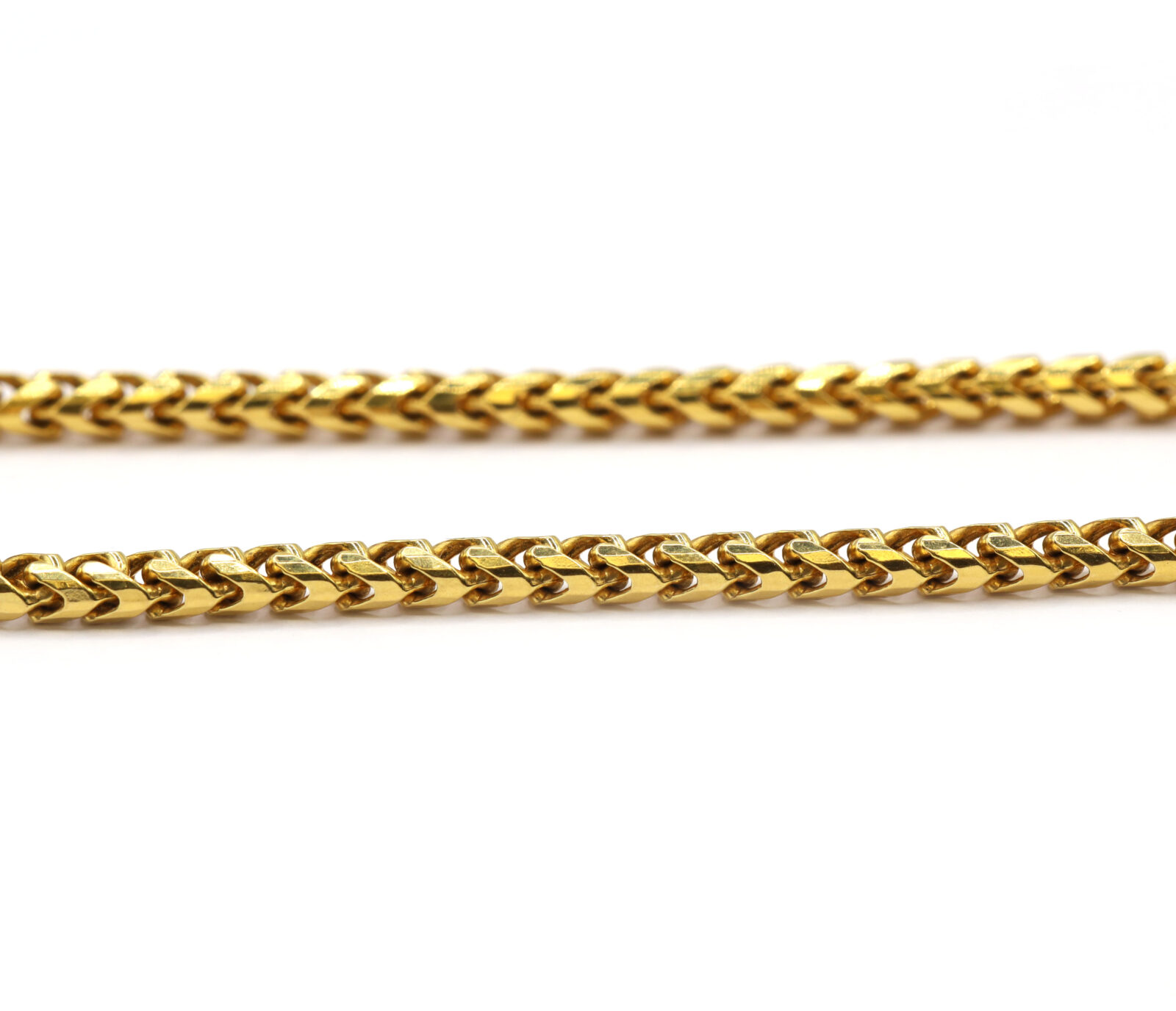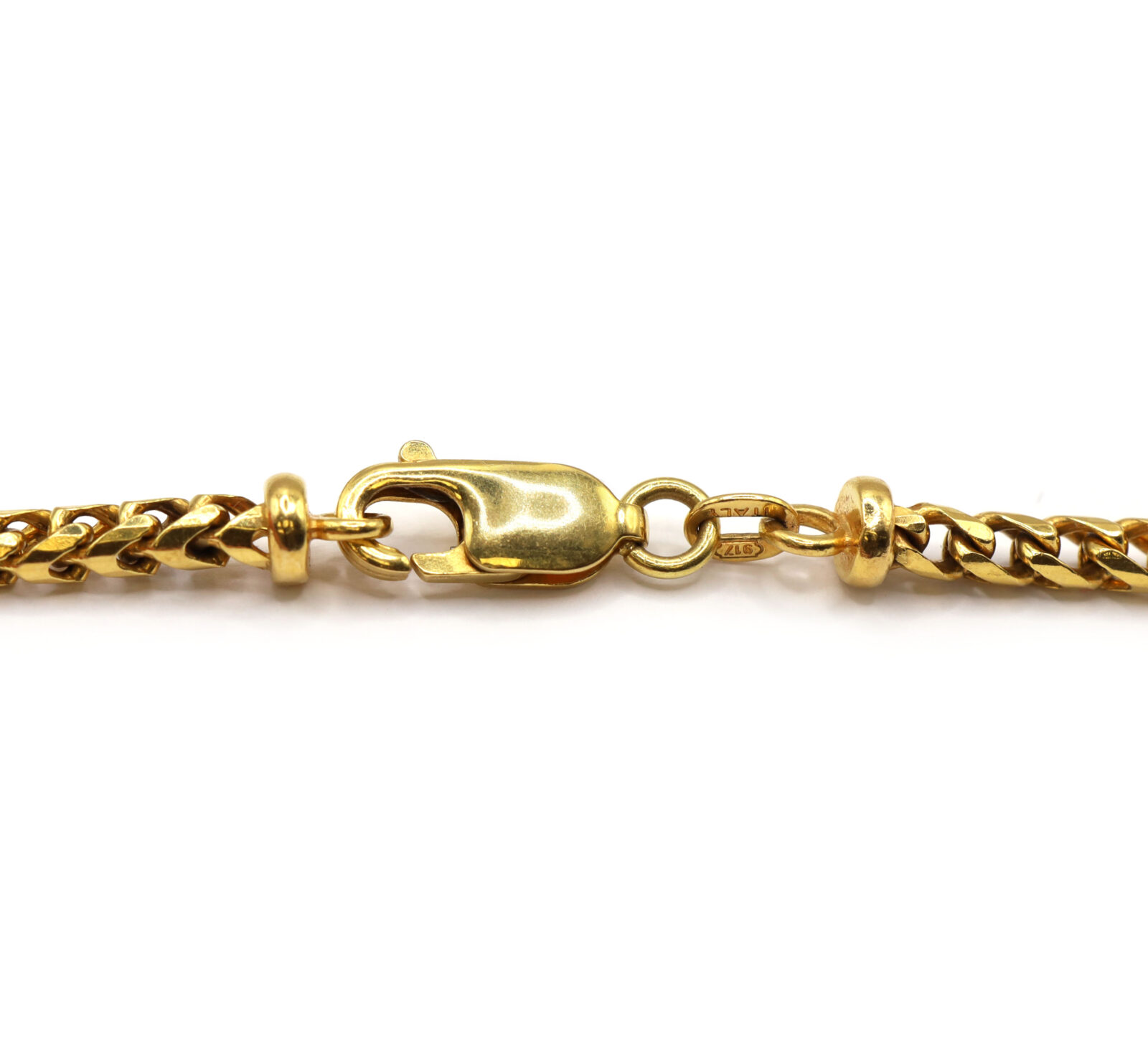 metal: 22k yellow gold stamp: “917” length: 22 inches type: franco link weight: 39.6 grams width: 4mm clasp: lobster clasp