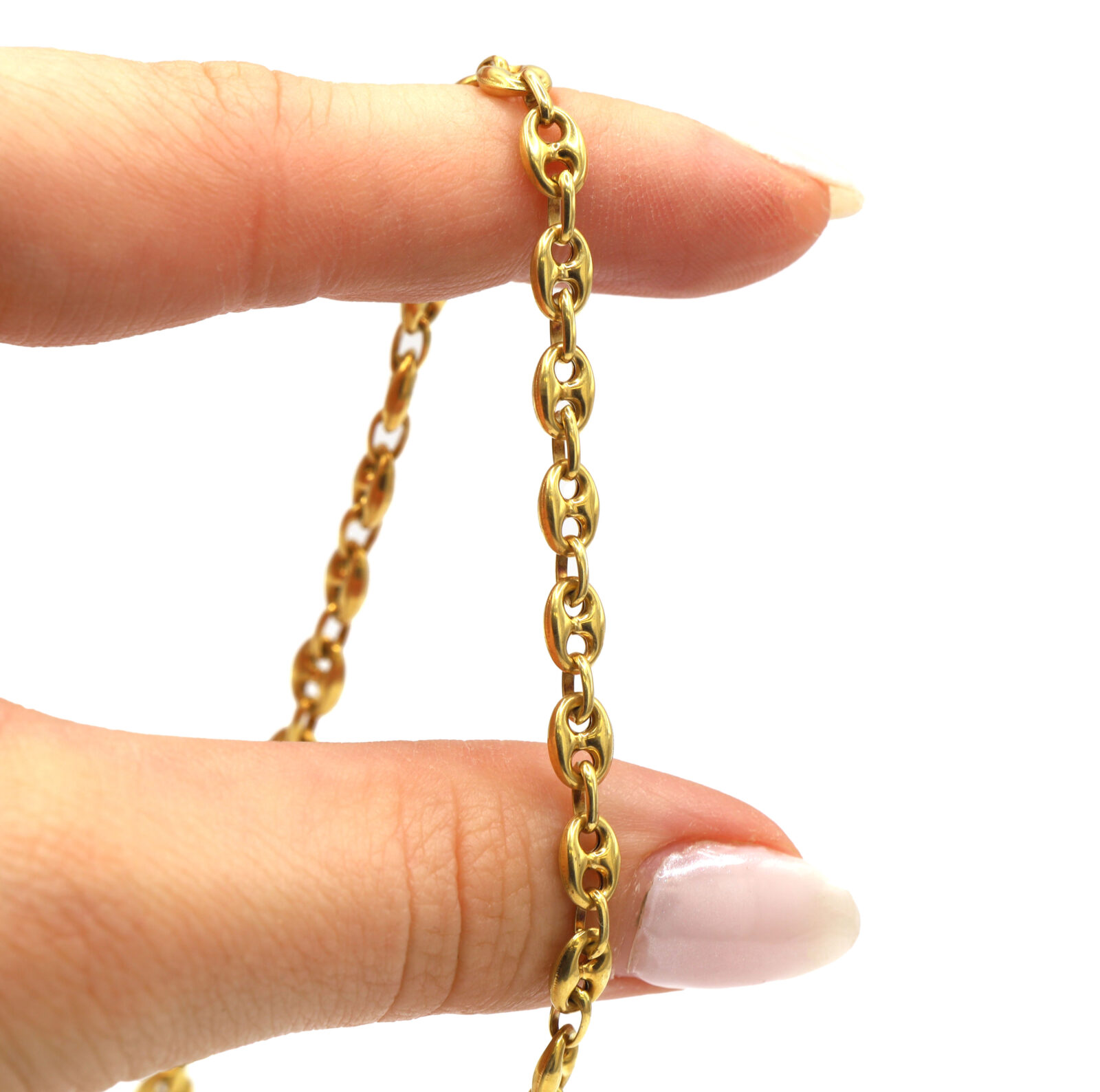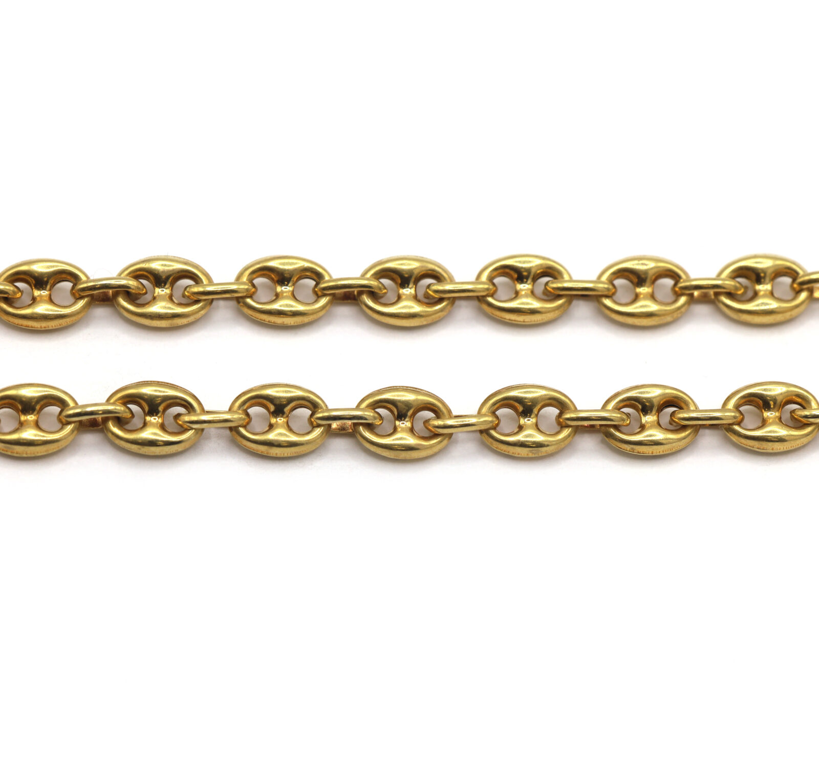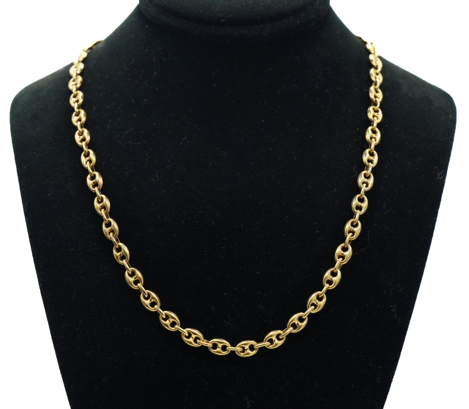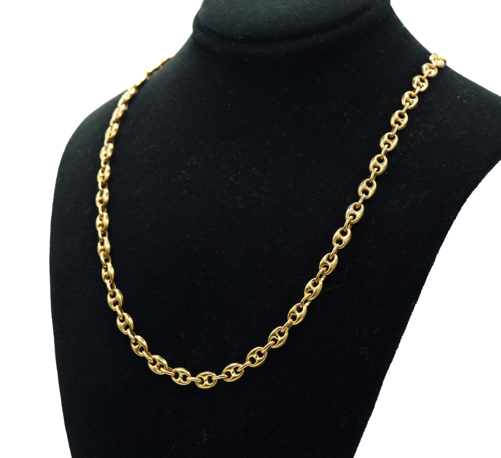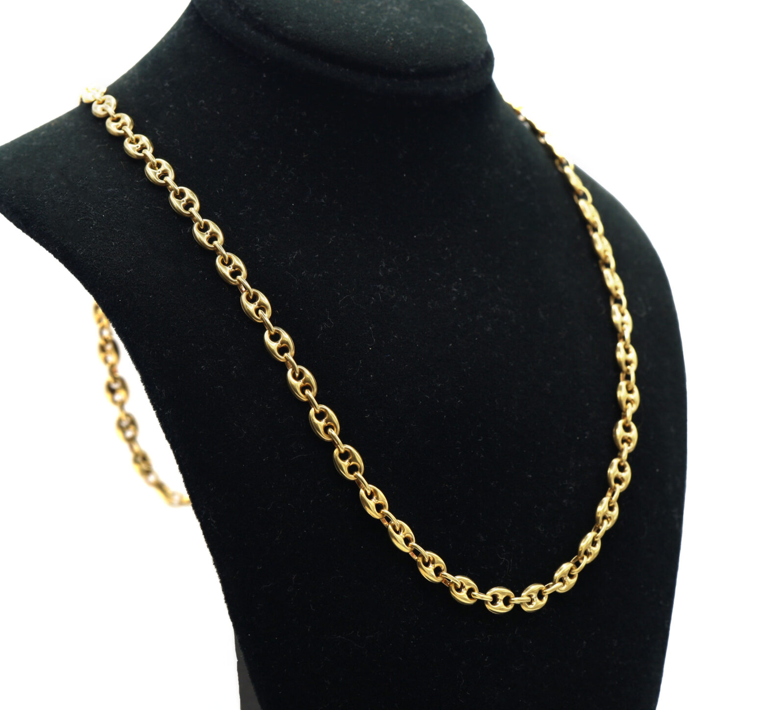 Material: 18k Yellow Gold Type: Mariner Anchor Puffed Link Length: 20 Inches Width: 4.75mm Weight: 14.8 Grams
