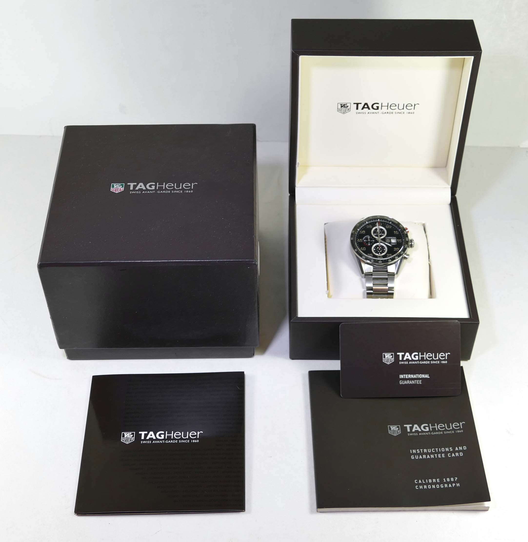 Tag Heuer Carrera 1887 CAR2A10 43mm Steel Automatic Black Dial Box Papers