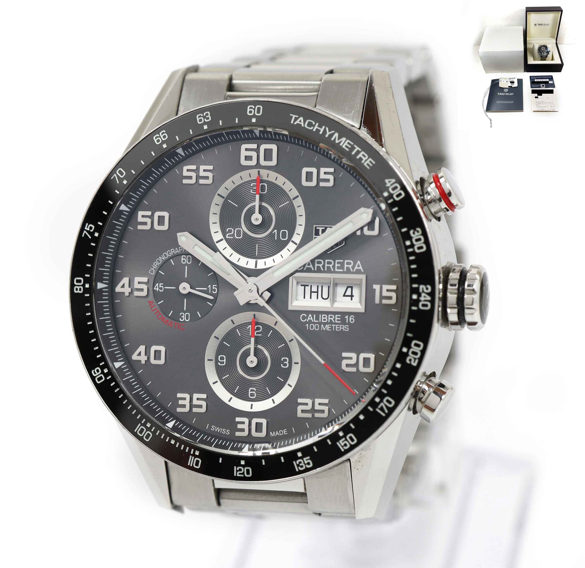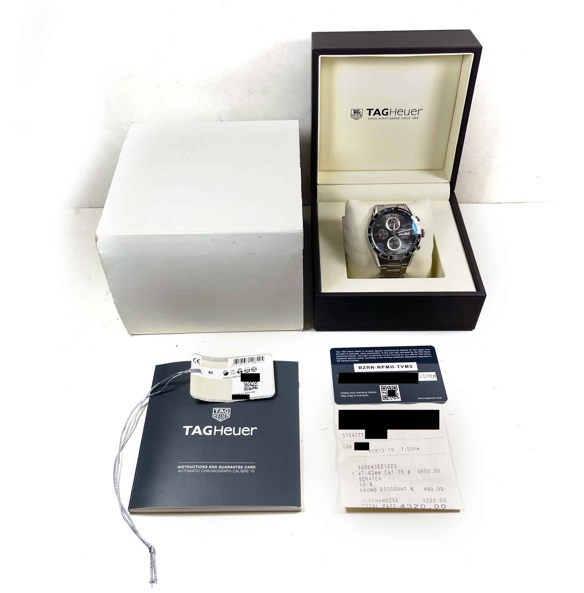 THIS TAG HEUER WATCH IS IN GOOD OVERALL CONDITION SHOWING SOME SIGNS OF WEAR ON THE CASE AND BRACELET CONSISTENT WITH PREOWNED WATCHES. THIS COMES WITH ITS BOX, ORIGINAL RECEIPT, AND WARRANTY CARD DATED FEBRUARY 14TH, 2019 AS SHOWN IN THE PICTURES ATTACHED...