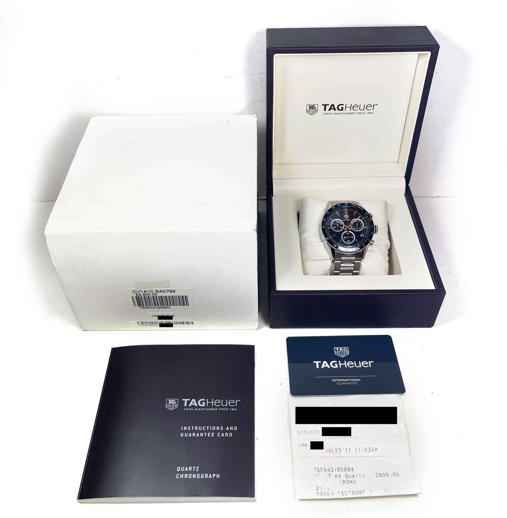 THIS TAG HEUER WATCH IS IN GOOD OVERALL CONDITION SHOWING SIGNS OF WEAR ON THE CASE AND BRACELET CONSISTENT WITH PREOWNED WATCHES. THIS COMES WITH ITS BOX, WARRANTY CARD, AND ORIGINAL RECEIPT DATED 2017 AS SHOWN IN THE PICTURES ATTACHED. THIS WATCH DOES COM...