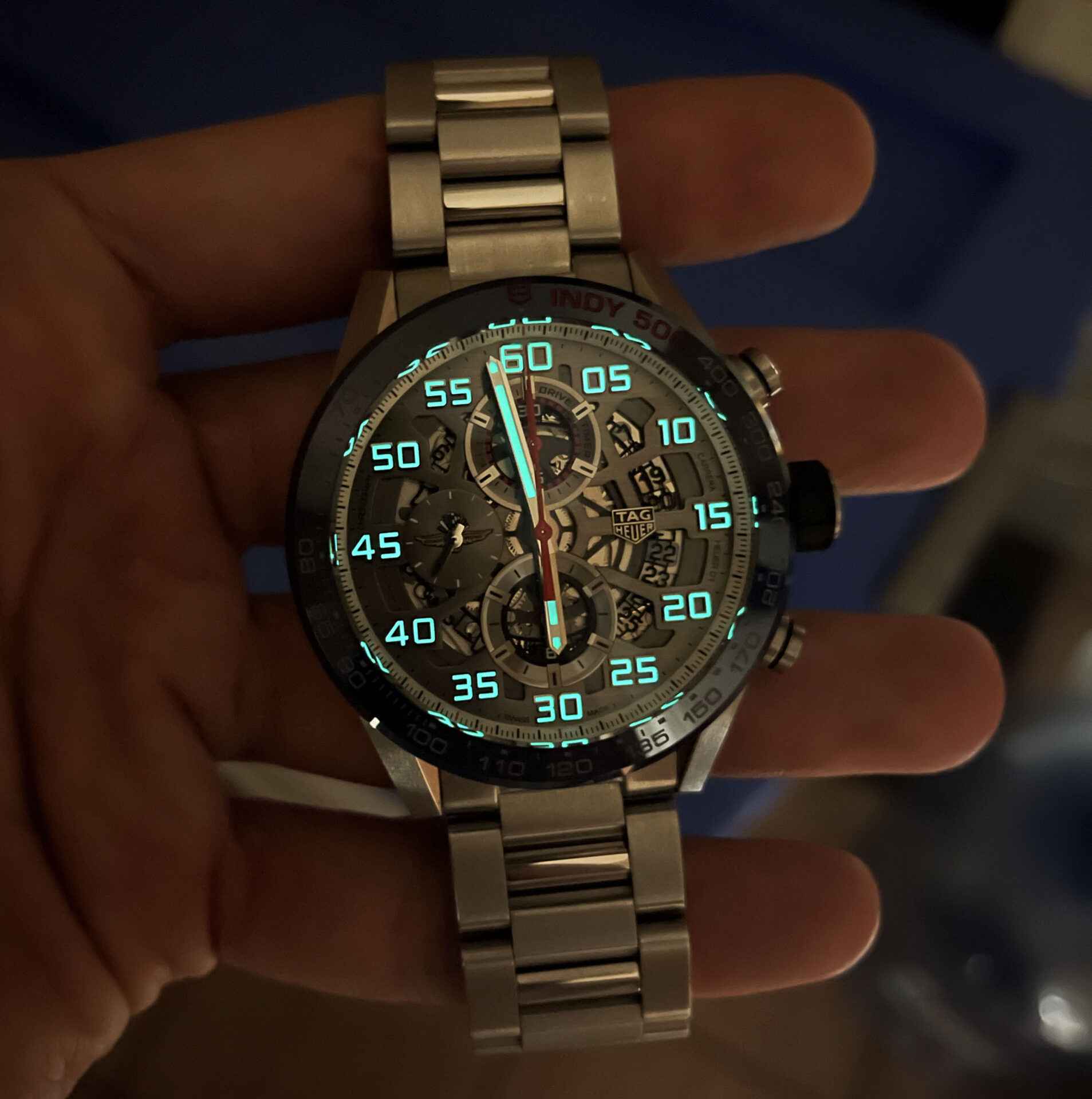 This watch is in excellent condition and comes with all of its original box, papers, and links. This is a super limited edition model, only 102 were produced!