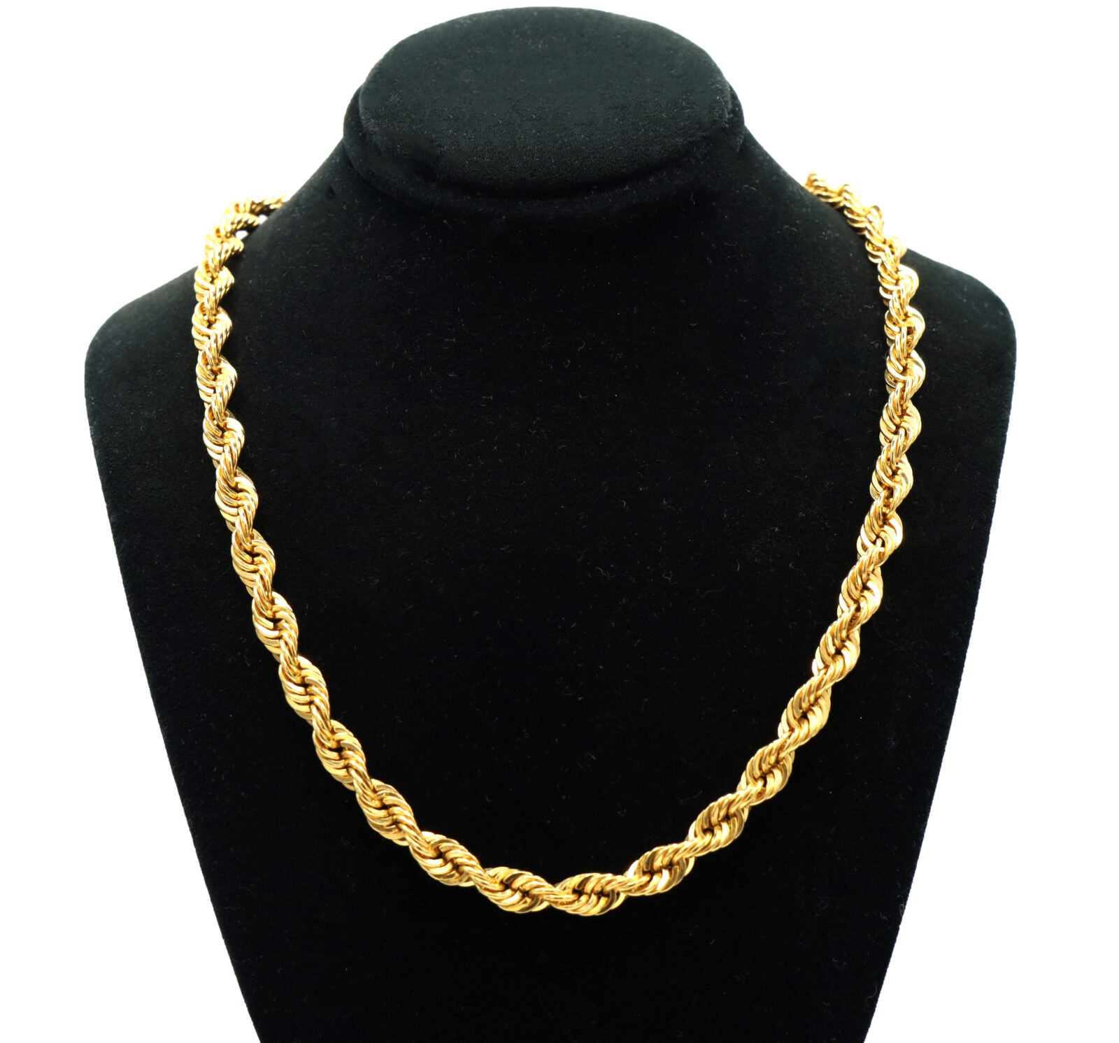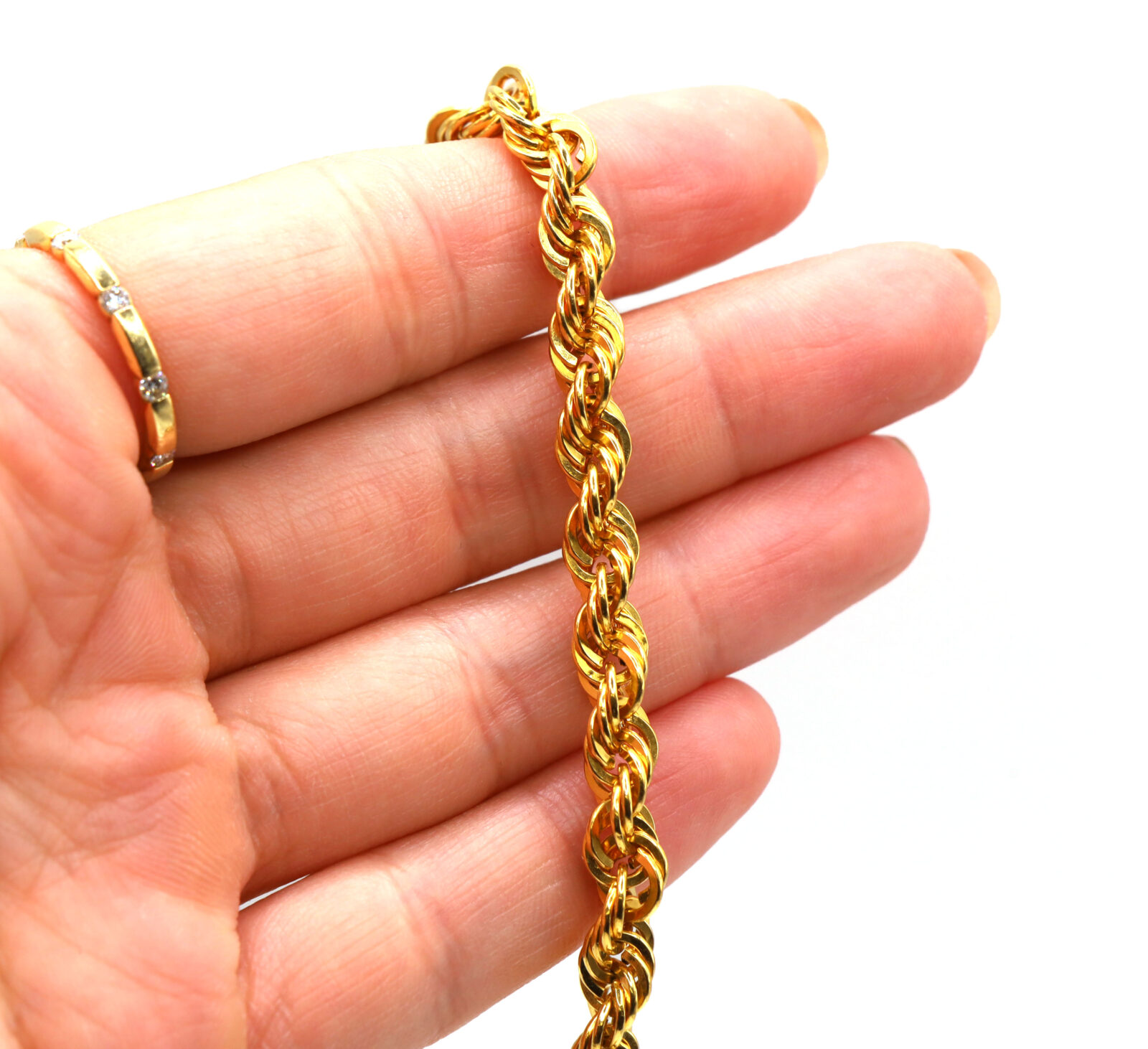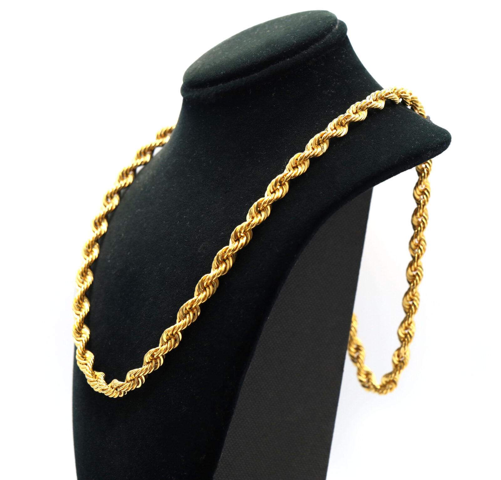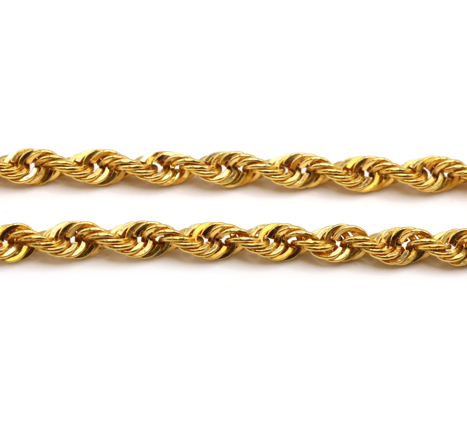 Metal: 22k Yellow Gold Type: Rope Link Weight: 21.4 Grams Length: 21.5 Inches Width: 6mm Clasp Type: Lobster