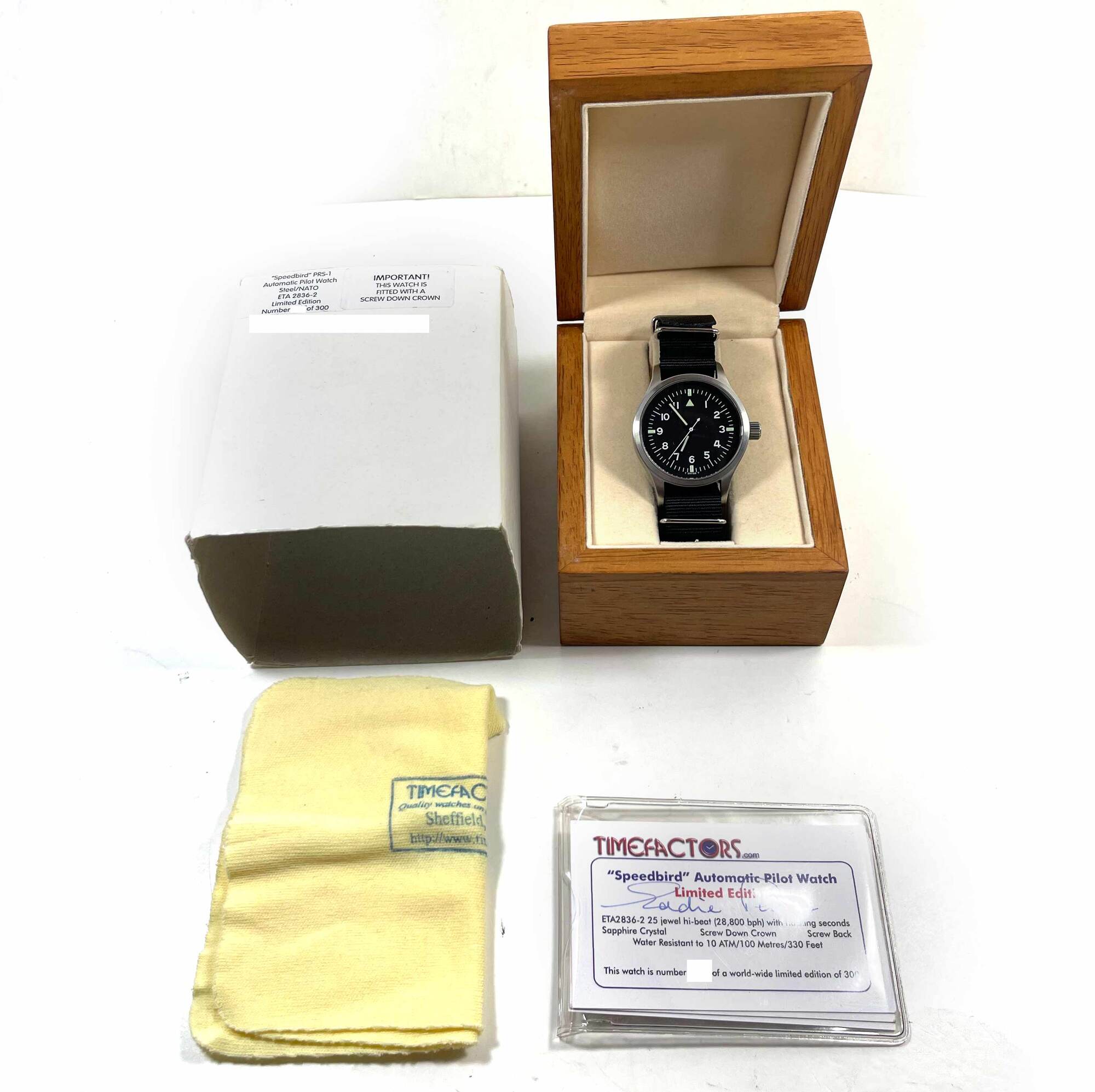 Timefactors Speedbird Pilot Prs-1 37.5MM Black Dial Stainless Steel Box Papers