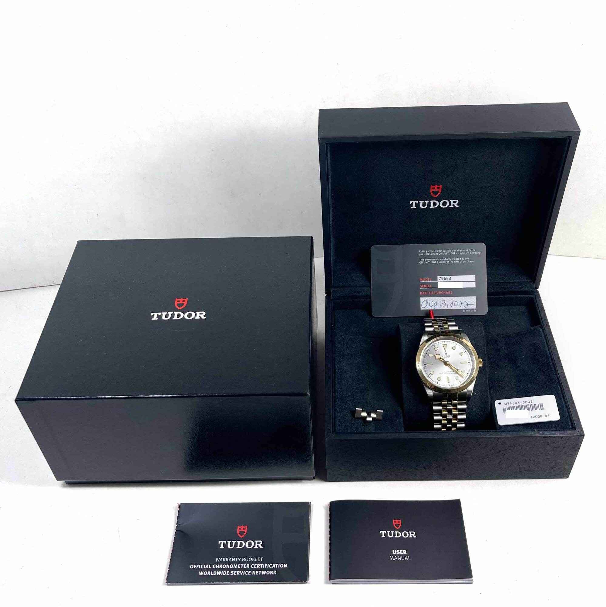 THIS TUDOR IS IN EXCELLENT CONDITION SHOWING SOME MINOR SIGNS OF SURFACE WEAR ON THE CASE, BEZEL, AND CLASP CONSISTENT WITH PREOWNED WATCHES. THIS COMES WITH ITS BOX, BOOKLETS, SPARE LINK, HANG TAG, AND WARRANTY CARD DATED AUGUST 13TH, 2022. THIS WATCH IS I...