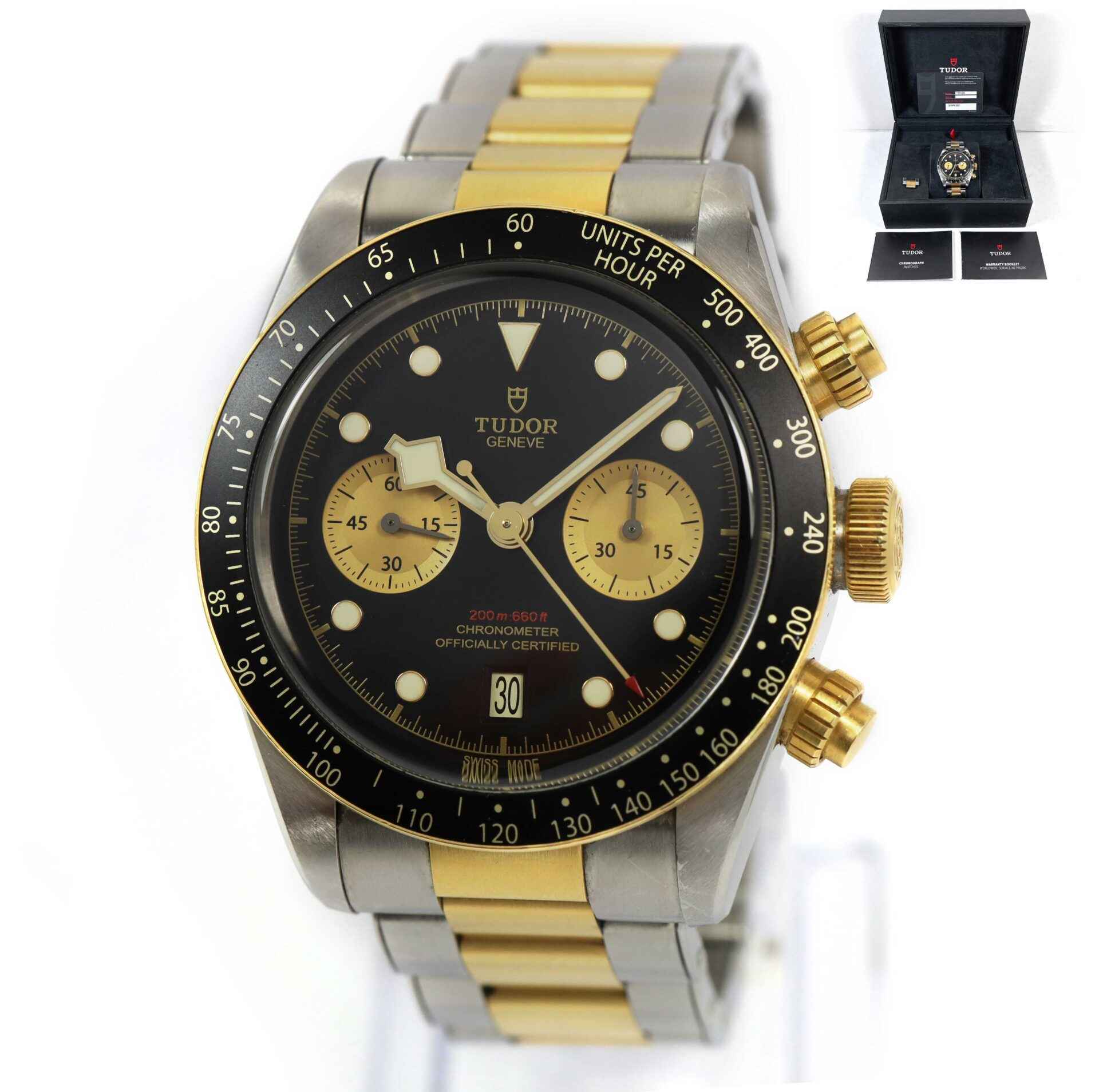Read Morethis tudor watch is in excellent condition and comes with its inner box, booklets, and warranty card dated april 30th, 2021. This watch features a yellow gold & steel case/bracelet surrounding a black dial with a fixed yellow gold bezel with a matte black disc. This watch is in stock and available to ship immediately!