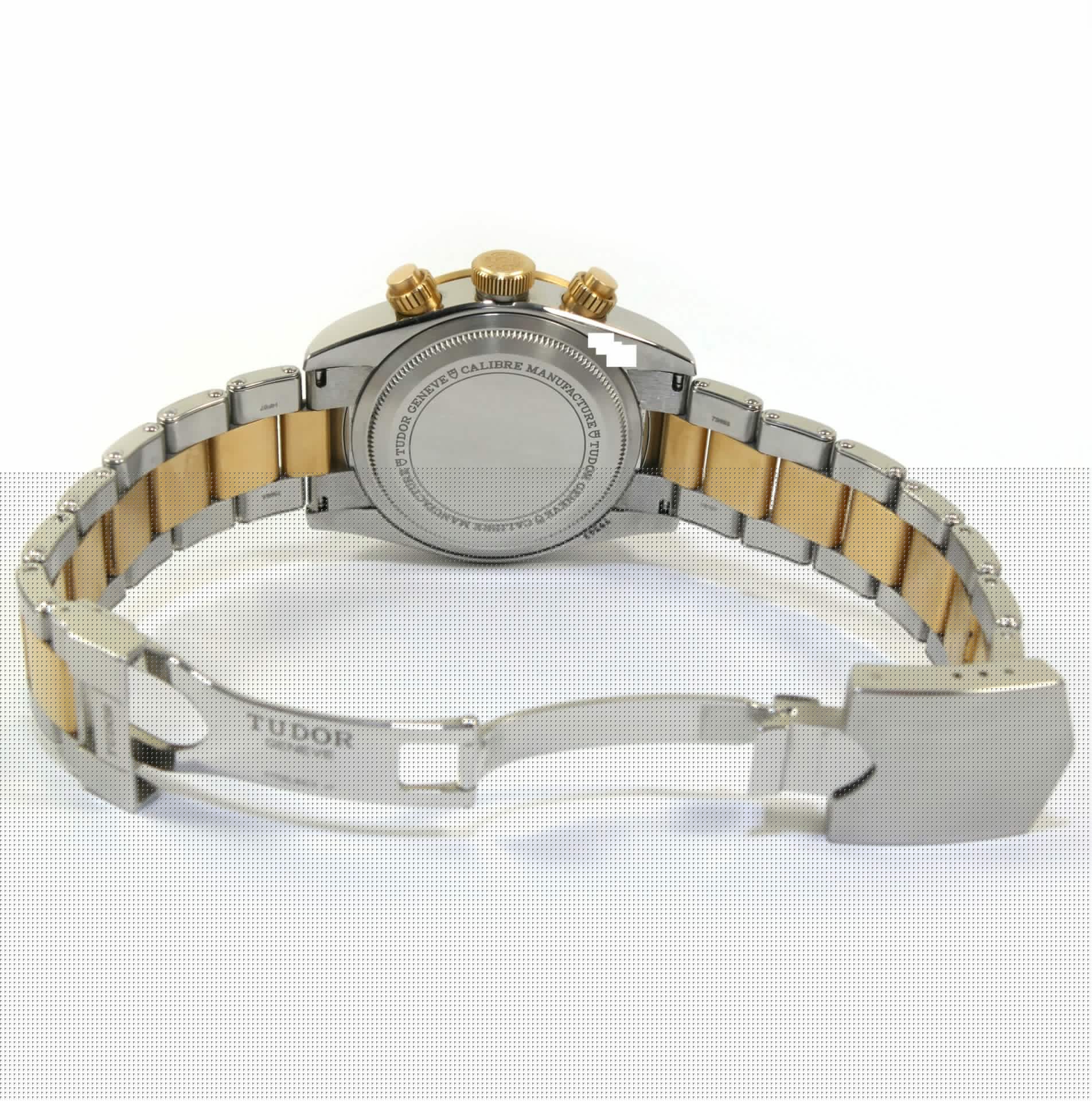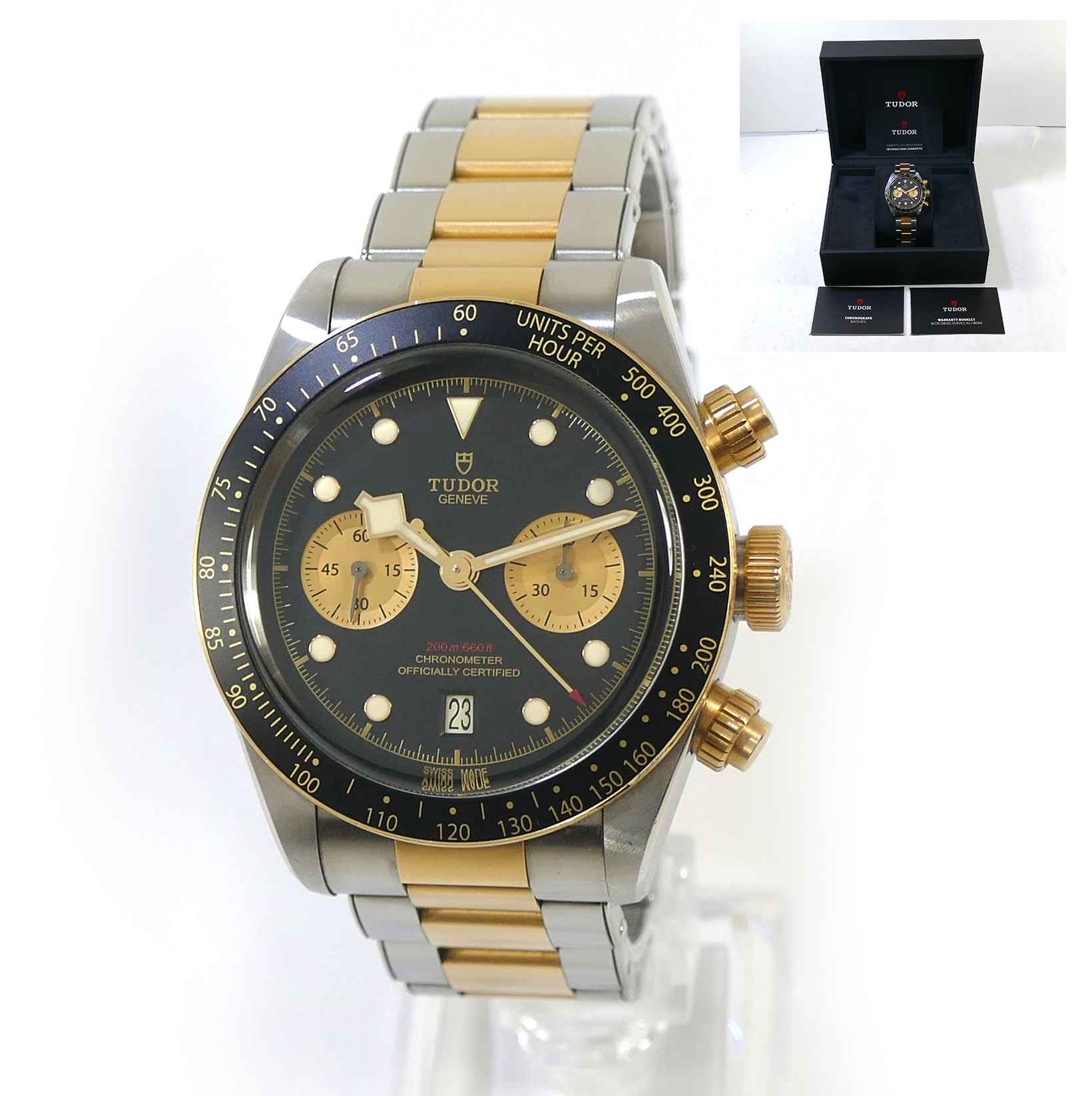 this tudor watch is in excellent condition and comes with its complete set of box, papers, and warranty card dated april 30th, 2021. This watch features a yellow gold & steel case/bracelet, a black dial with a fixed yellow gold bezel with matt black disc, and approximately a 70 hour power reserve. This watch is in stock and ready to ship immediately!