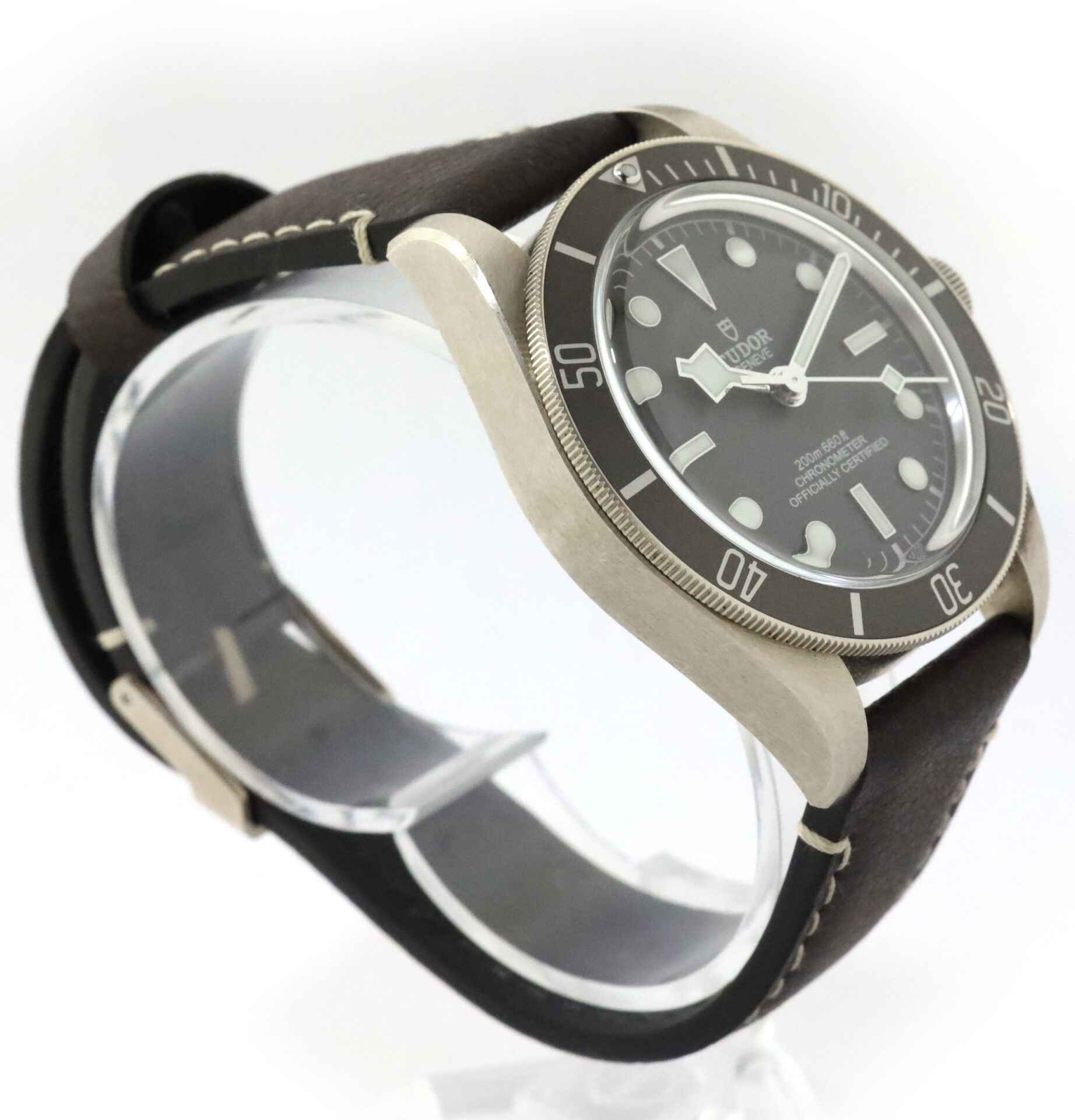 this tudor is in excellent condition showing some signs of wear from regular use. This watch comes with box, papers, hang tag, and warranty card dated october 7th, 2021 as shown in the photos attached. This watch features a 925 silver case with an open caseback, a grey dial, and a brown leather strap. This tudor is in stock and available to ship immediately!