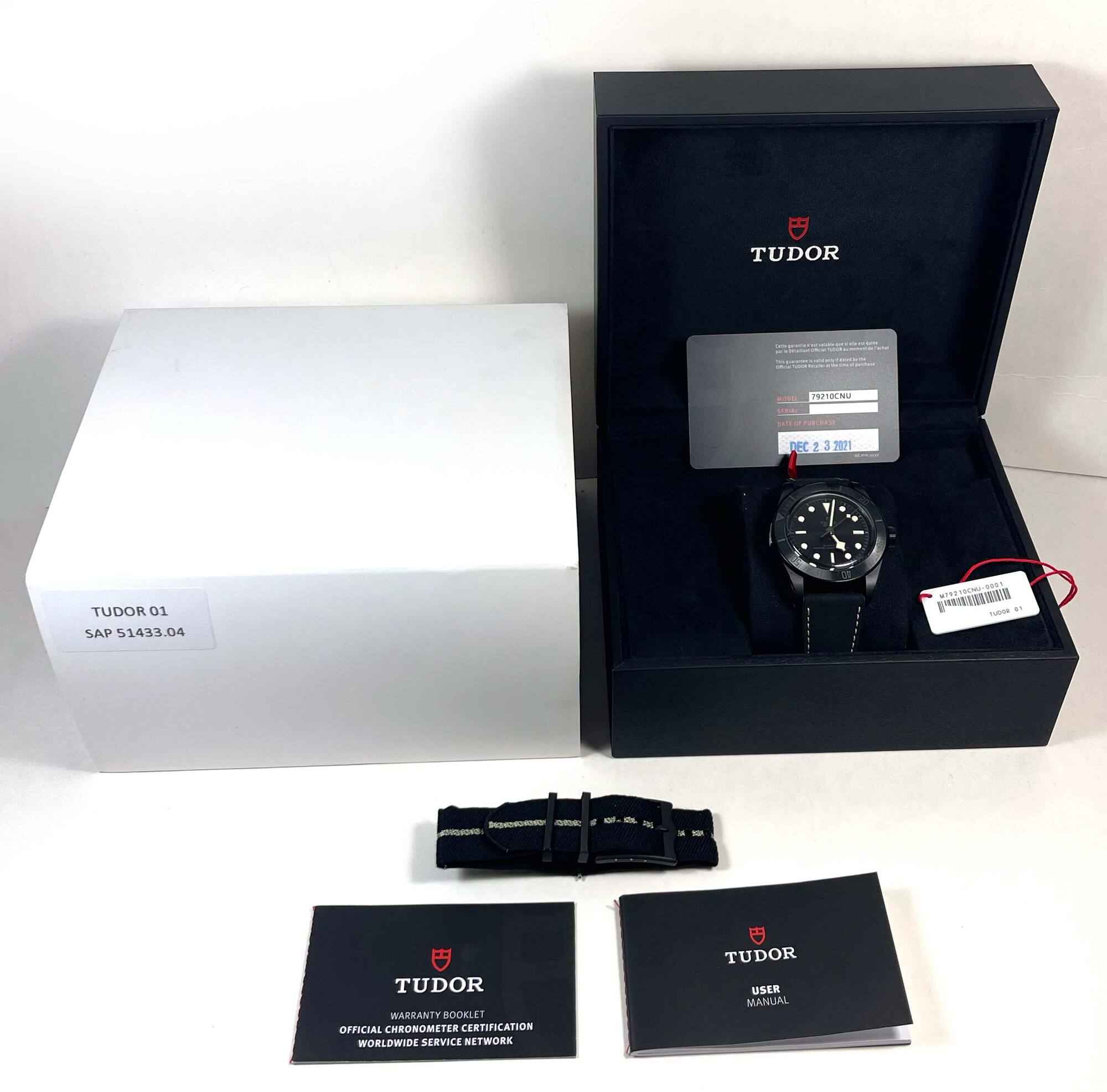 THIS TUDOR IS IN EXCELLENT CONDITION AND COMES WITH ITS BOX, BOOKLETS, HANG TAG, AND WARRANTY CARD DATED DECEMBER 23RD, 2021 AS SHOWN IN THE PICTURES ATTACHED. THIS WATCH FEATURES A 41MM BLACK CERAMIC CASE WITH A PVD STEEL AND BLACK CERAMIC BEZEL SURROUNDIN...