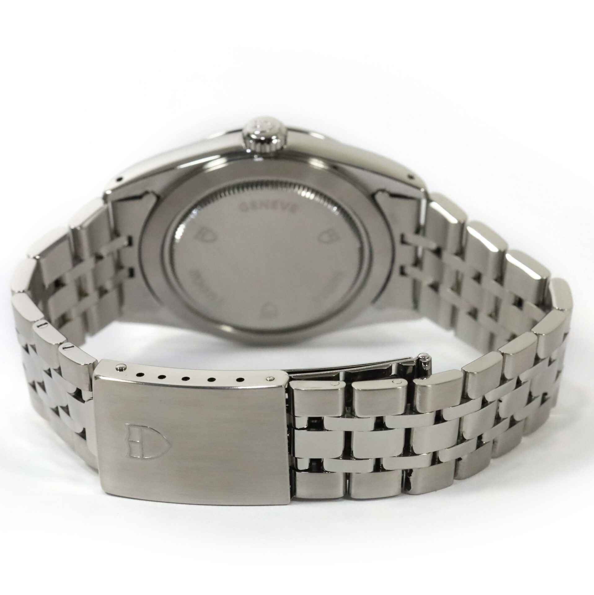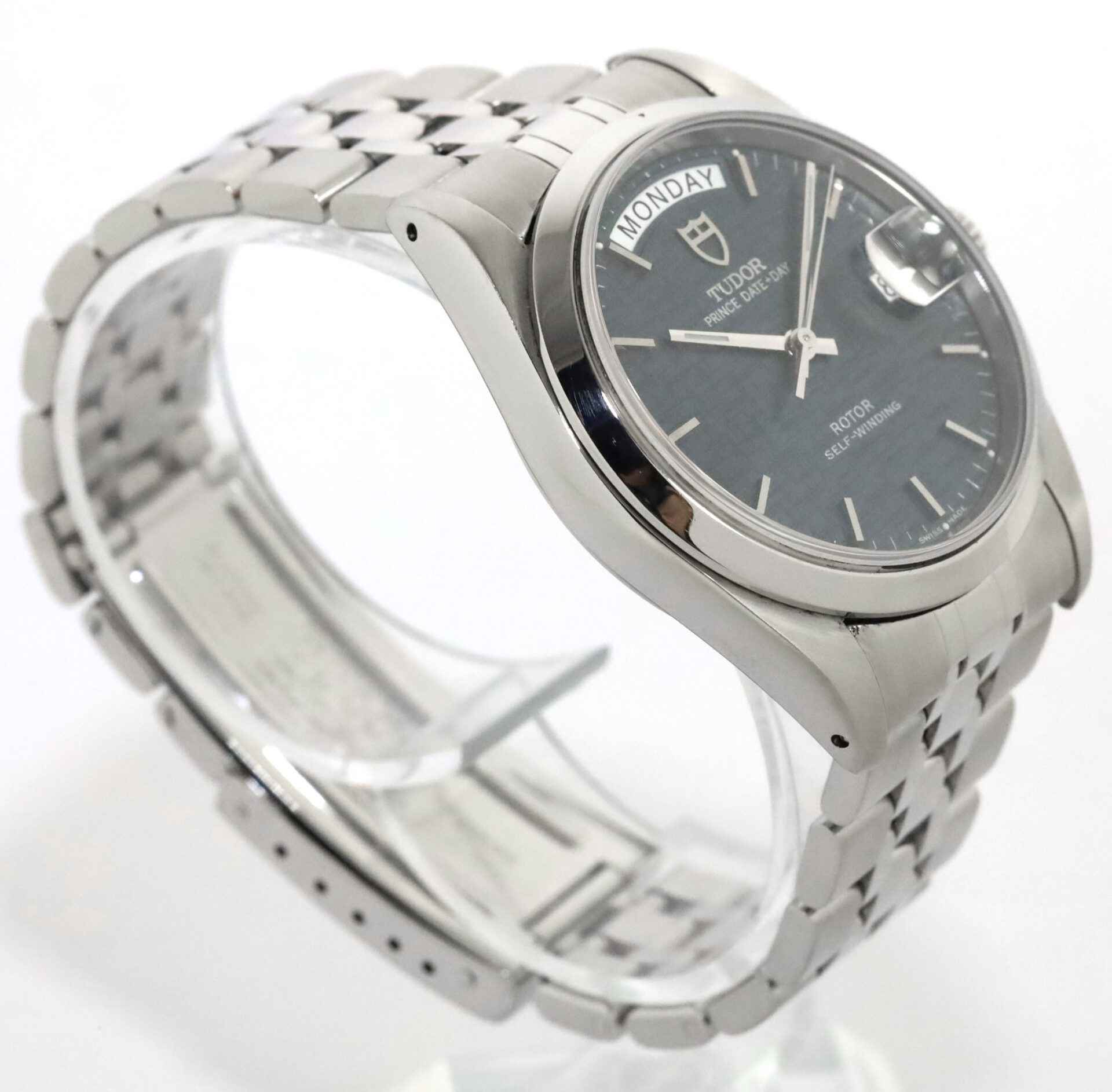 This Tudor is in excellent condition and comes as watch only. This watch features a stainless steel case surrounding a blue mosaic linen textured dial with a day-date function on a steel bracelet. This Tudor day-date is ...