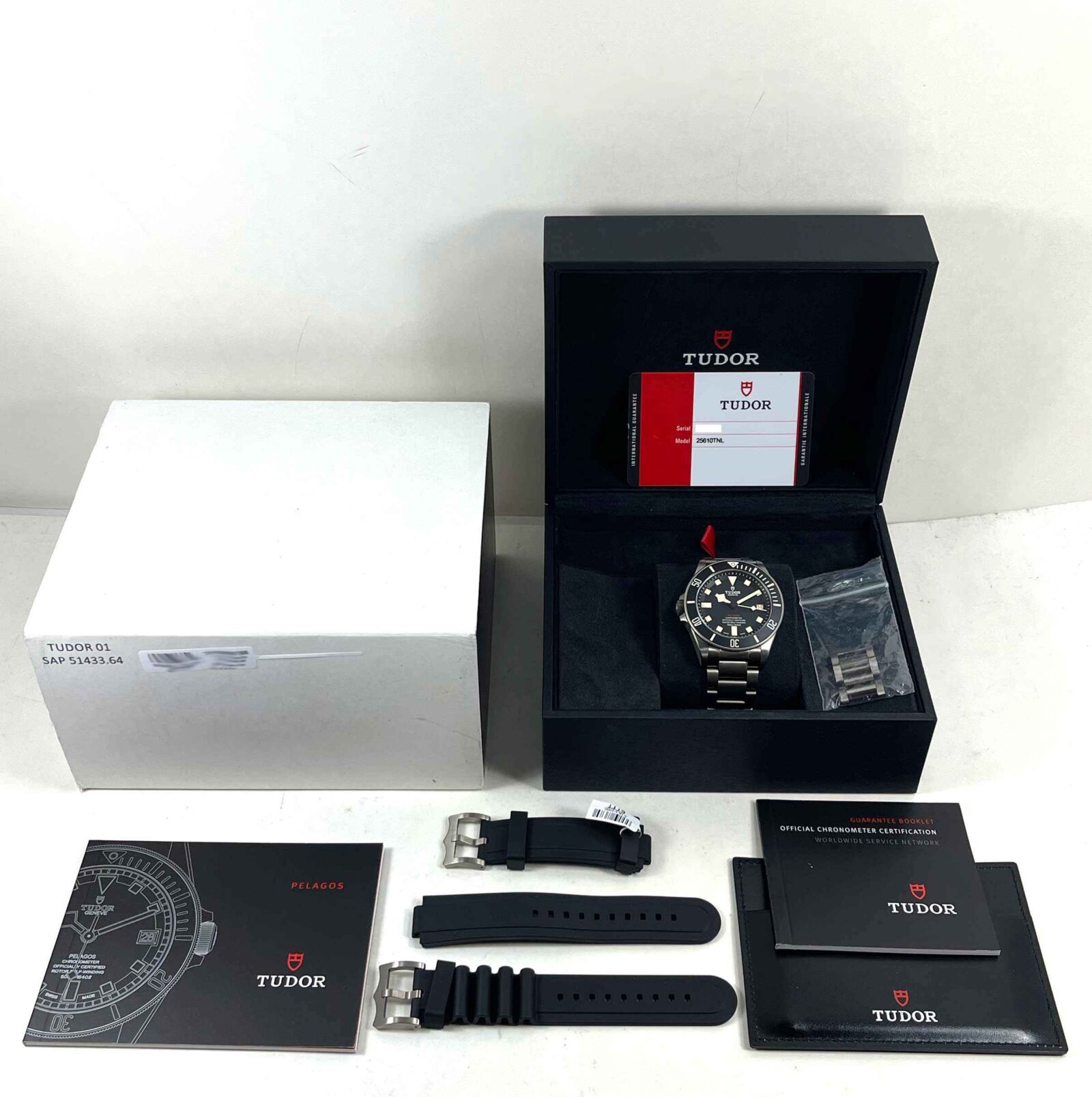 Read Morethis tudor is in excellent condition and comes with its box, papers, spare links, two additional black rubber straps, and warranty card dated march, 31st, 2018. This left handed tudor features a titanium case that surrounds a black dial displaying the date and comes on a titanium bracelet. This watch is in stock and available to ship immediately!