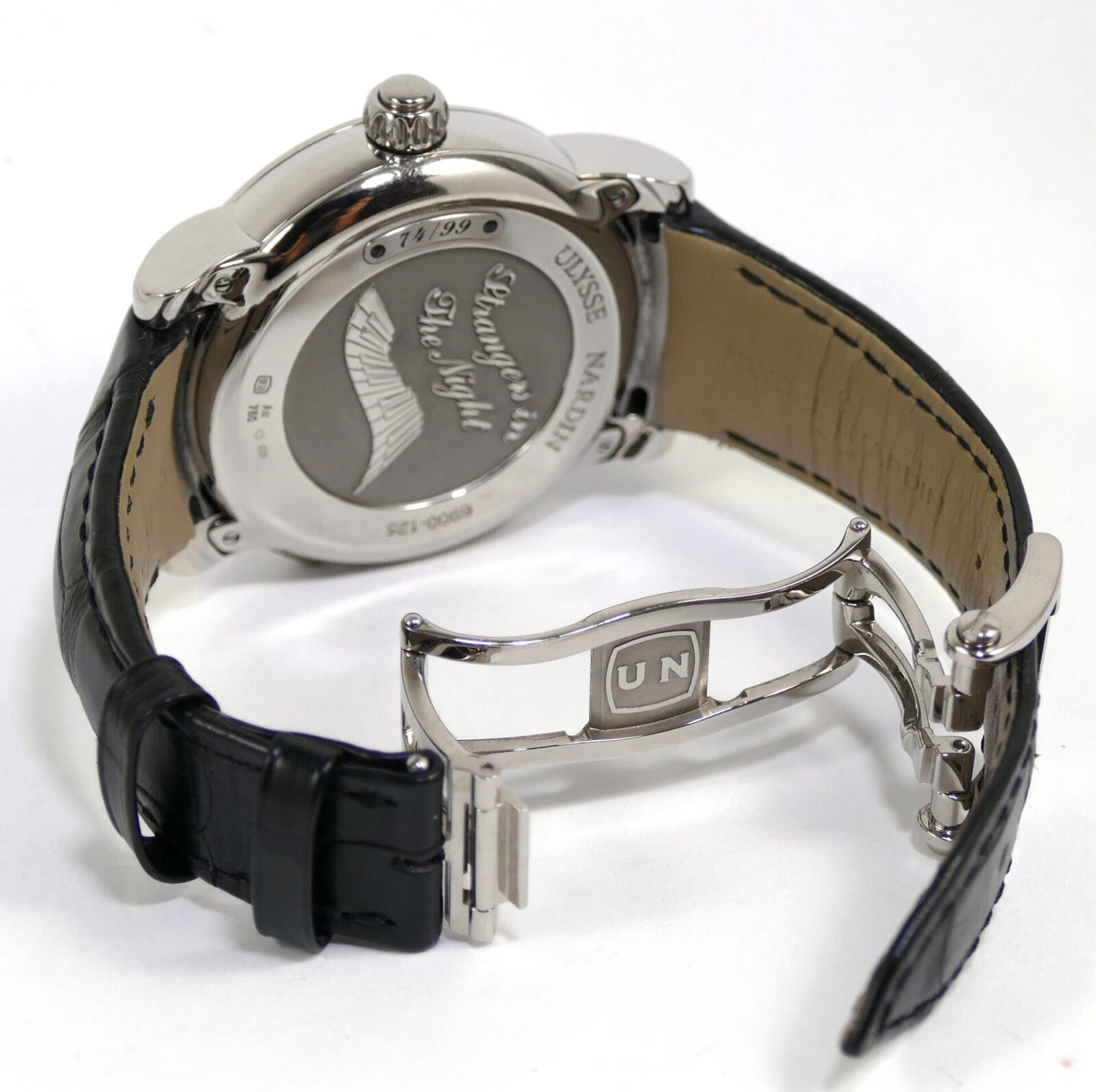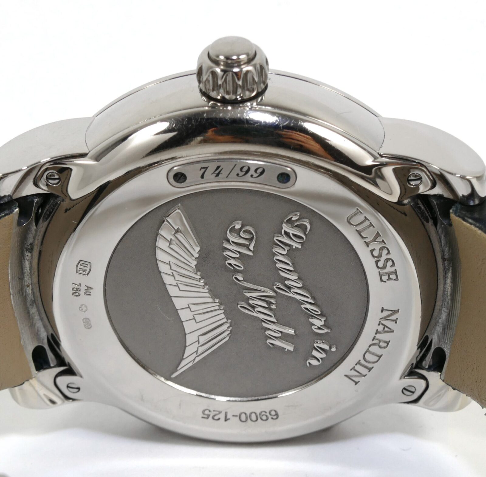 Read Morethis ulysse nardin watch is in excellent condition and comes with its complete set of box and papers. This unique timepiece is part of a limited collection of 99 pieces. This watch features one of the coolest complications we have ever seen; a music box which plays a clip from “strangers in the night”, by frank sinatra. Watch the video we have included and turn up your volume!