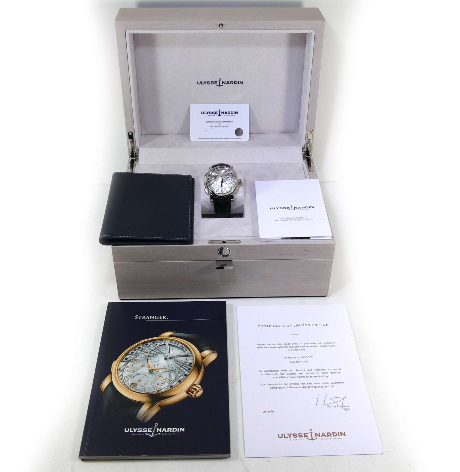 This Ulysse Nardin watch is in excellent condition and comes with its complete set of box and papers. This unique timepiece is part of a limited collection of 99 pieces. This watch features one of the coolest complicatio...