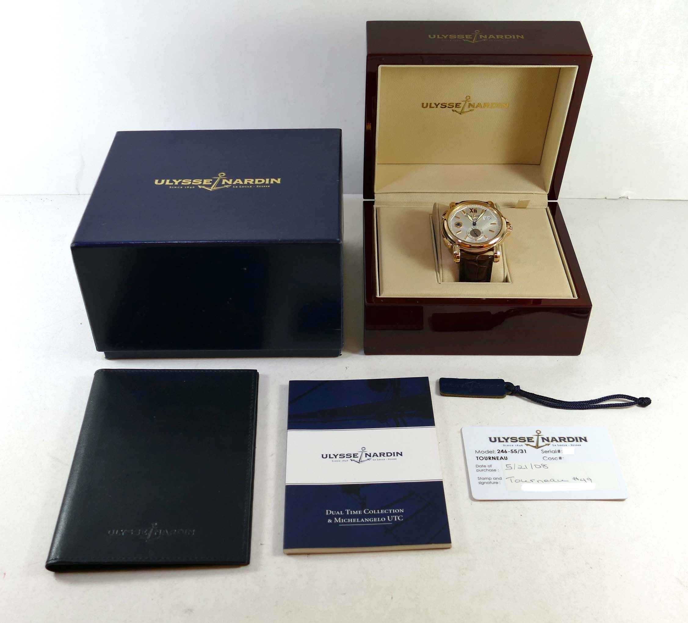 this watch is in great overall condition and comes with its original box and papers. The warranty card is dated may 21st, 2008. the strap is worn but still has life left in it.