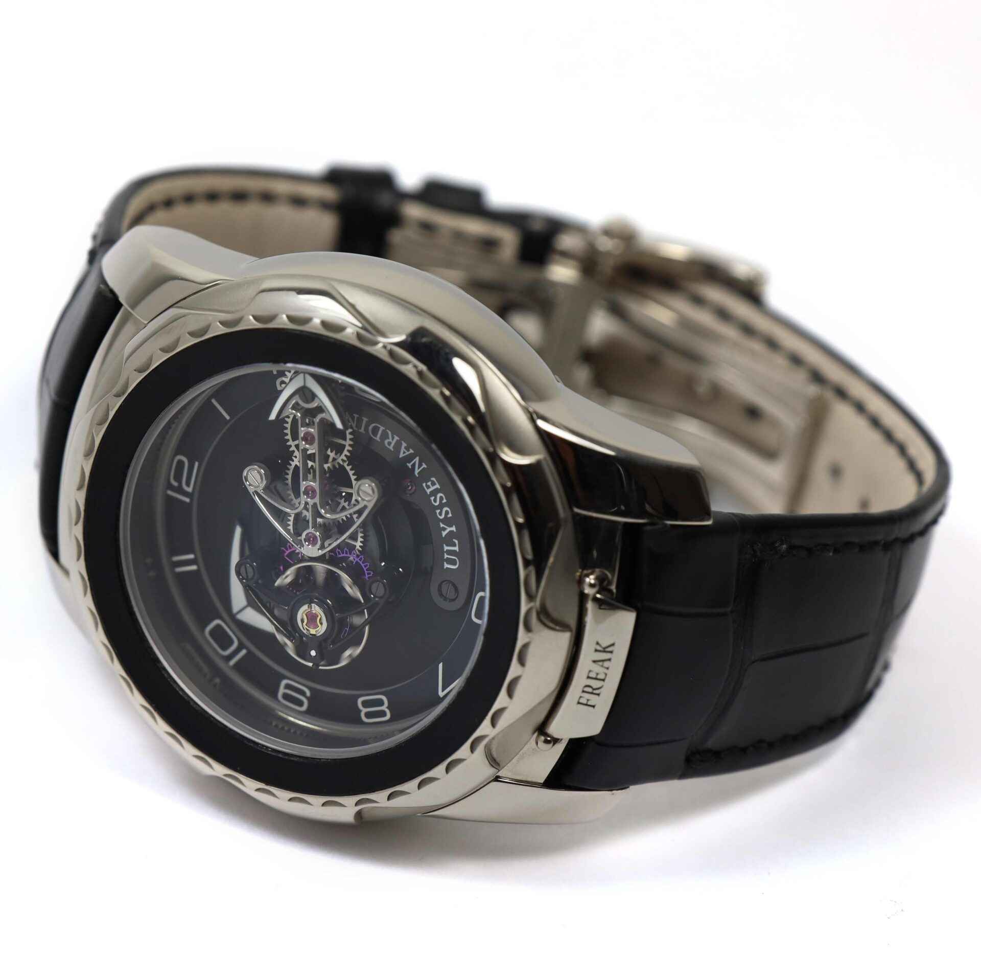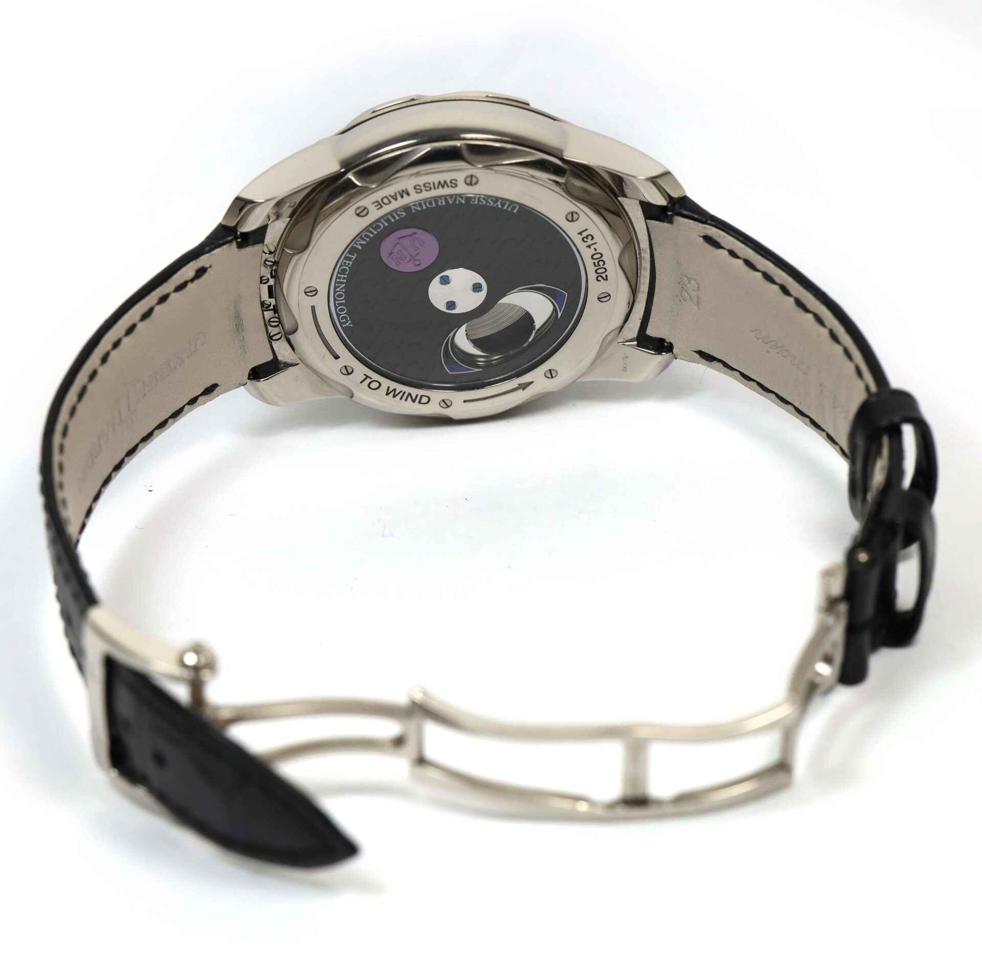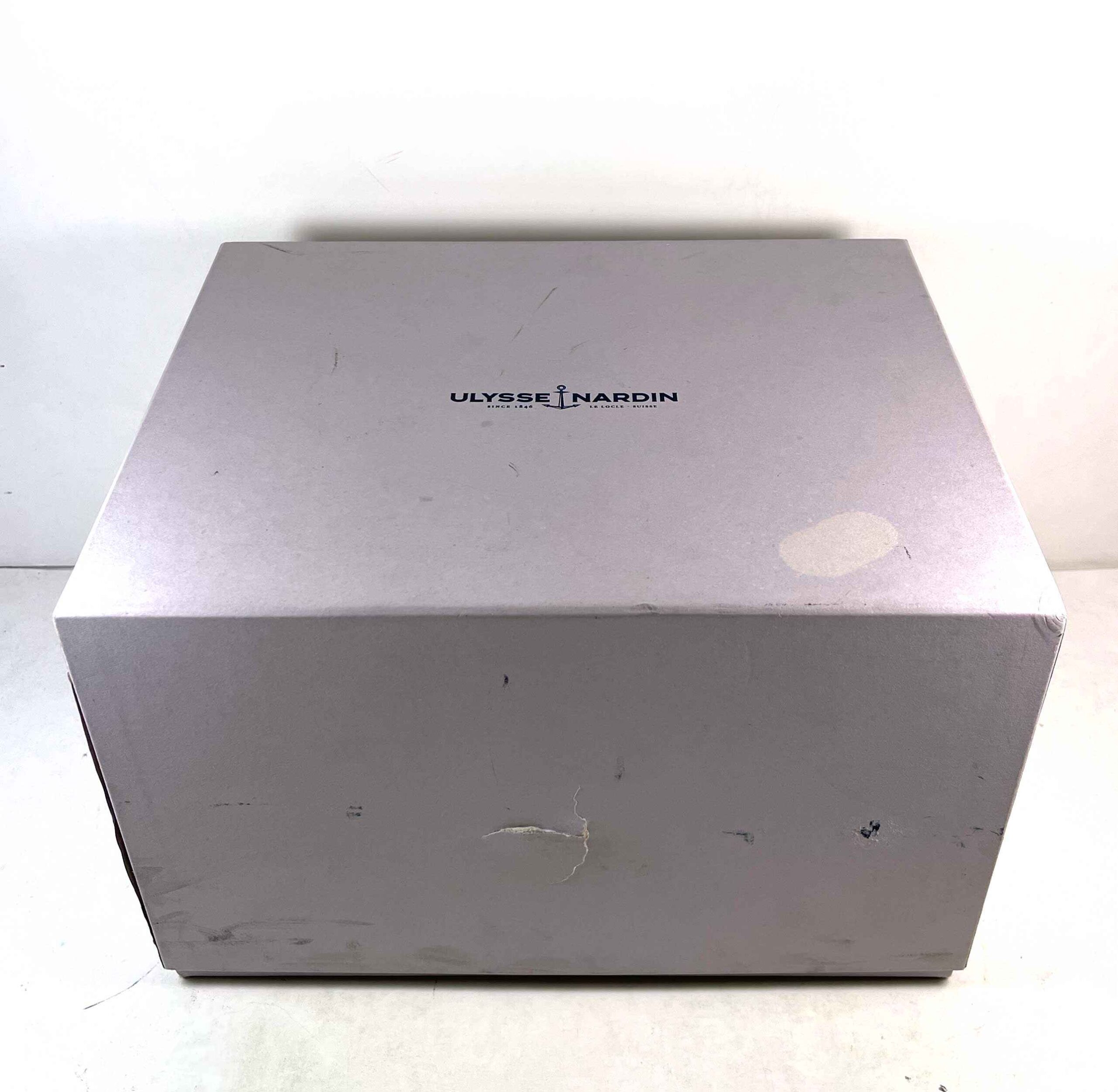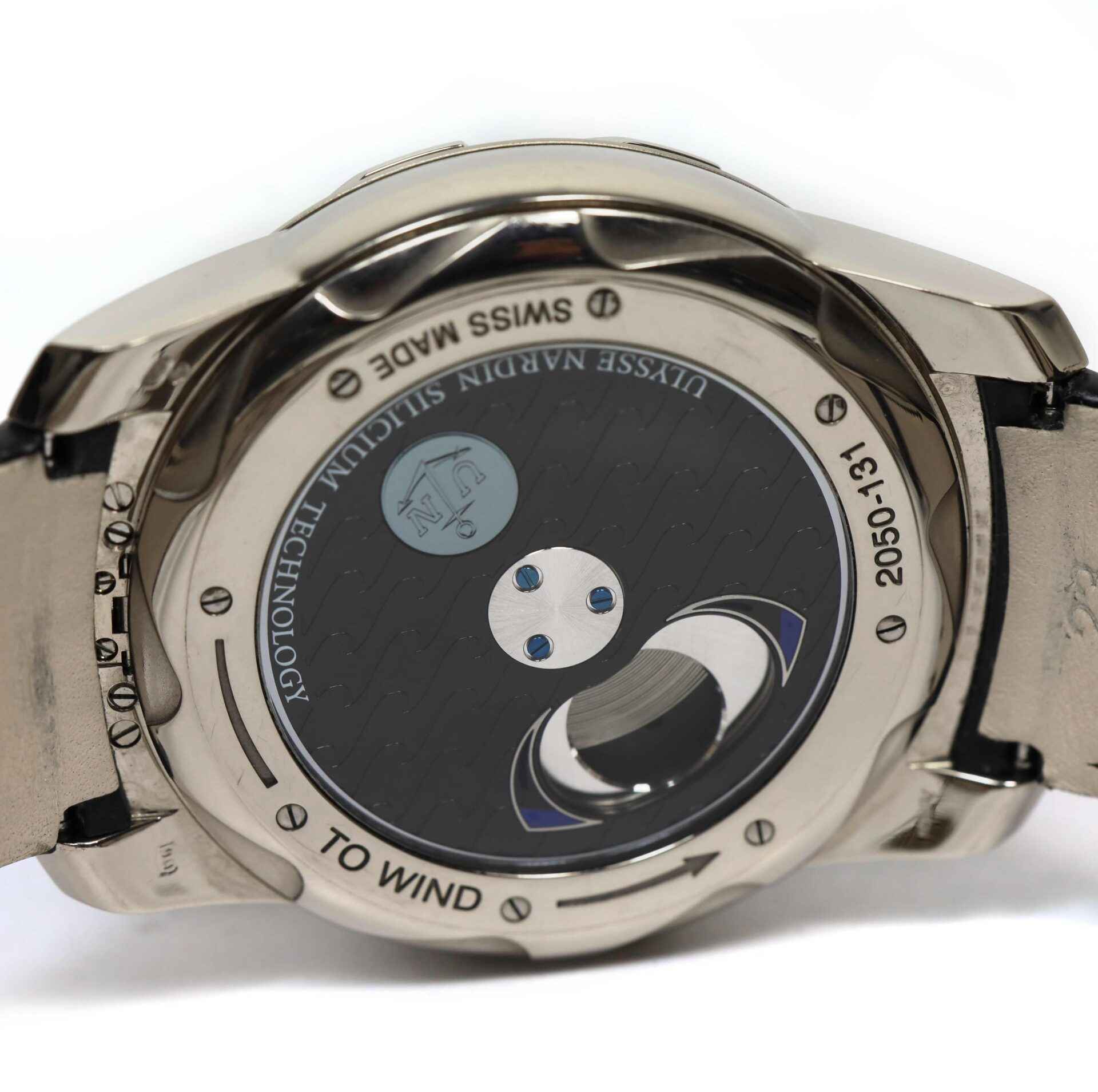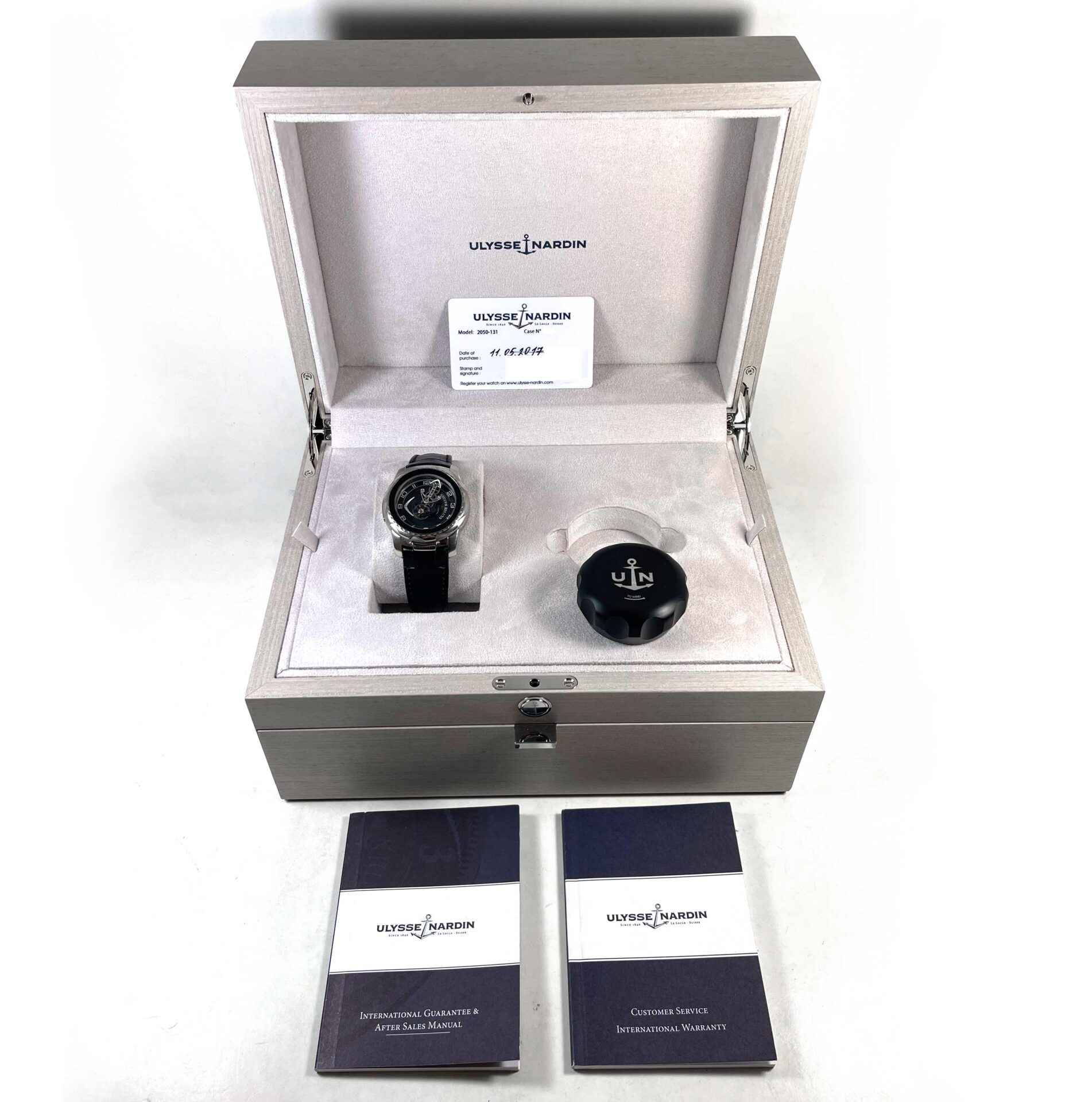 This Ulysse Nardin watch is in excellent condition and comes with its box, booklets, and warranty card dated November 5th, 2017 as shown in the pictures attached. This watch features a 45mm 18k white gold case that surro...