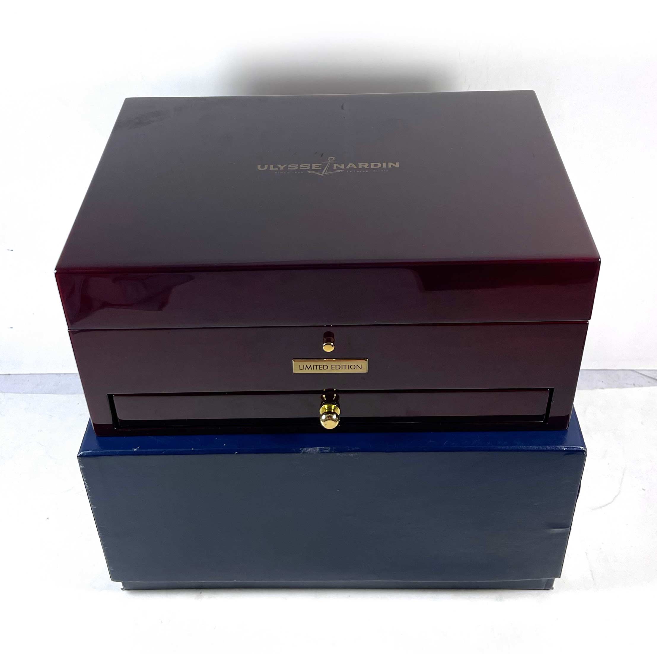 This Ulysse Nardin watch is in good overall condition showing signs of wear on the case and comes with its box, booklets, one additional blue leather strap, and warranty card as shown in the pictures attached. This watch...