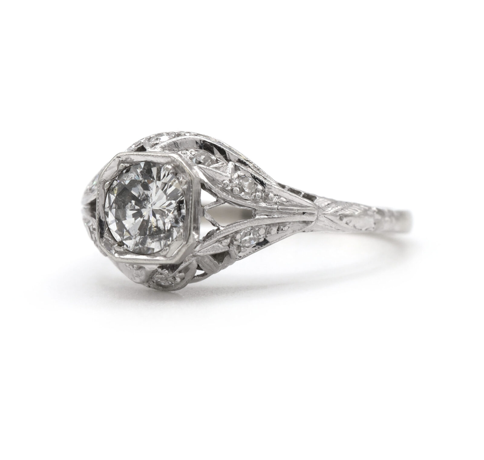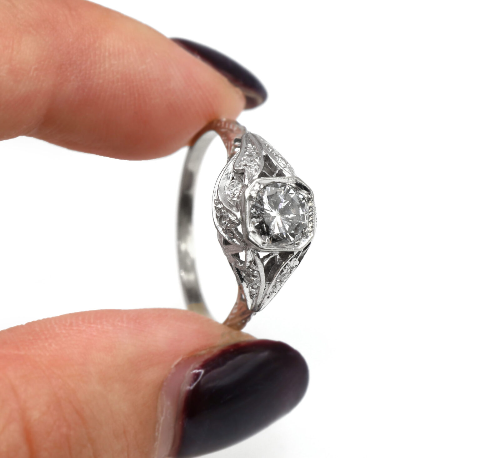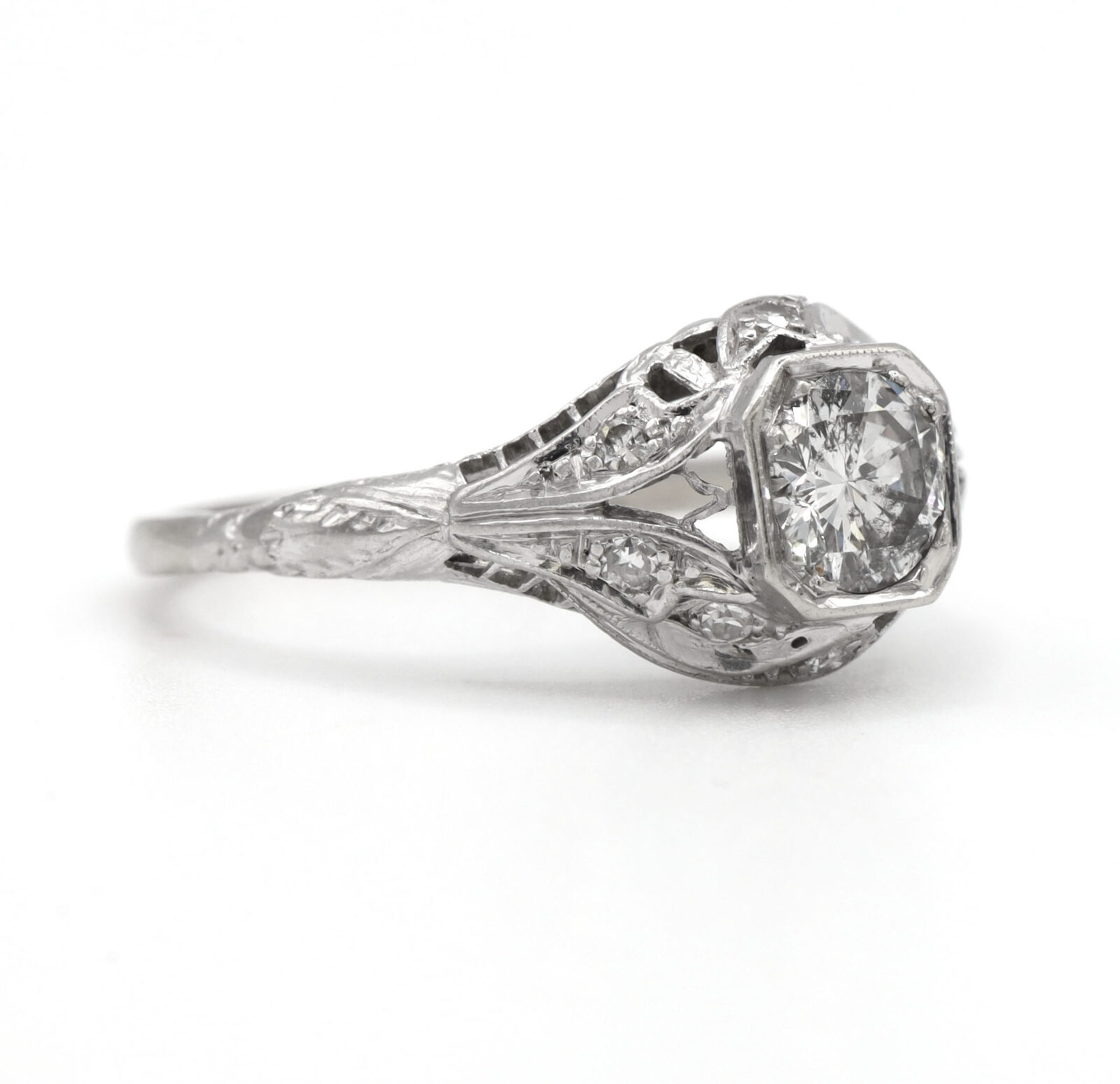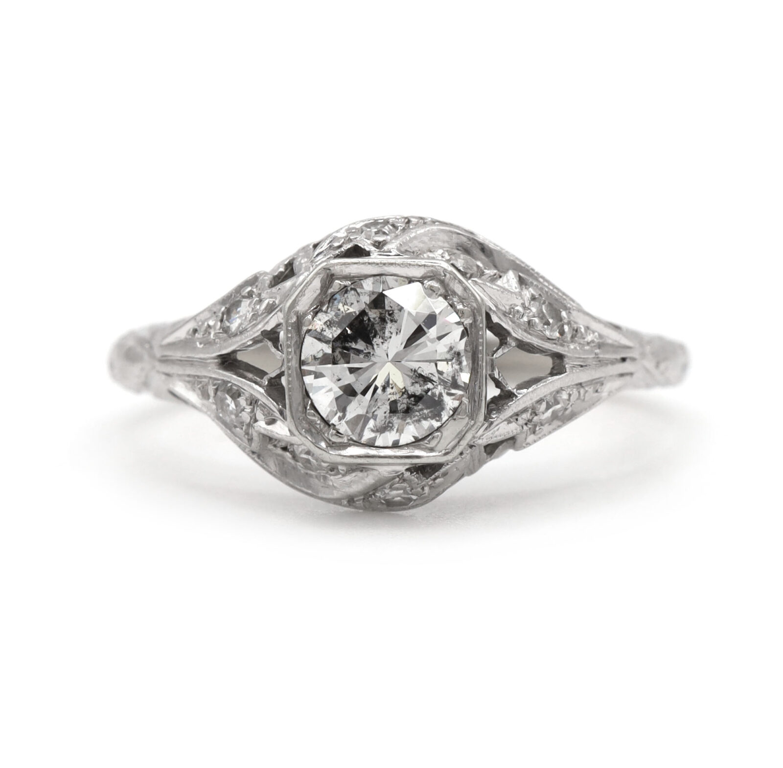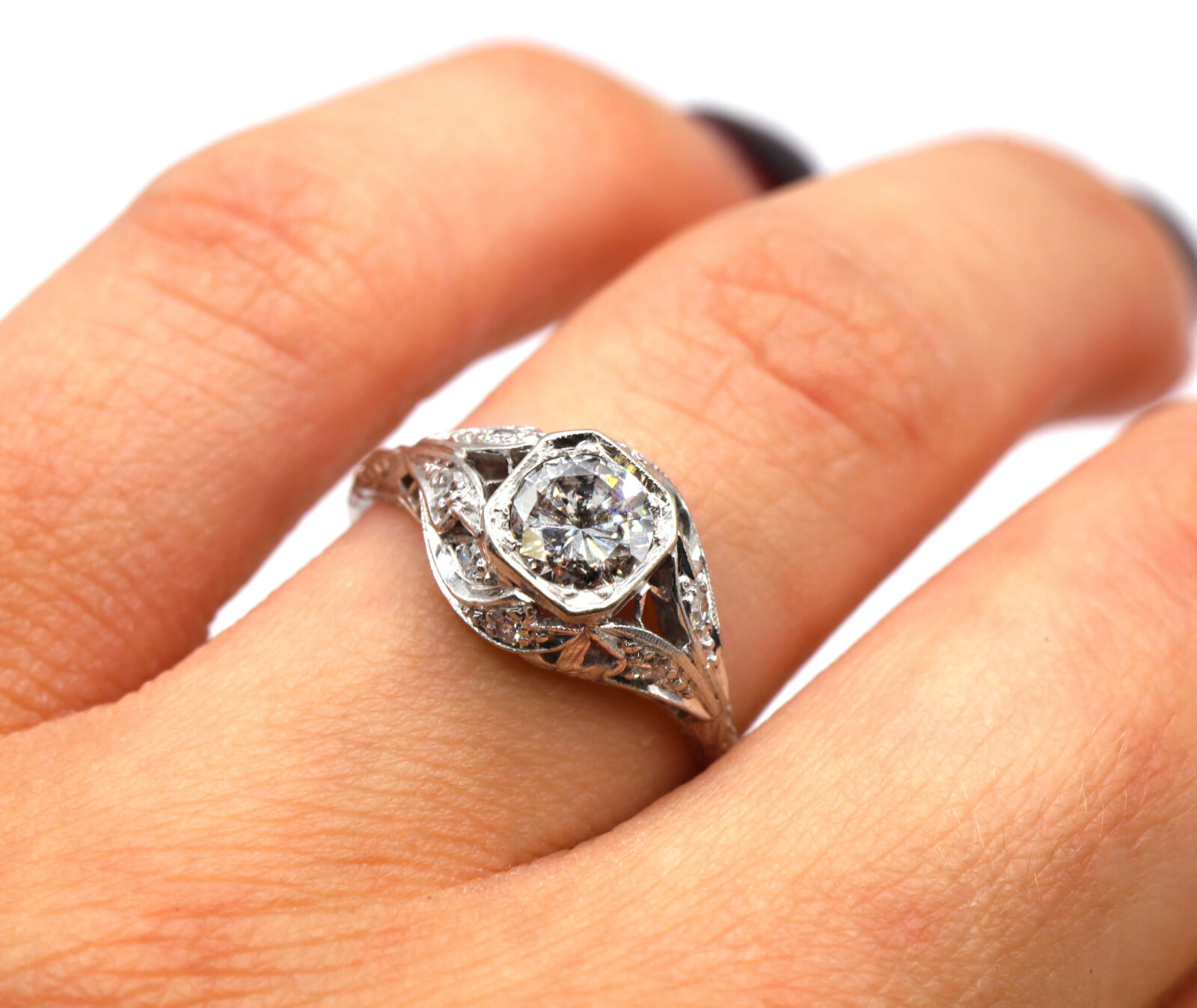 Natural Diamond .55CT Vintage Filigree 14K White Gold Women’s Ring