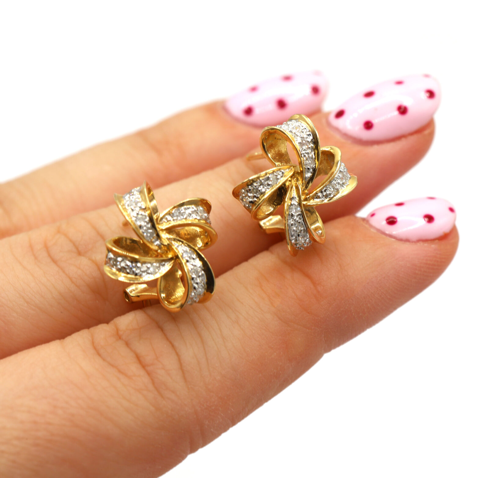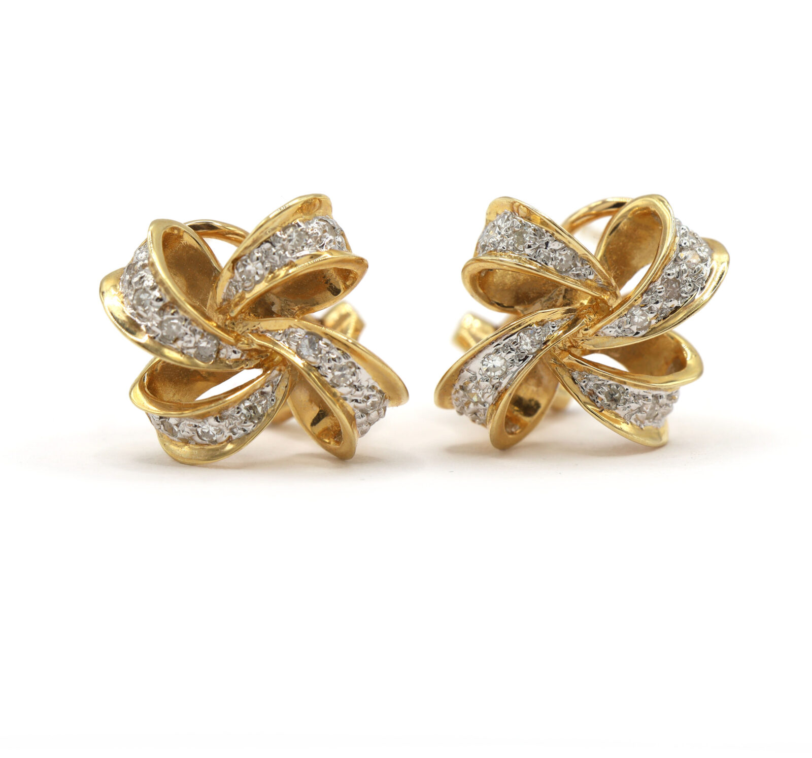 Natural Diamond Flower Swirl 14K Yellow Gold Women’s Stud Earrings