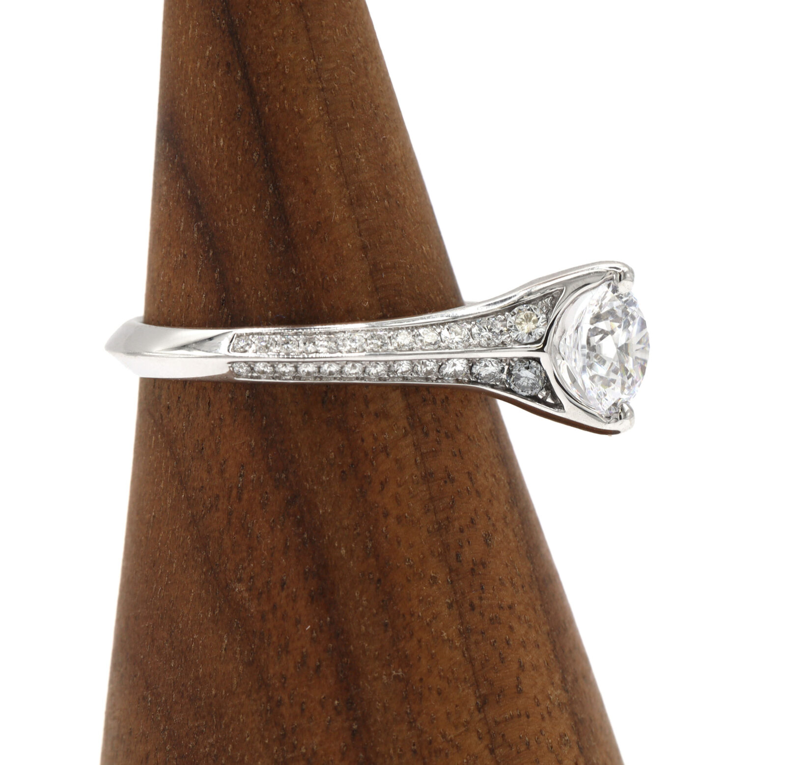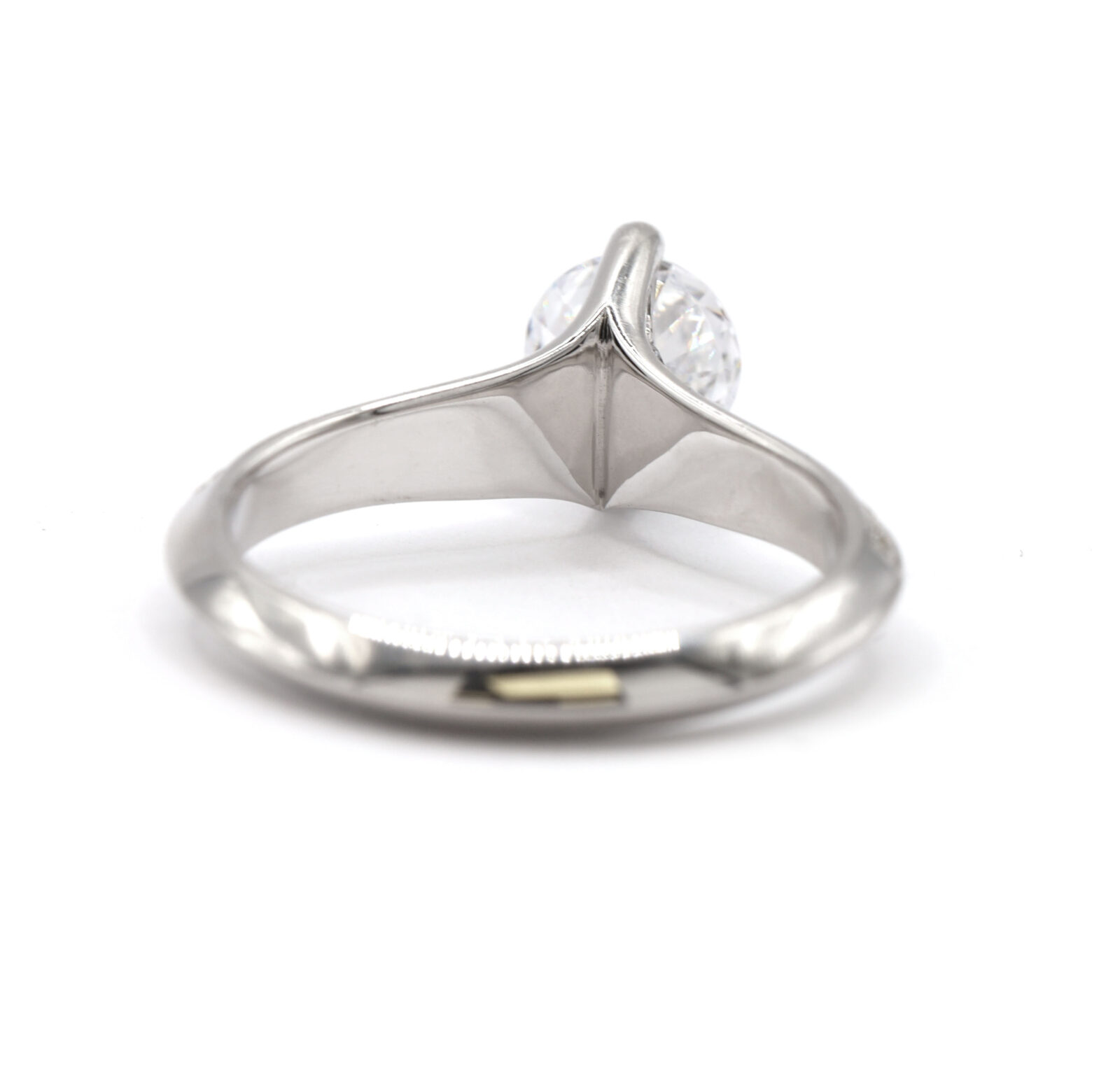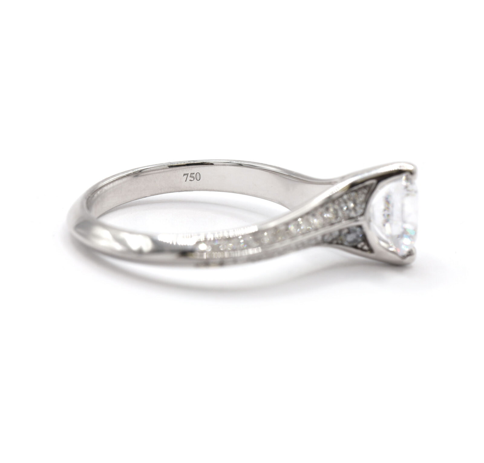 Material: 18k White Gold Ring Size: 6.25 Width: 2.5mm Weight: 4 Grams Gemstone: Natural Diamond Carat Weight: 0.34 Carat Clarity: VS2 Color: F Cut: Round Brilliant